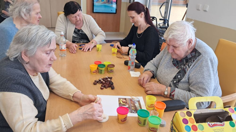 Prijímatelia sociálnych služieb si počas uplynulých dní naplno užili tvorivé jesenné aktivity. Vznikli nádherné obrázky stromov, ktoré sme vytvárali otláčaním bublinkovej fólie, a výsledok nás všetkých potešil. Spoločne sme vyrobili aj