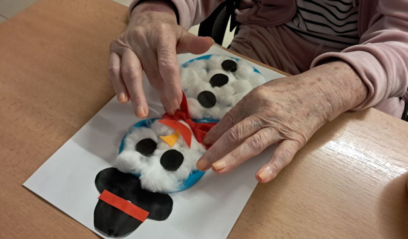 Naši prijímatelia sociálnych služieb sa v posledných dňoch s nadšením pustili do tvorenia, pri ktorom vznikli nádherné sovičky z farebného papiera, pestrofarebný strom z lístia, zimná krajina aj veselý snehuliak z vaty. Tvorenie prinieslo nielen