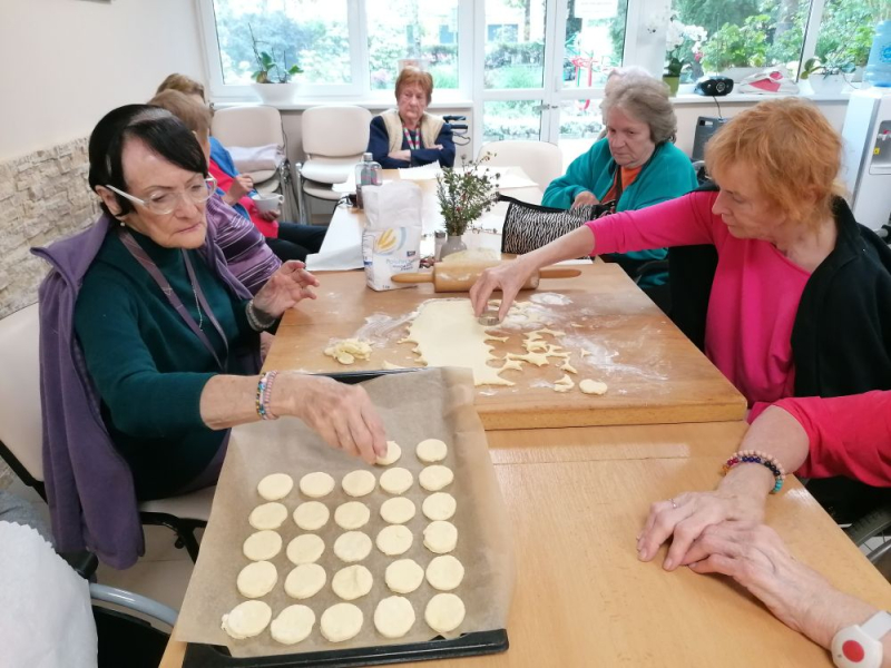 Dnešné doobedie sme si spríjemnili chutnou kulinoterapiou. Pán kuchár nám pripravil cesto na pagáčiky, ktoré sme si sami vaľkali, vykrajovali, potierali žĺtkom a posýpali makom či rascou podľa chuti. Okrem toho sme si pripravili aj chrumkavé