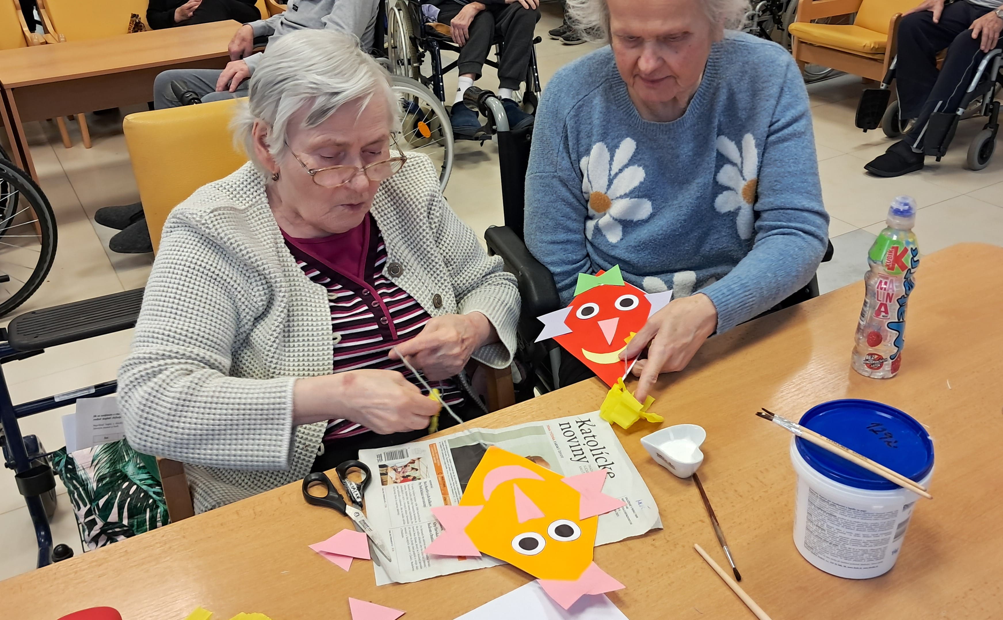 Počas uplynulého týždňa sme si užili množstvo krásnych chvíľ plných farieb, fantázie a dobrej nálady. Naši prijímatelia sociálnych služieb sa s chuťou pustili do tvorenia muchotrávok z farebného papiera a lístia, ktoré nám pripomenuli čaro jesennej prírody. Nechýbala ani výroba šarkanov, ktorí vniesli do zariadenia hravosť a jesenný optimizmus. A keďže jeseň si nevieme predstaviť bez tekvíc, pustili sme sa aj do ich vyrezávania – výsledkom boli originálne ozdoby, ktoré skrášľujú naše priestory a tešia oči aj dušu. Veľkým spestrením bola návšteva hostí z knižnice v Topoľčanoch, ktorí nám prišli čítať zaujímavé príbehy. Ich pútavé rozprávanie nás prenieslo do sveta fantázie a vyčarilo na tvárach úsmev i pokoj. Ďakujeme všetkým, ktorí prispeli k tomu, že tento týždeň bol plný radosti, tvorivosti a krásnych spoločných chvíľ.
