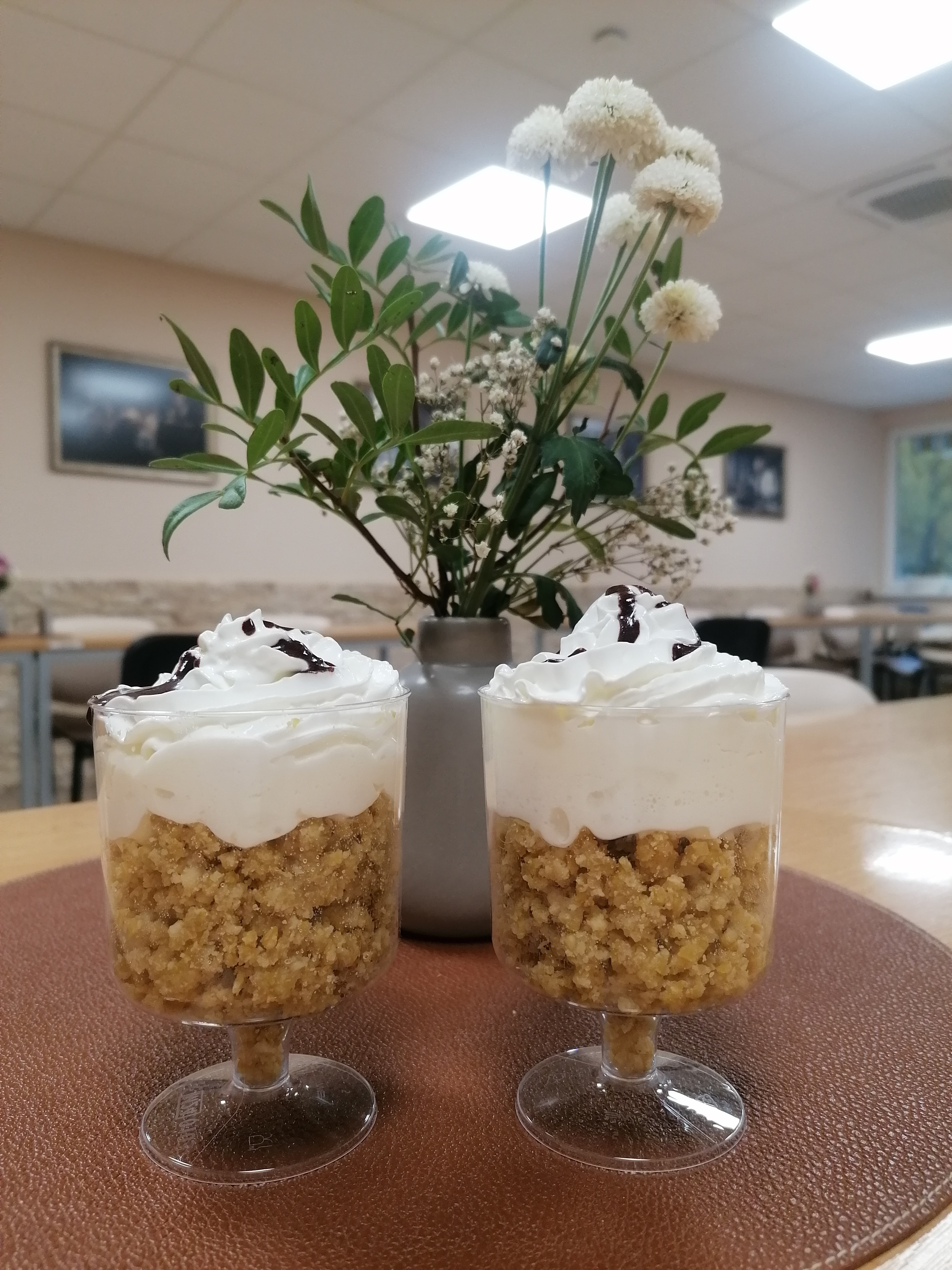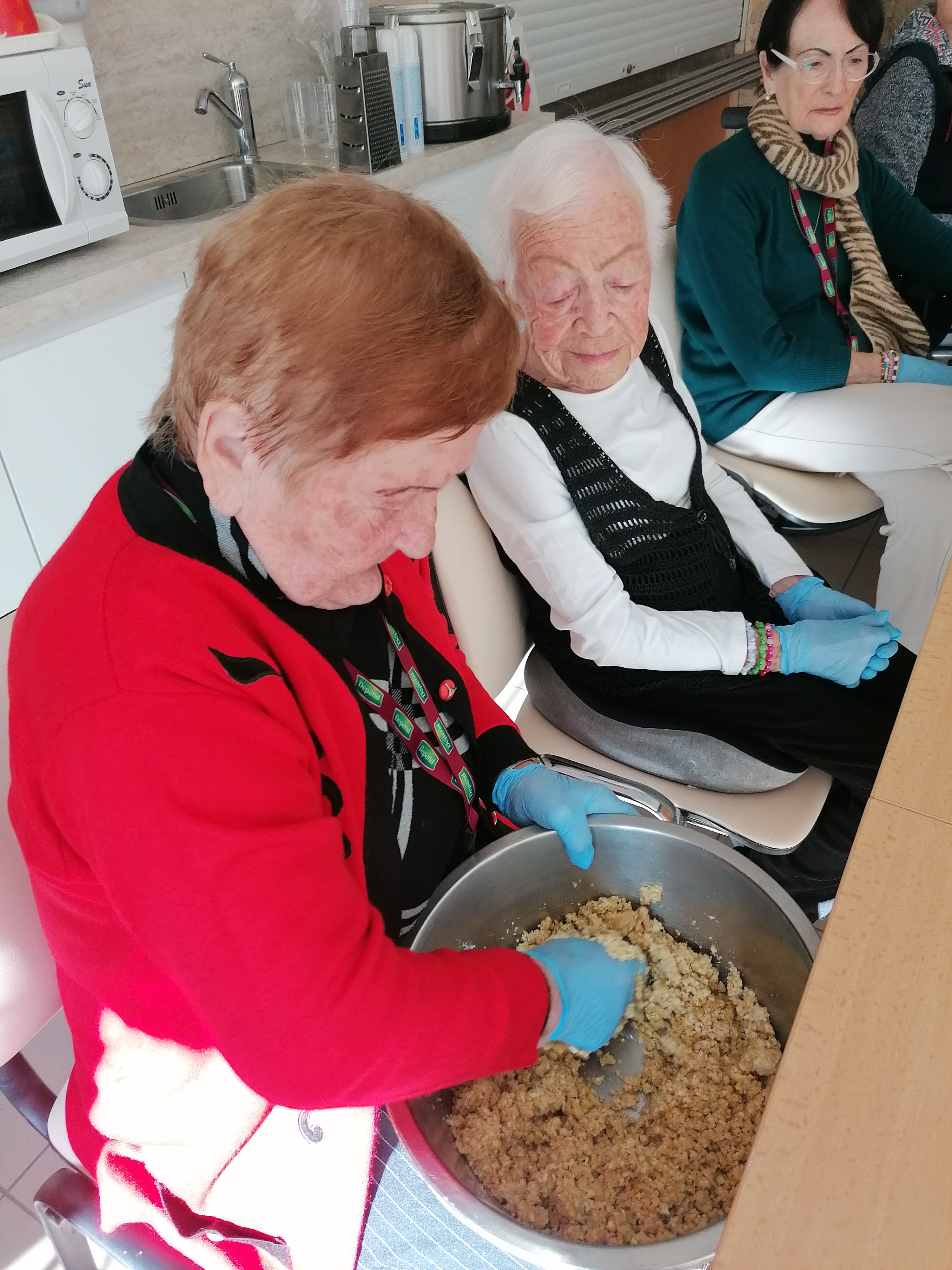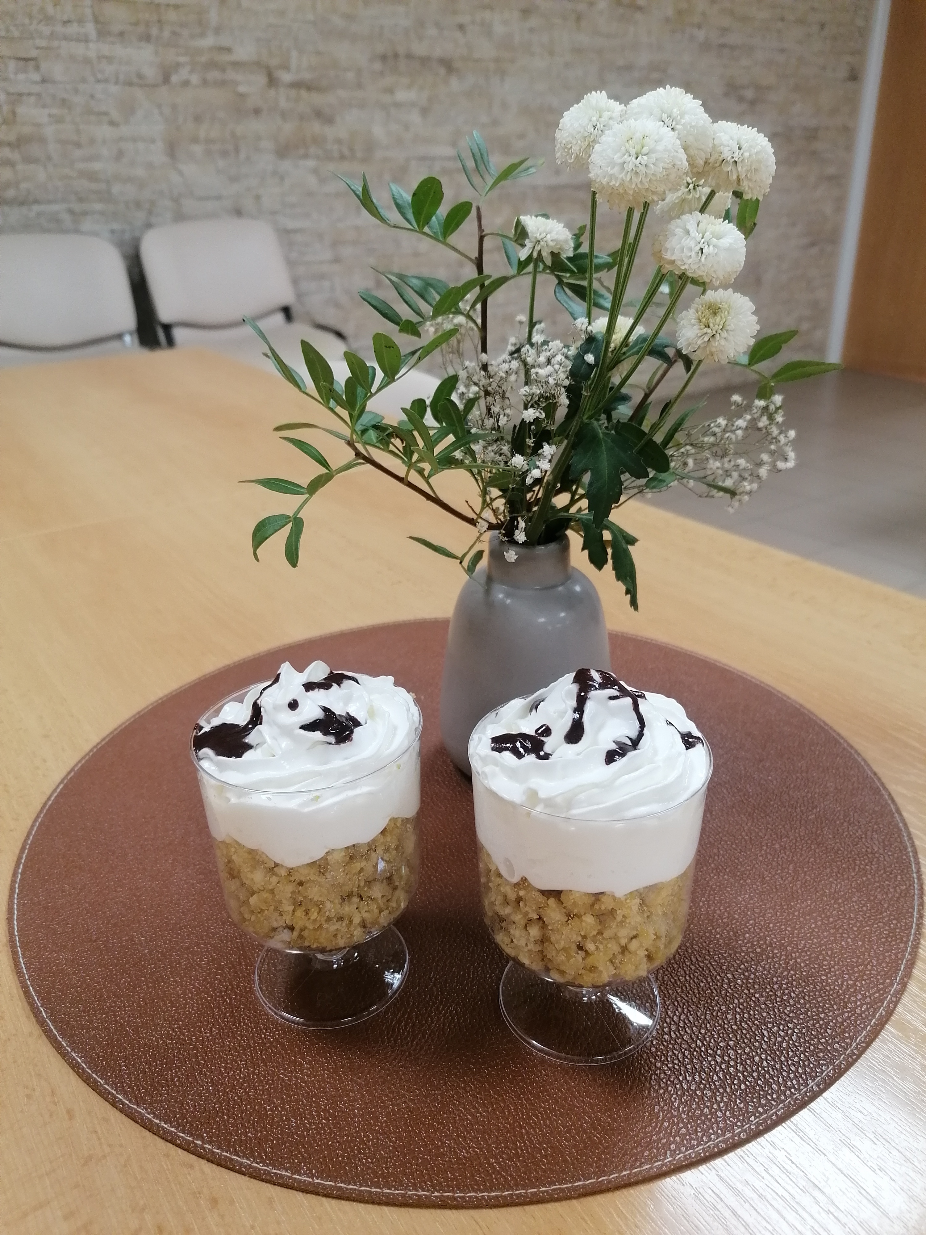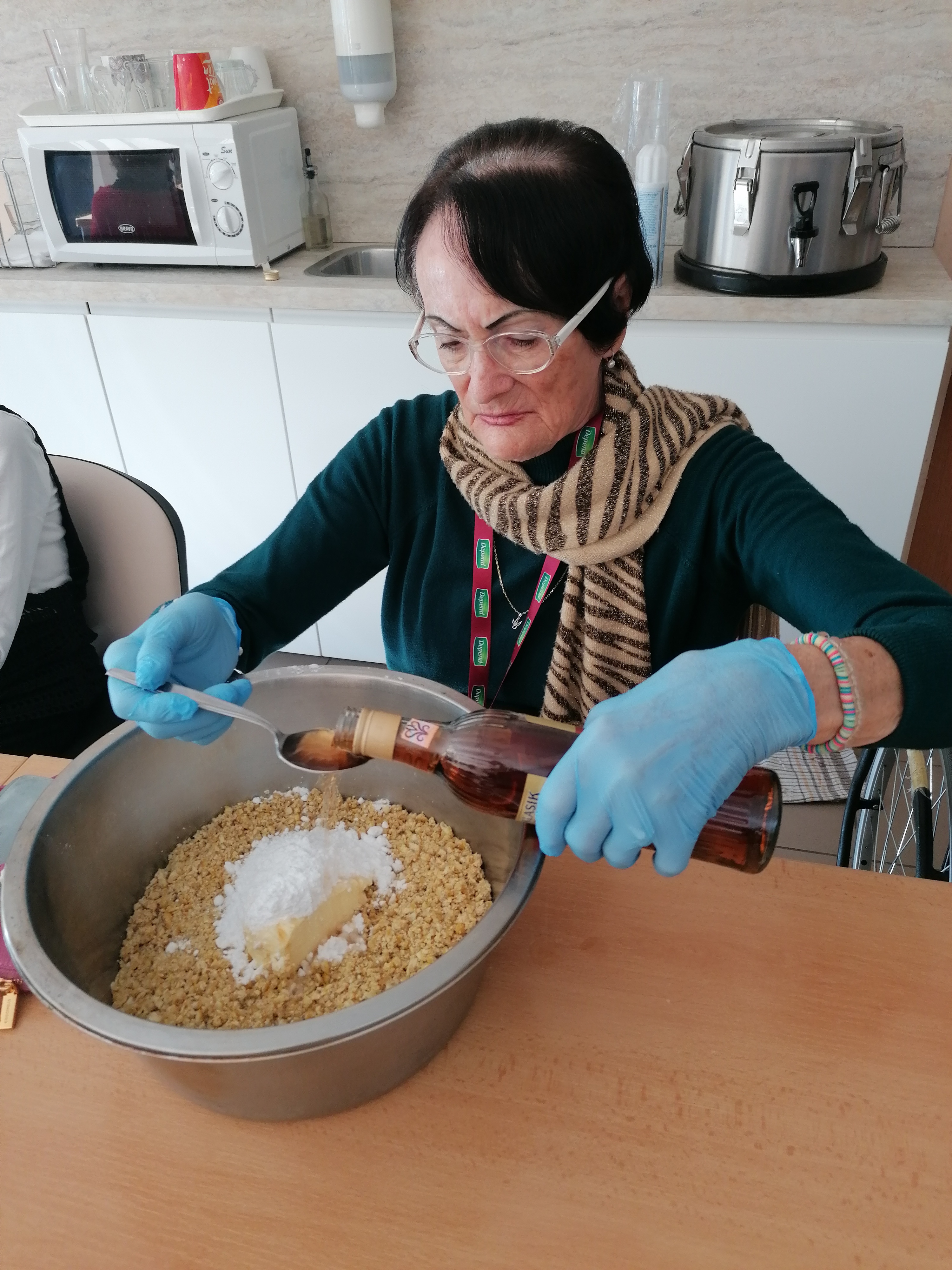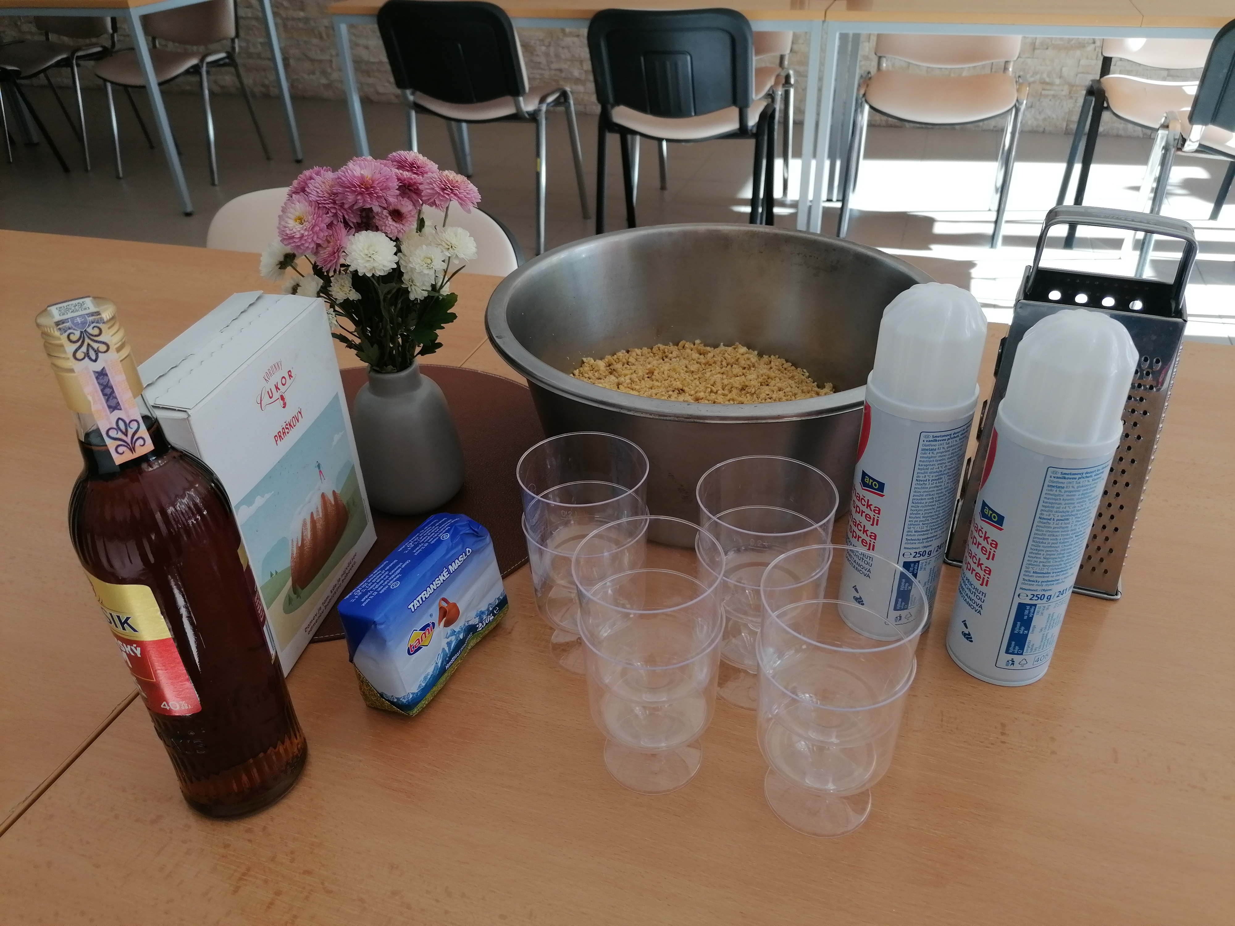 Dopoludnie sme strávili prípravou chutnej gaštanovej pochúťky. Náš pán kuchár nám gaštany uvaril a rozomlel, a my sme už len spoločne zamiesili zmes – pridali sme maslo, cukor, trochu rumu a medu. Zmes sme dali schladiť do chladničky, potom nastrúhali, ozdobili šľahačkou a poliali roztopenou čokoládou. Výsledok? Dokonalý jesenný olovrant, na ktorom sme si všetci pochutili.