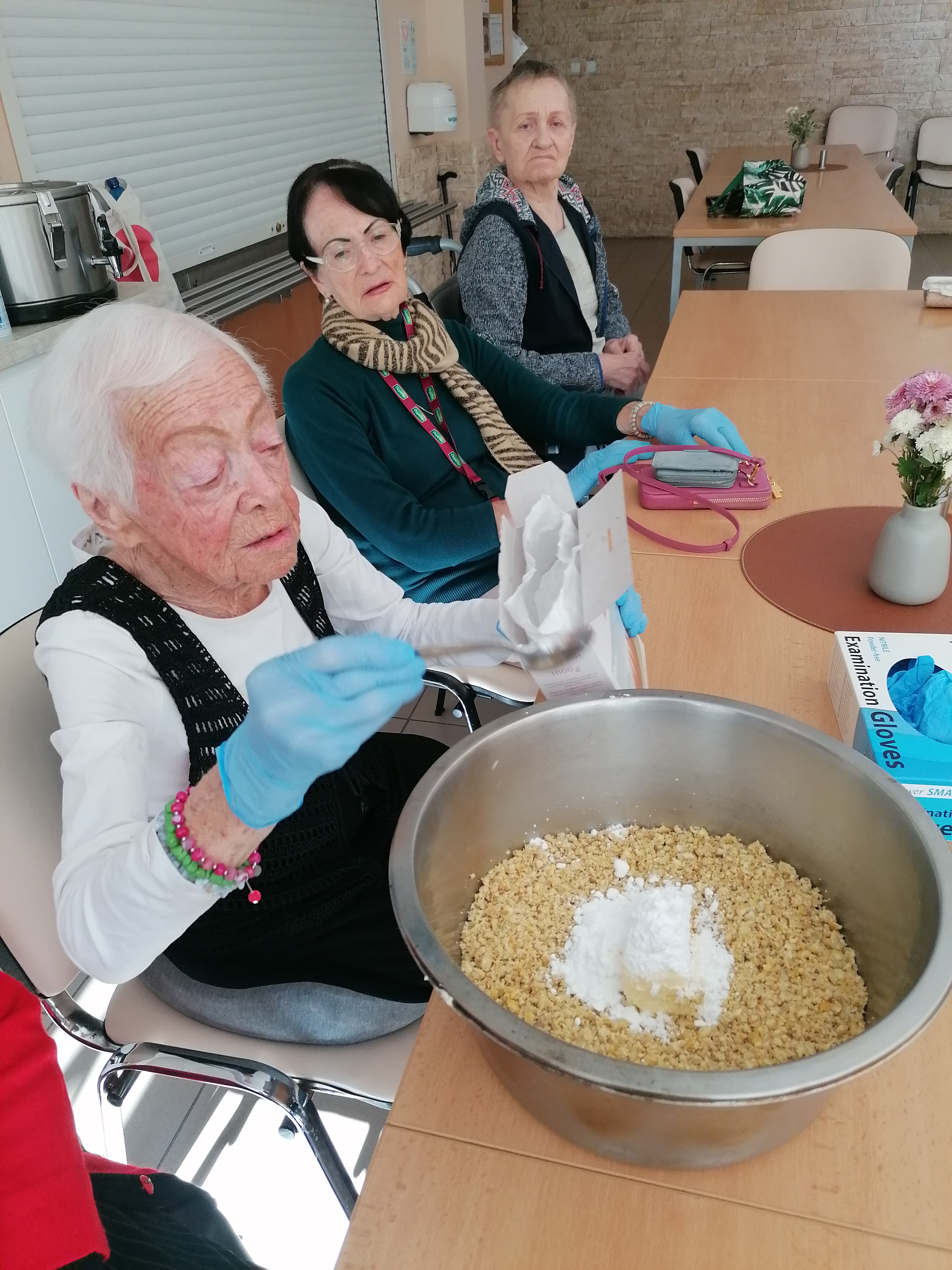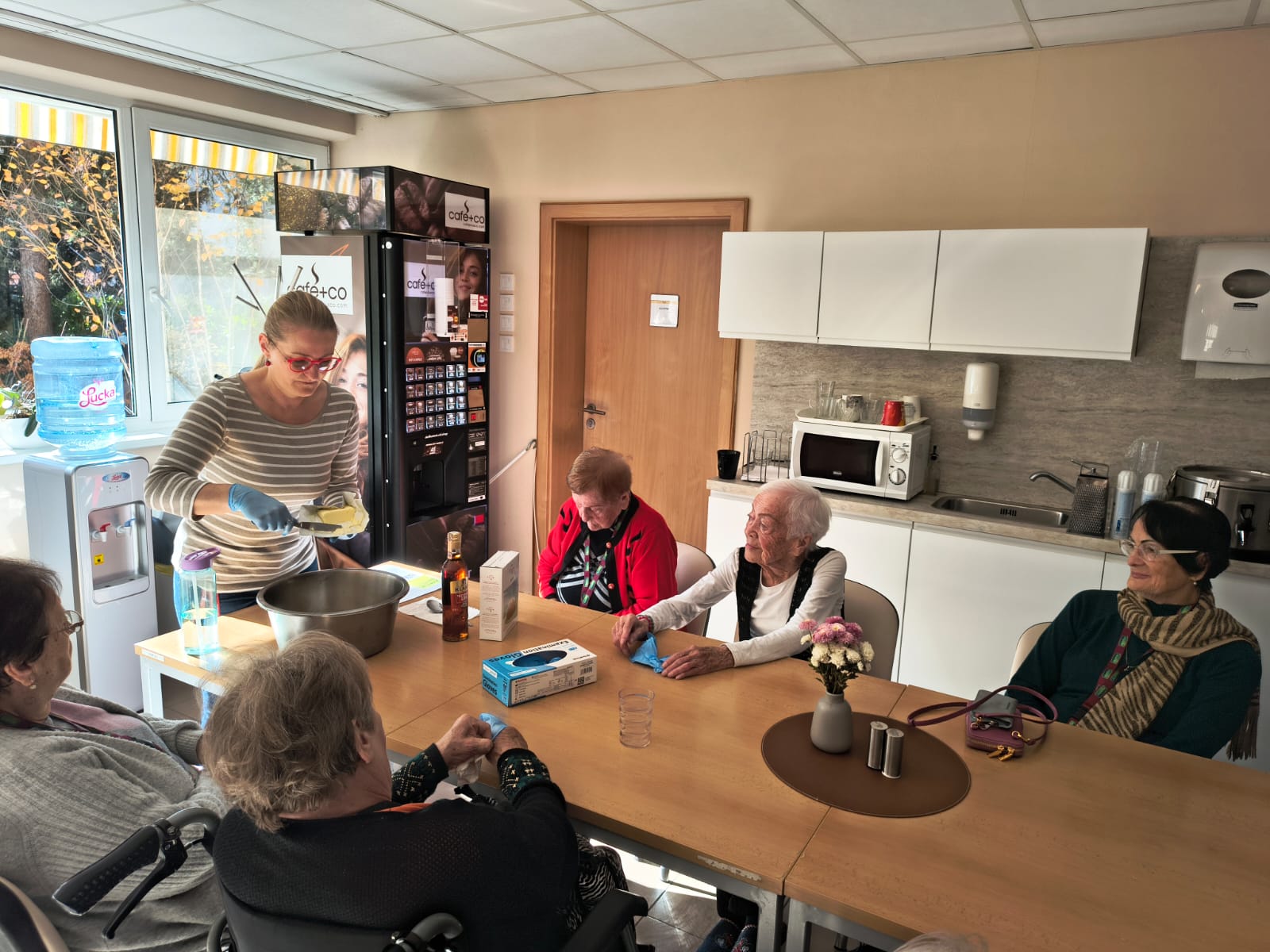 Naša najstaršia klientka, úžasná pani Frida dnes mala oslavu 101 rokov. Celý personál sa poskladal a podelil si úlohy: syrovú tortu pripravila vedúca sestra Patrícia, sladkú tortu opatrovateľka Anička, zákusky a slané lakotinky ostatné členky tímu…
