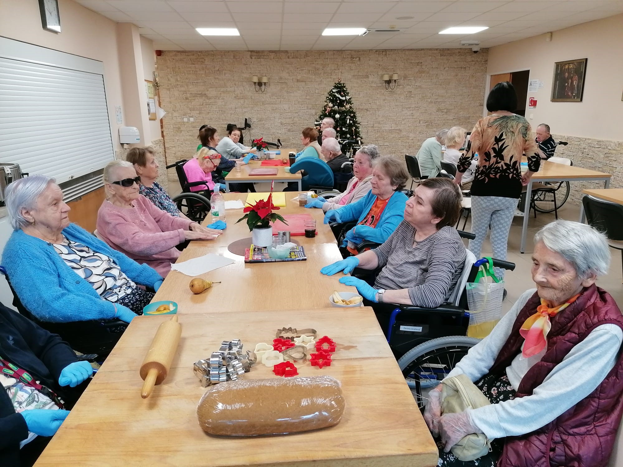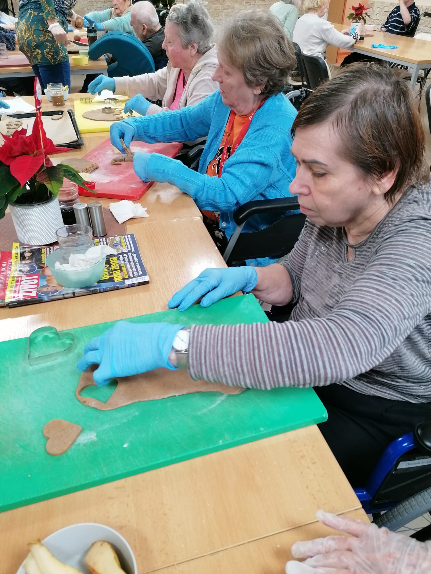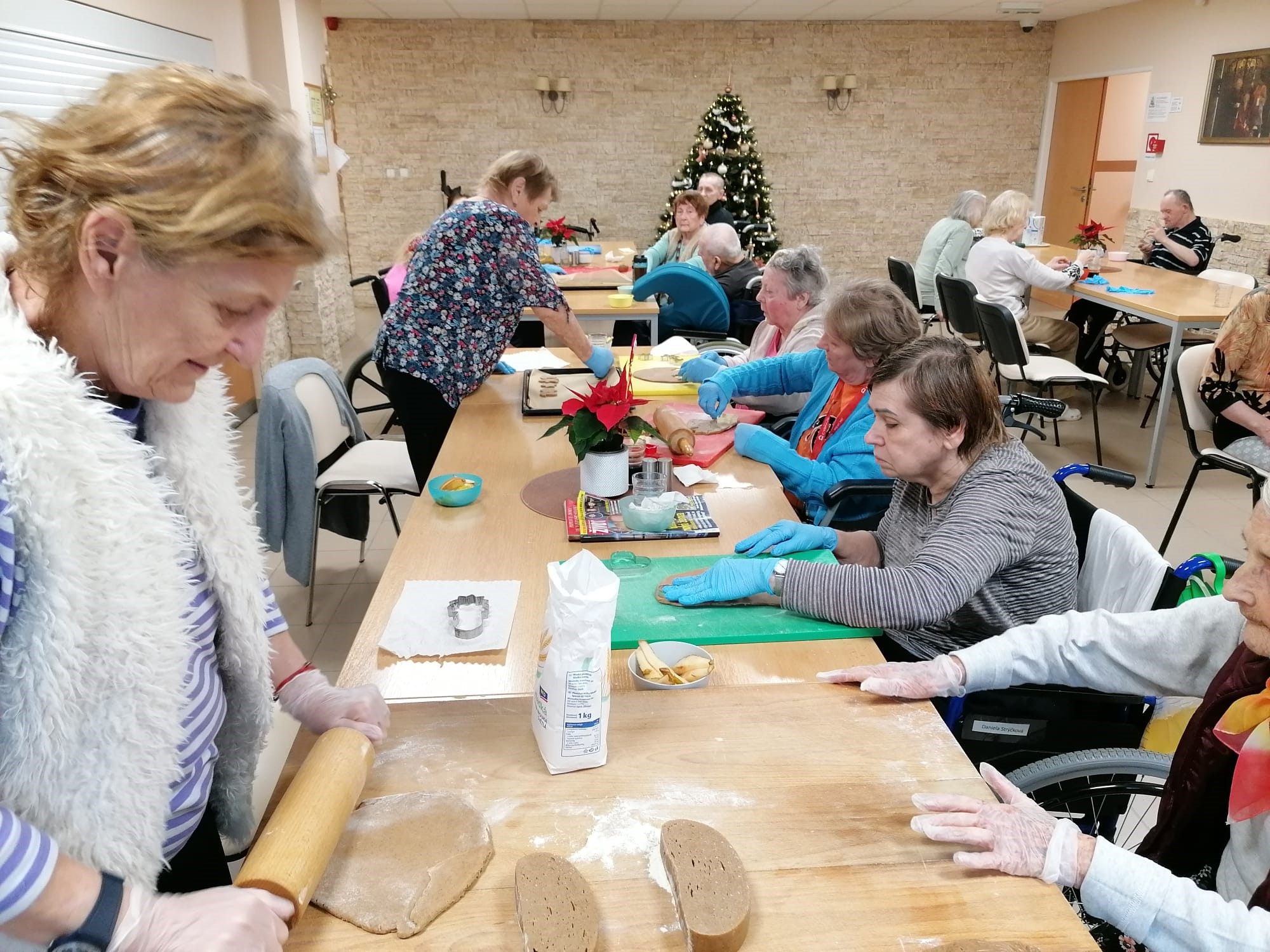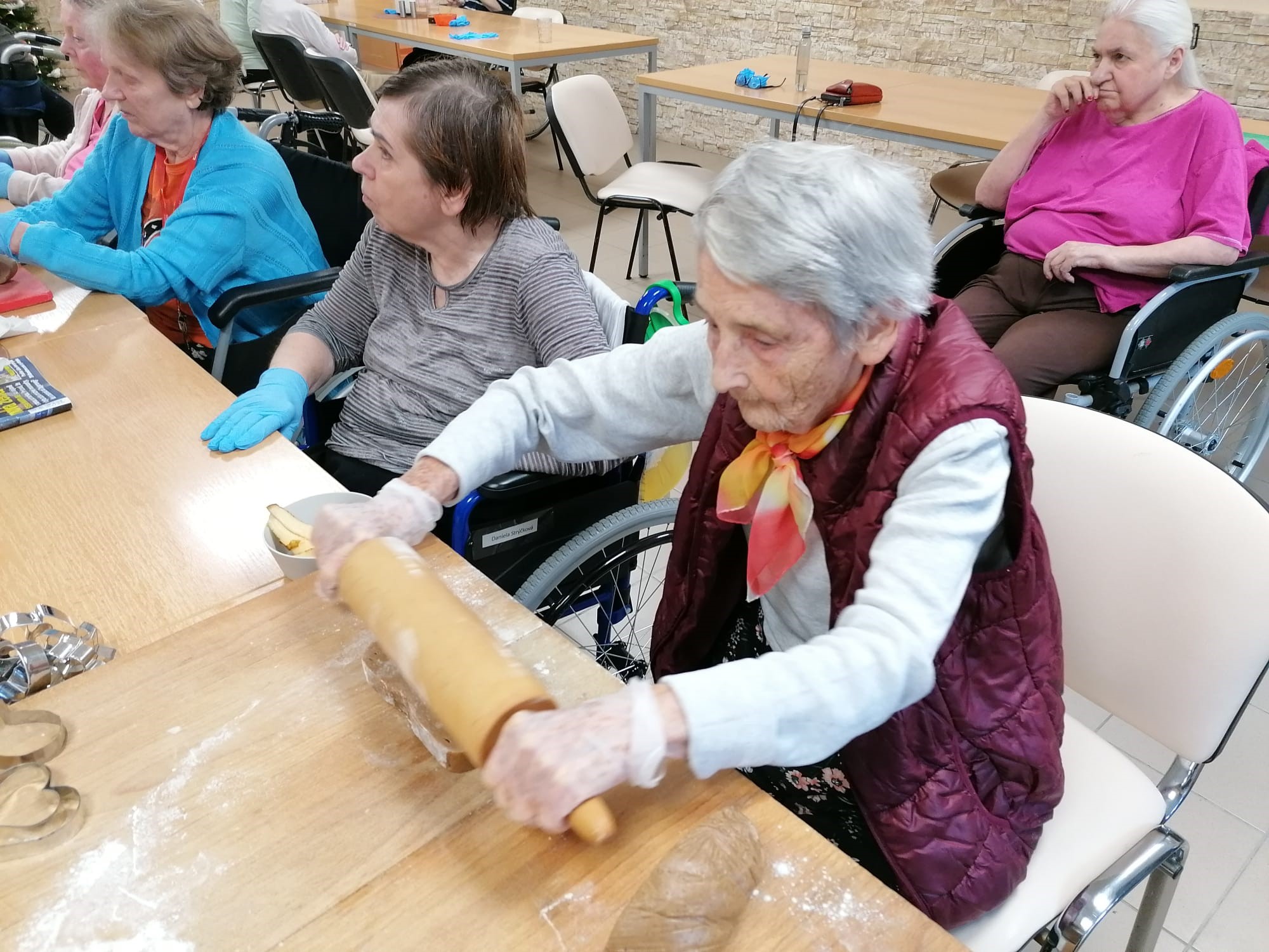 V našom zariadení sme si užili nádhernú predvianočnú atmosféru pri spoločnom pečení medovníčkov. Náš pán kuchár pre nás pripravil cesto, ktoré sme nechali do druhého dňa odležať v chladničke, aby malo tú správnu konzistenciu. Na stole sme si nachystali dosky, formičky, valčeky, podložky – a najmä dobrú náladu. Pri vaľkaní cesta sme sa striedali a každý účastník si vyskúšal aj vykrajovanie vlastných kúskov. Celým priestorom sa niesla sladká vôňa medovníkov a pri tónoch vianočných pesničiek sme napiekli rovno trojitú dávku. A tým sa naše predvianočné tvorenie nekončí – už sa tešíme na spoločné zdobenie!