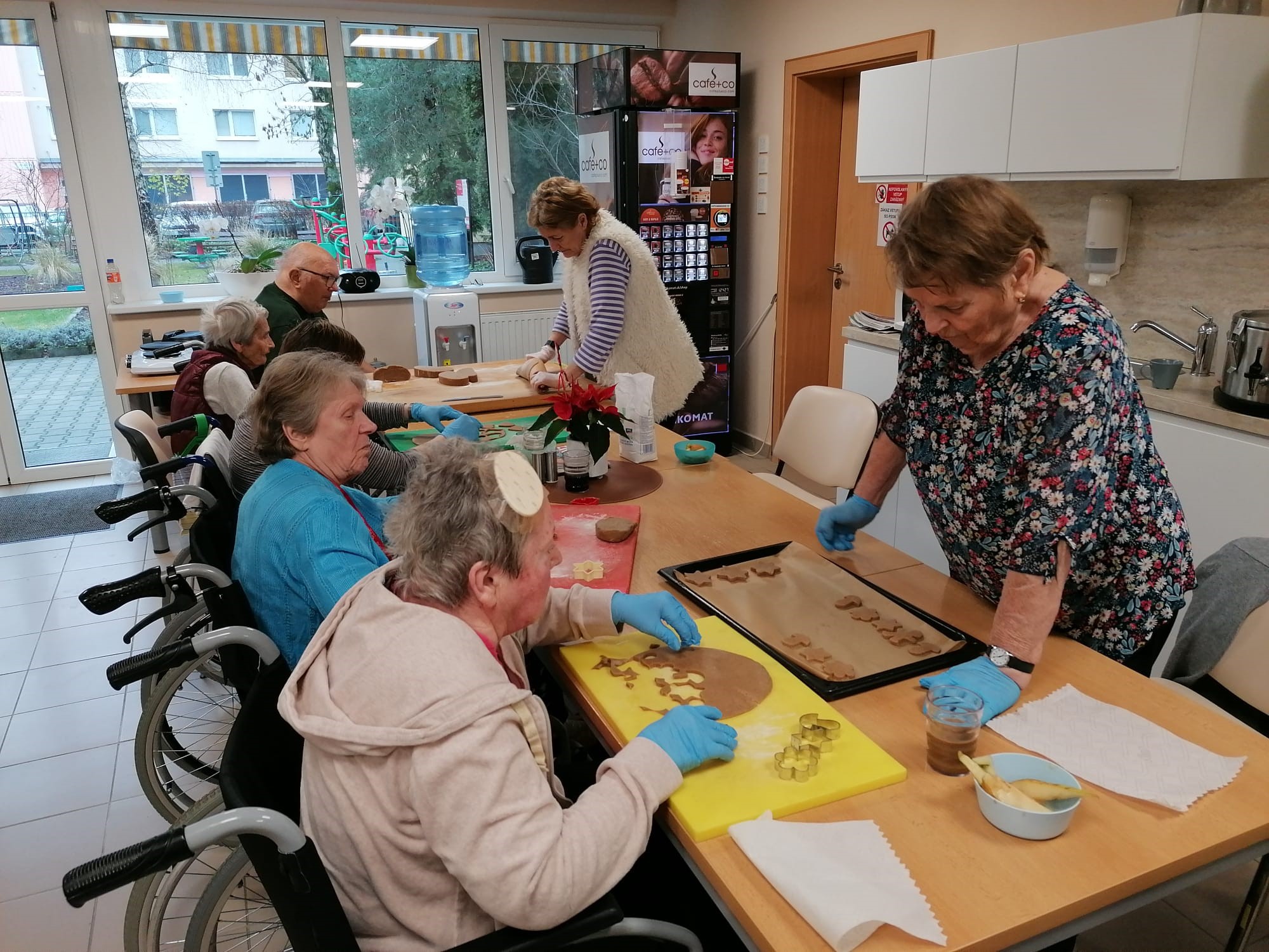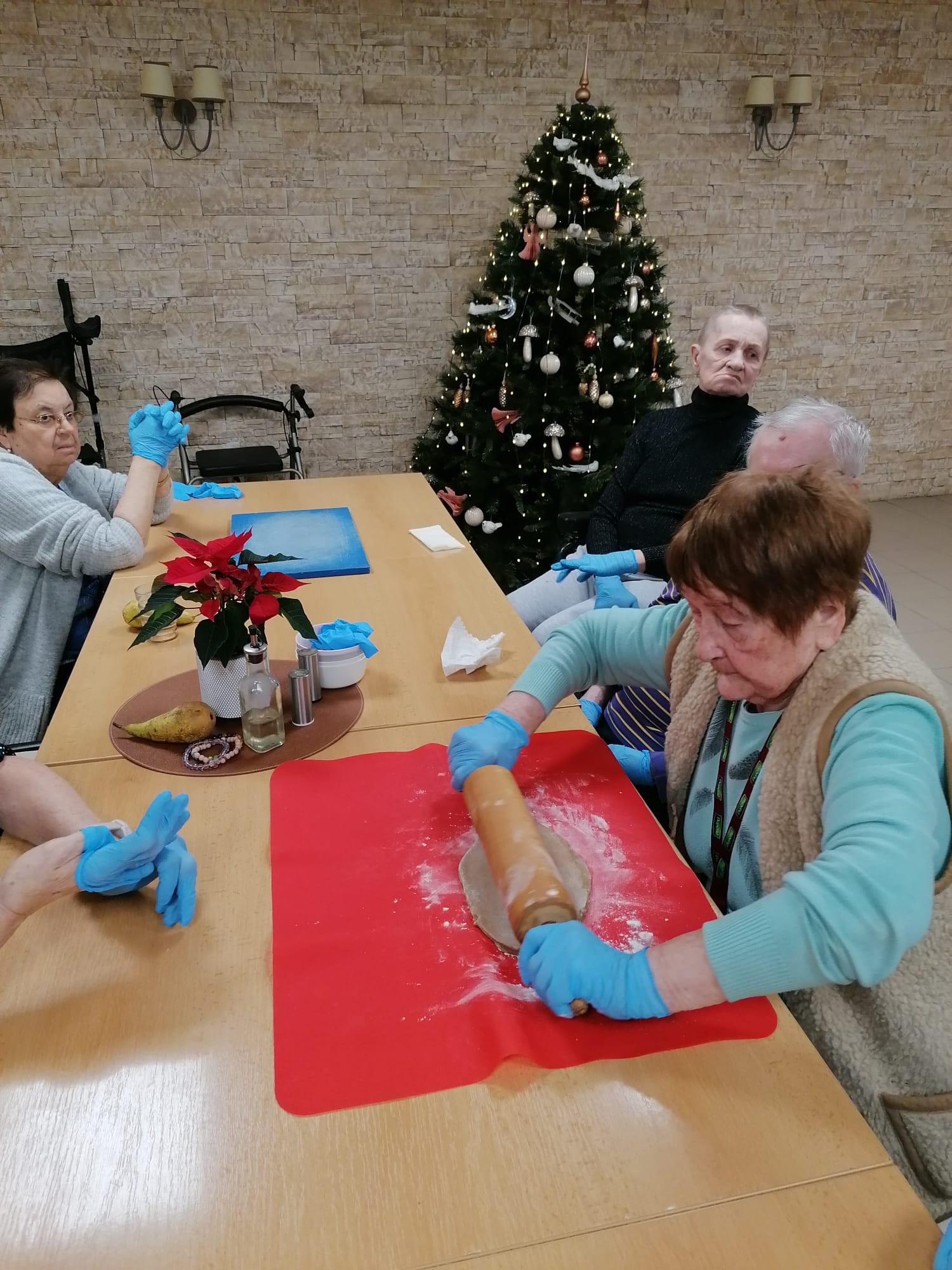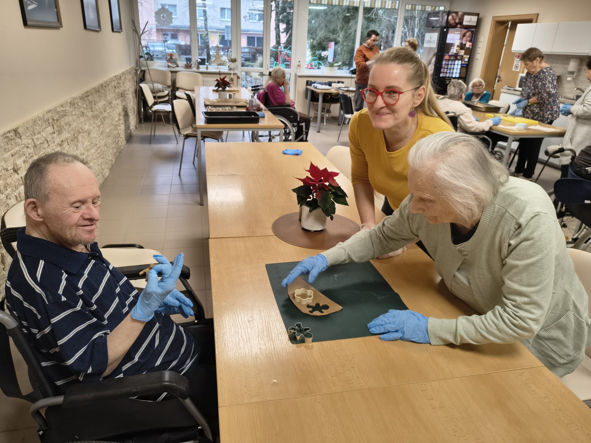 V našom zariadení sme si užili nádhernú predvianočnú atmosféru pri spoločnom pečení medovníčkov. Náš pán kuchár pre nás pripravil cesto, ktoré sme nechali do druhého dňa odležať v chladničke, aby malo tú správnu konzistenciu. Na stole sme si nachystali dosky, formičky, valčeky, podložky – a najmä dobrú náladu. Pri vaľkaní cesta sme sa striedali a každý účastník si vyskúšal aj vykrajovanie vlastných kúskov. Celým priestorom sa niesla sladká vôňa medovníkov a pri tónoch vianočných pesničiek sme napiekli rovno trojitú dávku. A tým sa naše predvianočné tvorenie nekončí – už sa tešíme na spoločné zdobenie!