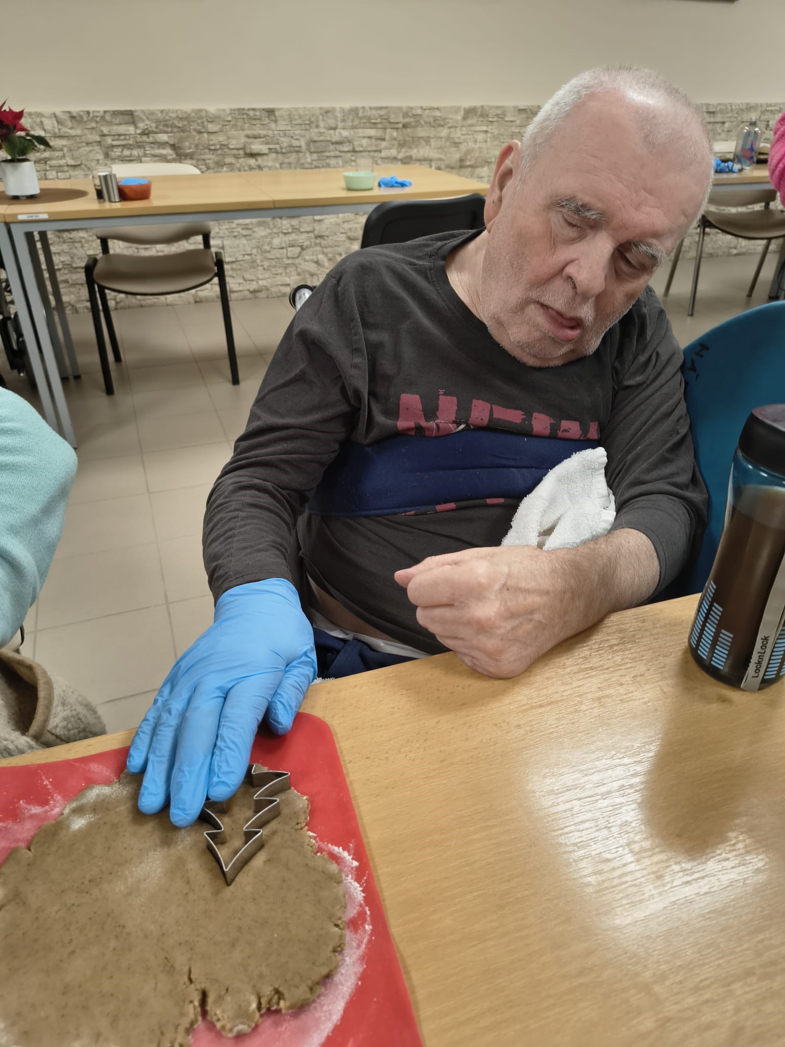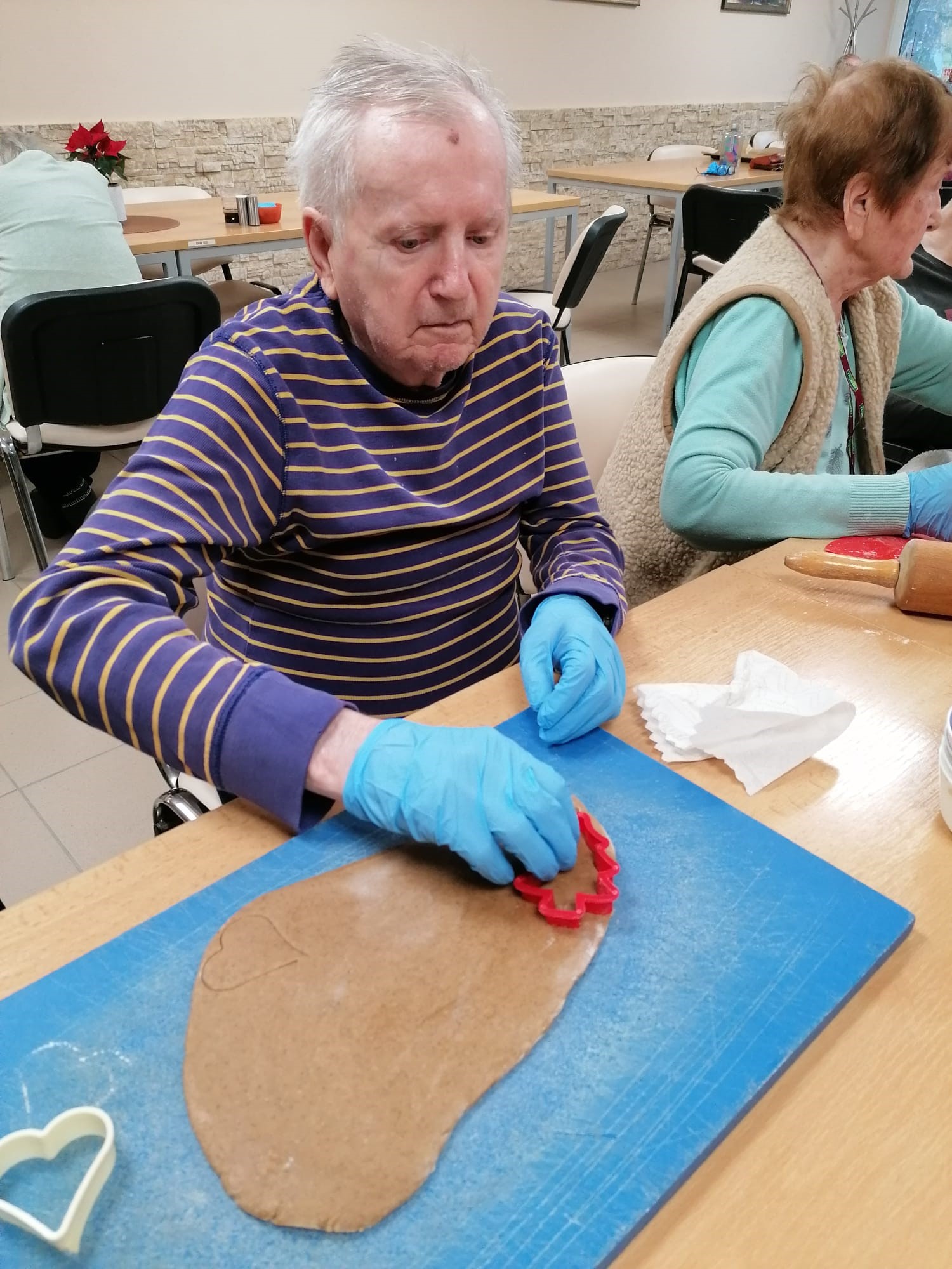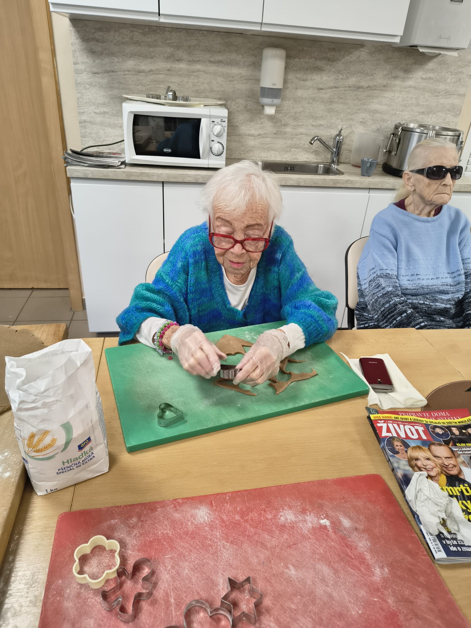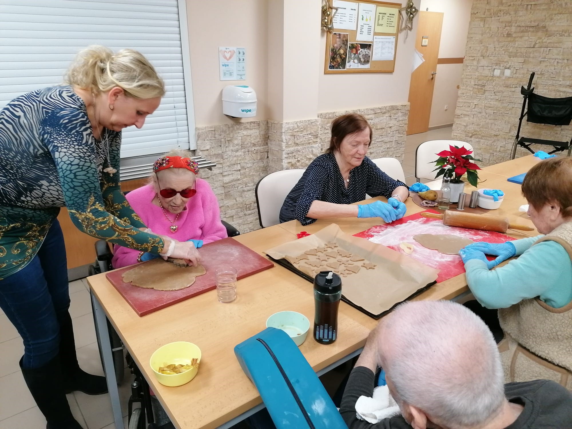 V našom zariadení sme si užili nádhernú predvianočnú atmosféru pri spoločnom pečení medovníčkov. Náš pán kuchár pre nás pripravil cesto, ktoré sme nechali do druhého dňa odležať v chladničke, aby malo tú správnu konzistenciu. Na stole sme si nachystali dosky, formičky, valčeky, podložky – a najmä dobrú náladu. Pri vaľkaní cesta sme sa striedali a každý účastník si vyskúšal aj vykrajovanie vlastných kúskov. Celým priestorom sa niesla sladká vôňa medovníkov a pri tónoch vianočných pesničiek sme napiekli rovno trojitú dávku. A tým sa naše predvianočné tvorenie nekončí – už sa tešíme na spoločné zdobenie!