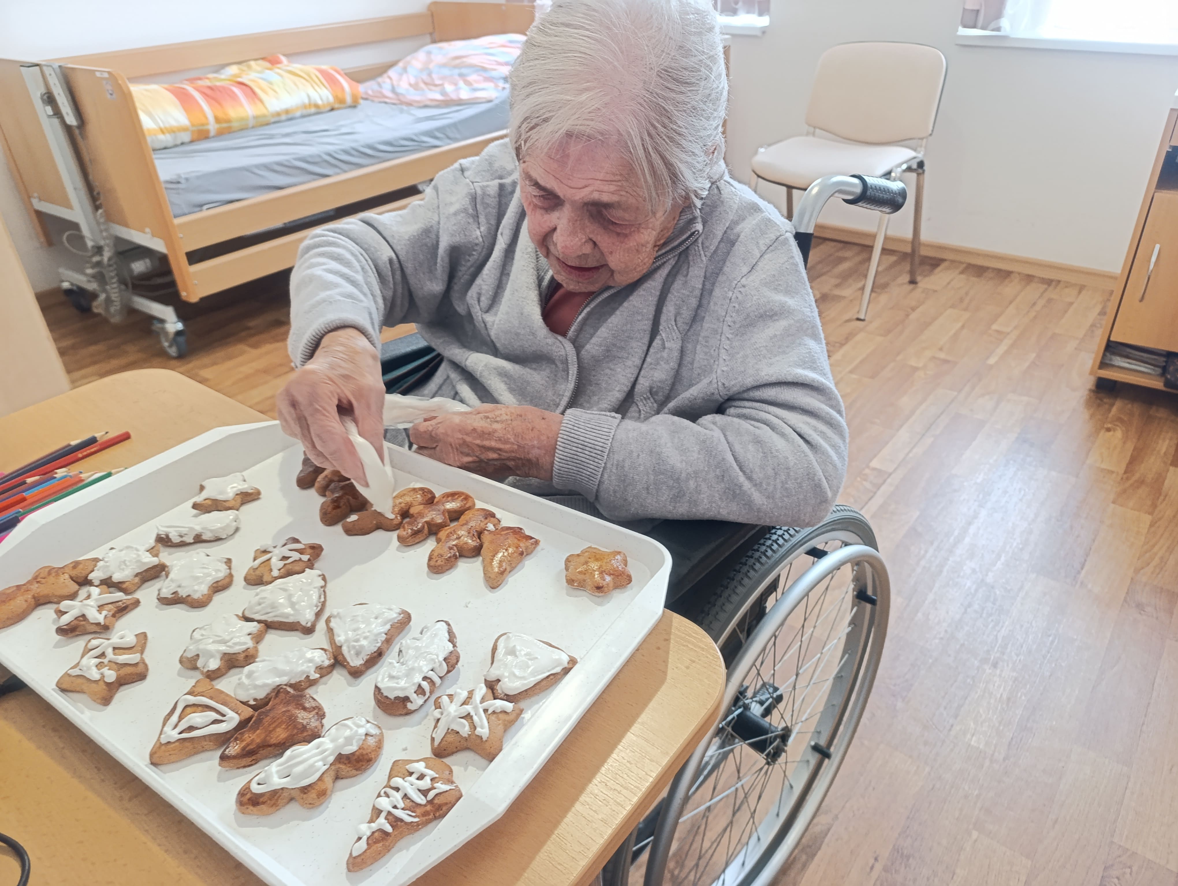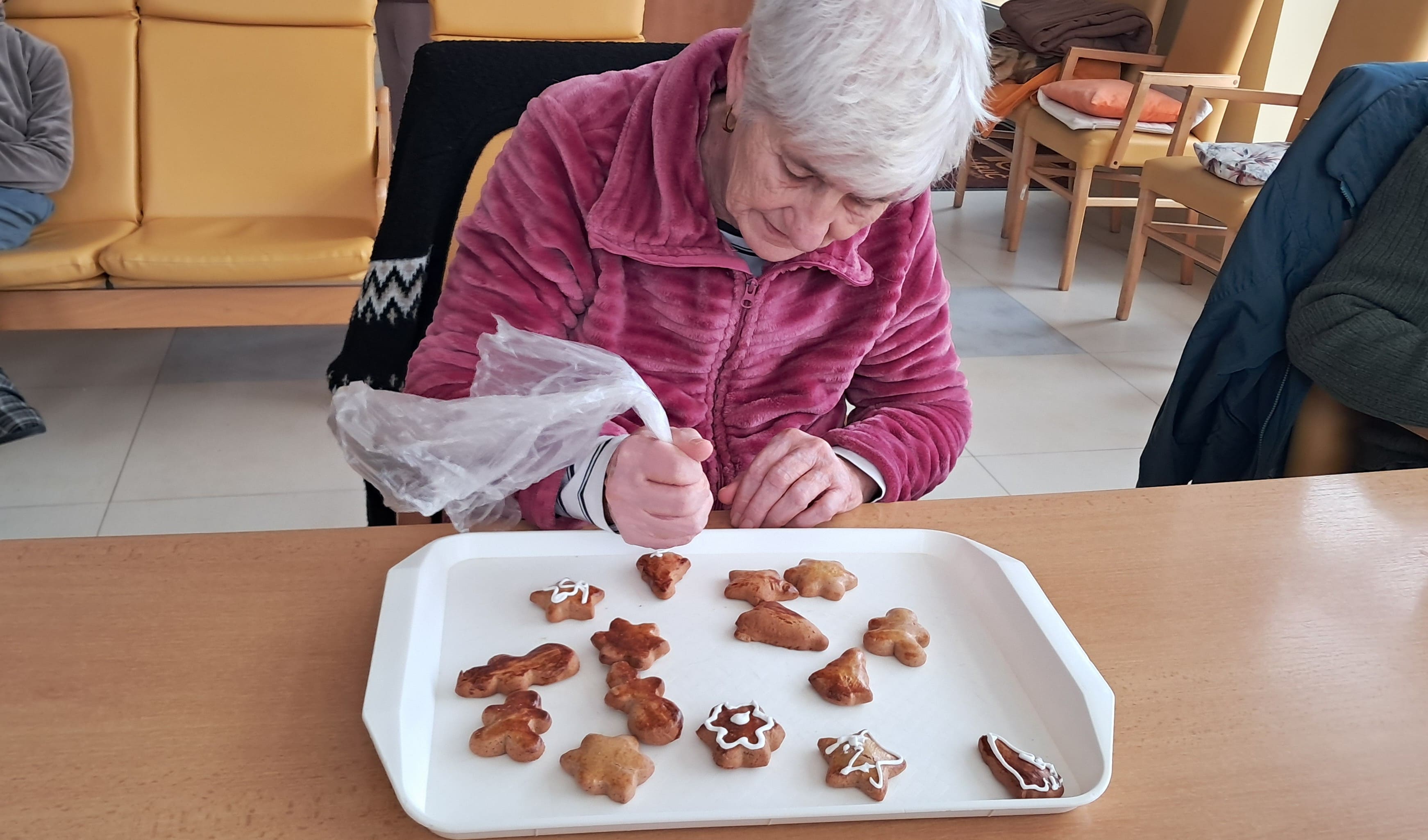 Tento týždeň sme sa s veľkou radosťou ponorili do predvianočného tvorenia. Prijímatelia sociálnych služieb vyrábali krásne girlandy, ktorými sme vyzdobili naše priestory a vytvorili tak útulnú sviatočnú atmosféru. Nechýbala ani vôňa čerstvo upečených medovníkov – piekli sme ich spoločne a po vychladnutí sme si užili aj ich zdobenie. Tieto spoločné chvíle nám priniesli veľa radosti, dobrej nálady a krásnych momentov, ktoré nás naladili na prichádzajúce Vianoce.