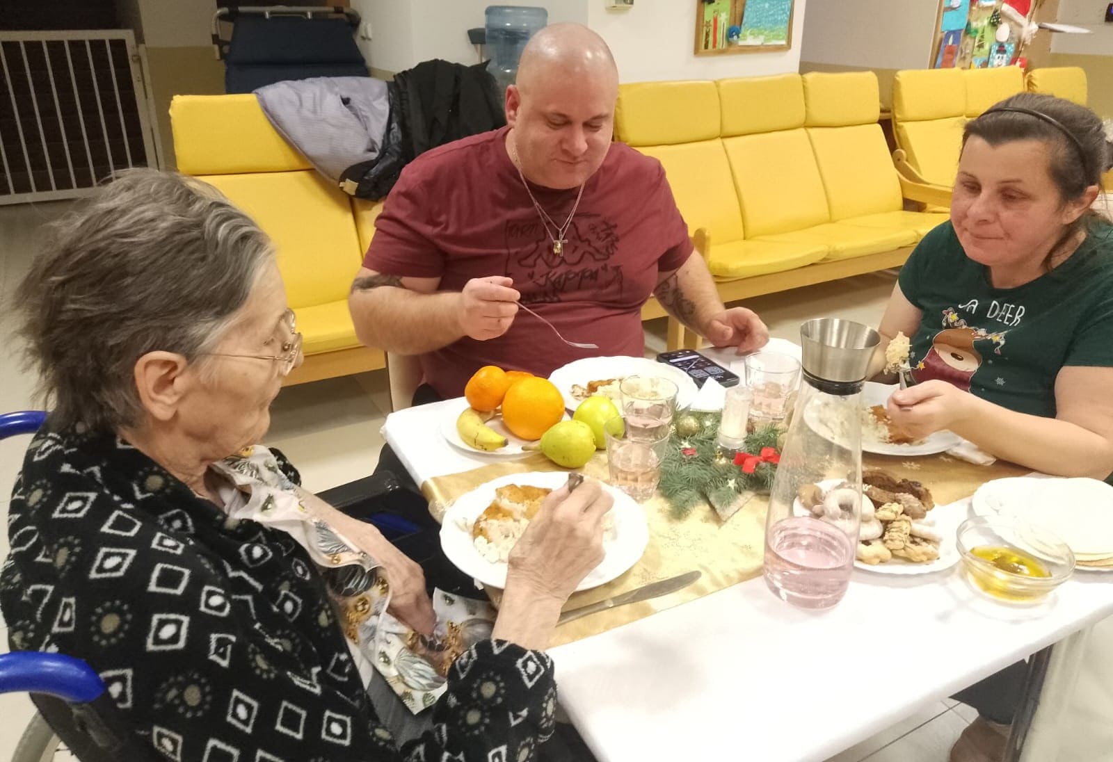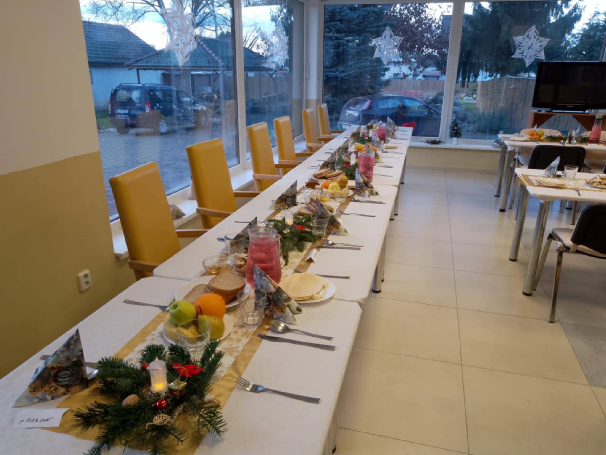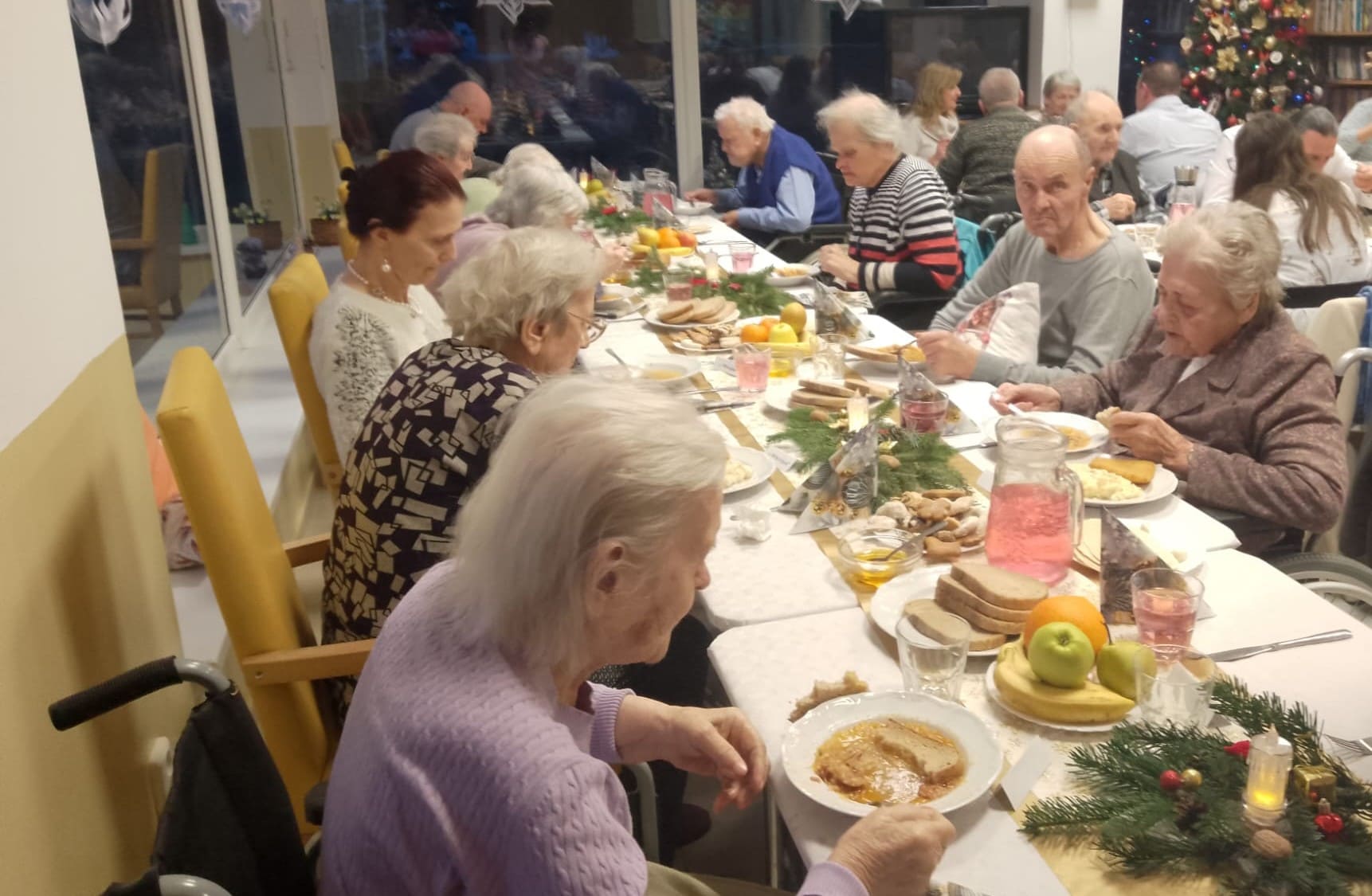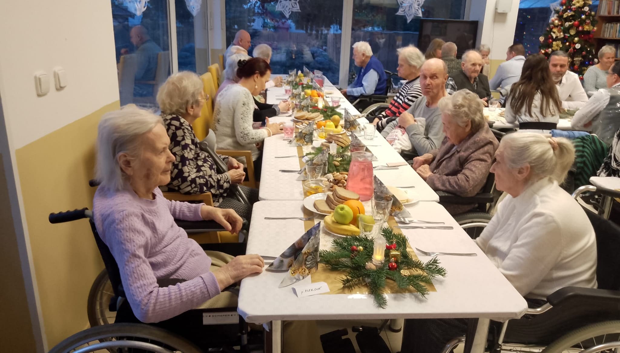 Spoločné chvíle pri slávnostne prestretých stoloch spojili prijímateľov sociálnych služieb, pričom mnohí z nich prežili tento výnimočný večer aj v prítomnosti svojich rodín priamo v našom zariadení.Vzduchom sa niesla sviatočná pohoda, úsmevy, tiché rozhovory a pocit blízkosti, ktorý robí Vianoce takými výnimočnými. Nechýbali ani tradičné štedrovečerné jedlá – oplátky, voňavá kapustnica, zemiakový šalát, ryba, čerstvé ovocie či sladké zákusky, ktoré spoločne vytvorili pravú chuť Vianoc. Spoločné stolovanie prinieslo nielen dobré jedlo, ale predovšetkým krásne okamihy vďačnosti, ľudskej láskavosti a spolupatričnosti, na ktoré sa dlho spomína.
