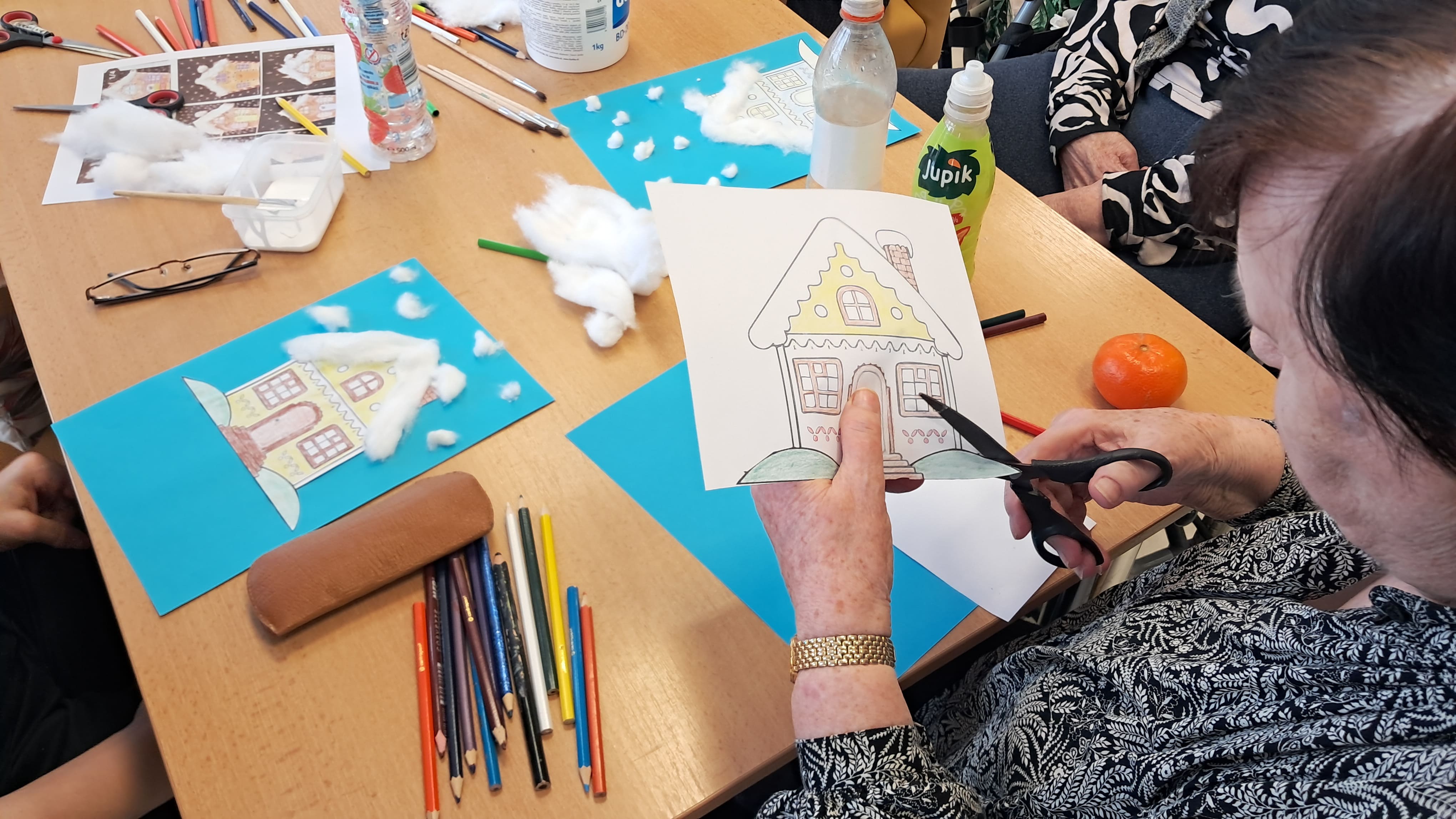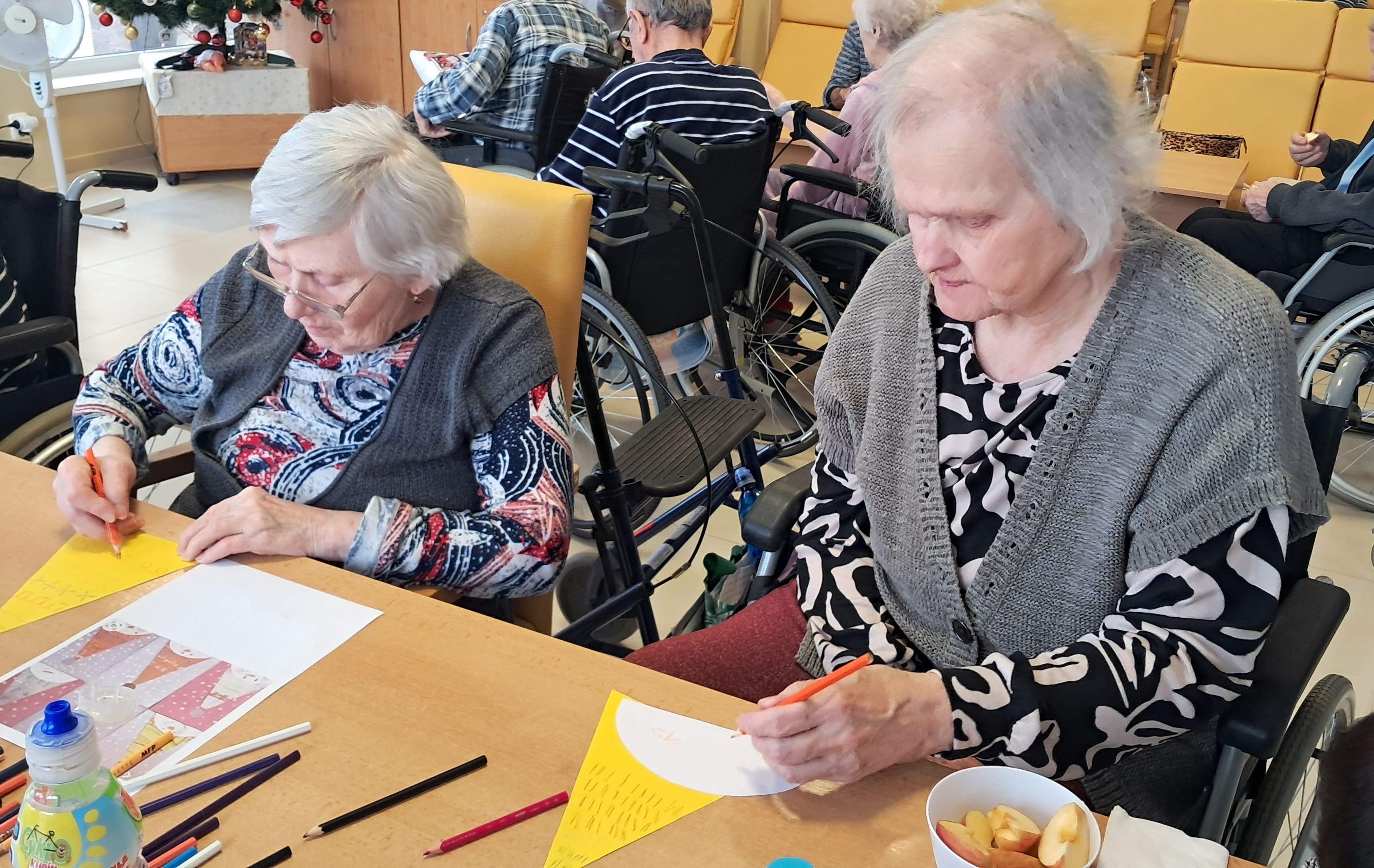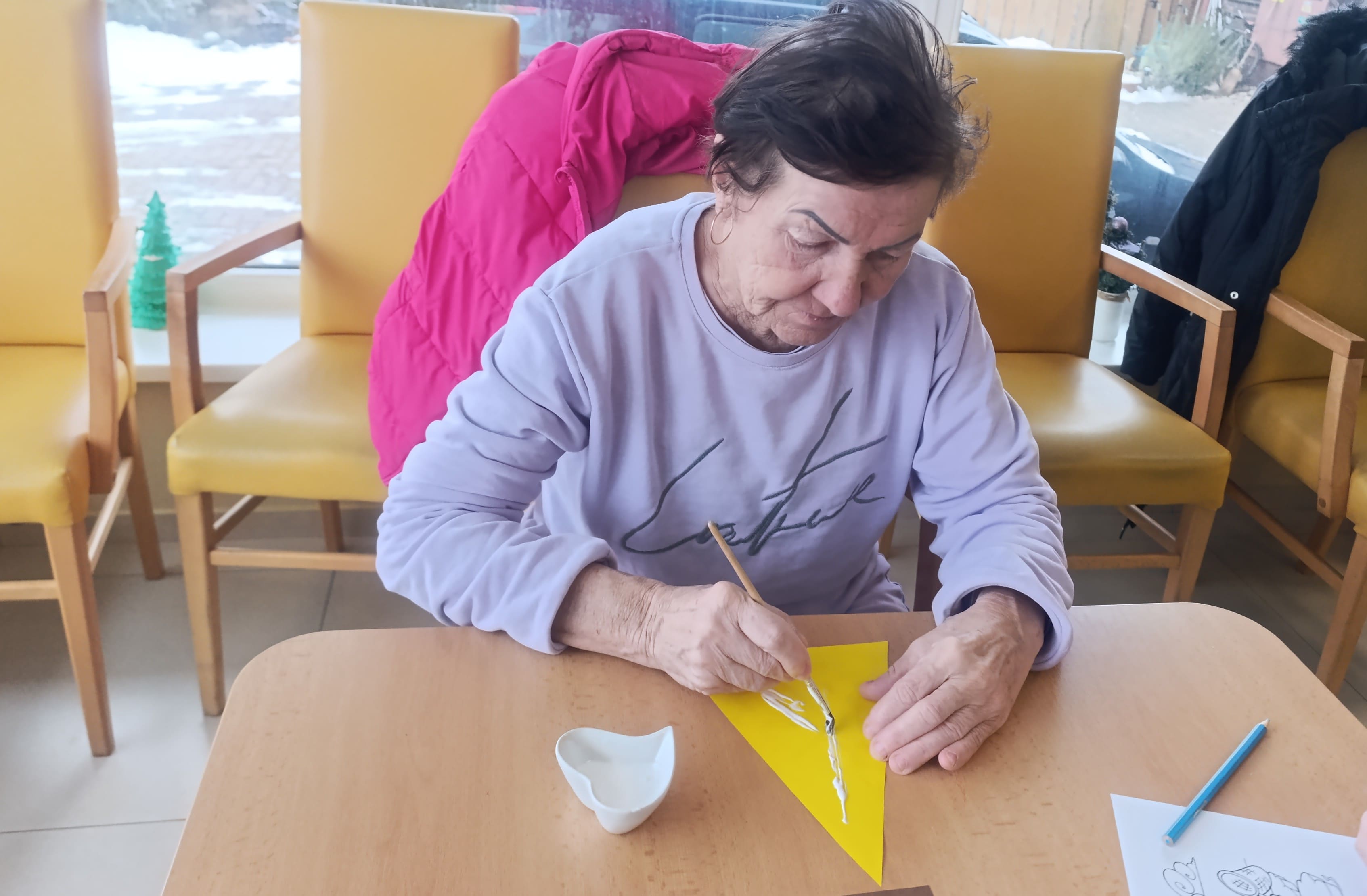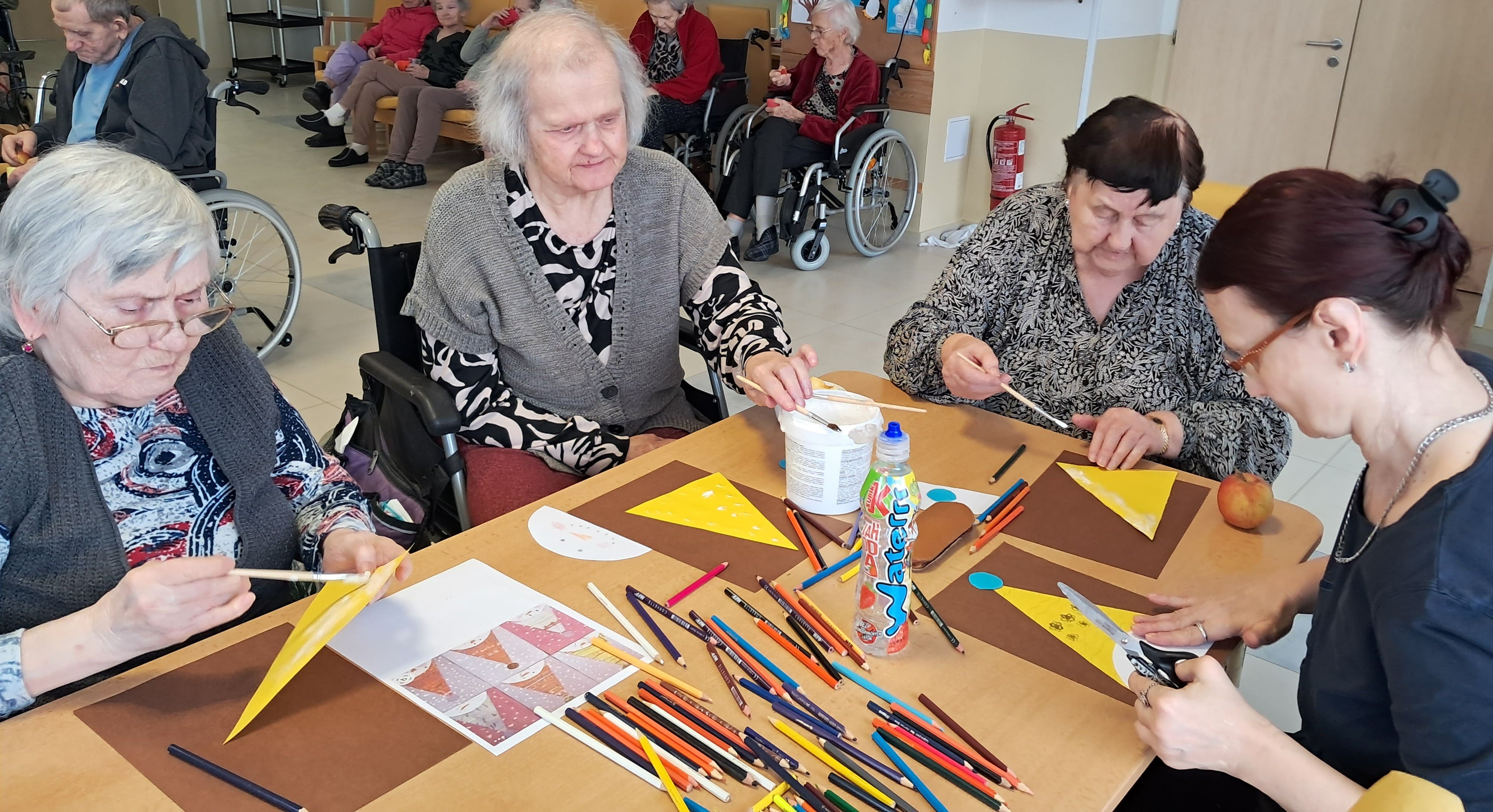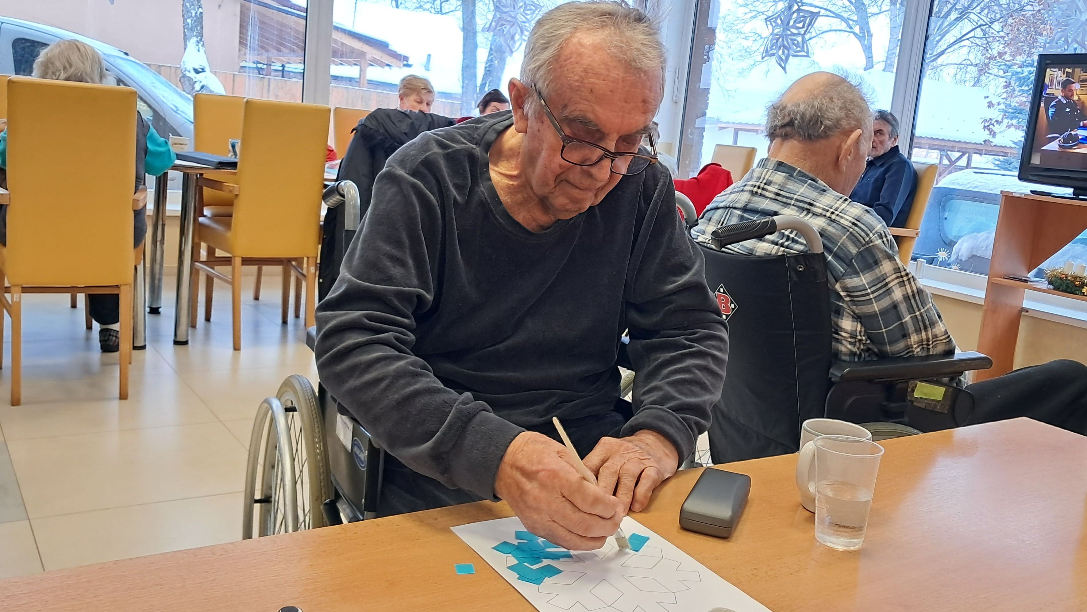 Počas uplynulého týždňa sa naši prijímatelia sociálnych služieb s veľkým nadšením venovali kreatívnemu tvoreniu v zimnom duchu. Z farebného papiera postupne vznikali nádherné zimné krajinky, jemné snehové vločky, zasnežené domčeky dotvorené vatou a veselí snehuliaci. Každý výrobok bol jedinečný a odrážal fantáziu, trpezlivosť a šikovnosť svojich autorov. Tvorivé aktivity priniesli nielen krásne výtvory, ale aj radosť zo spoločnej práce, príjemnú atmosféru a pocit úspechu. Spoločne strávený čas bol naplnený úsmevmi, rozhovormi a zimnou náladou, ktorú sa nám podarilo preniesť aj do našich priestorov.