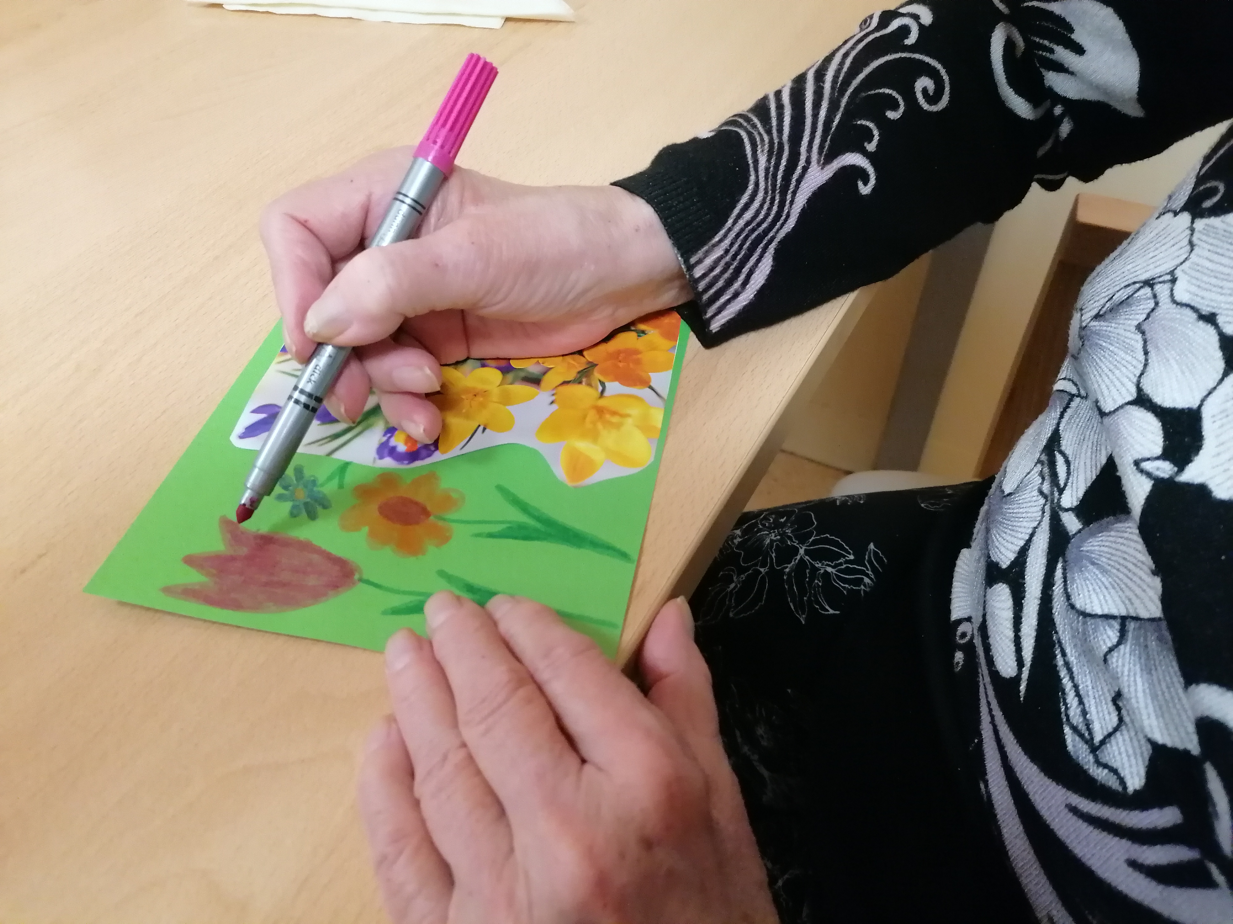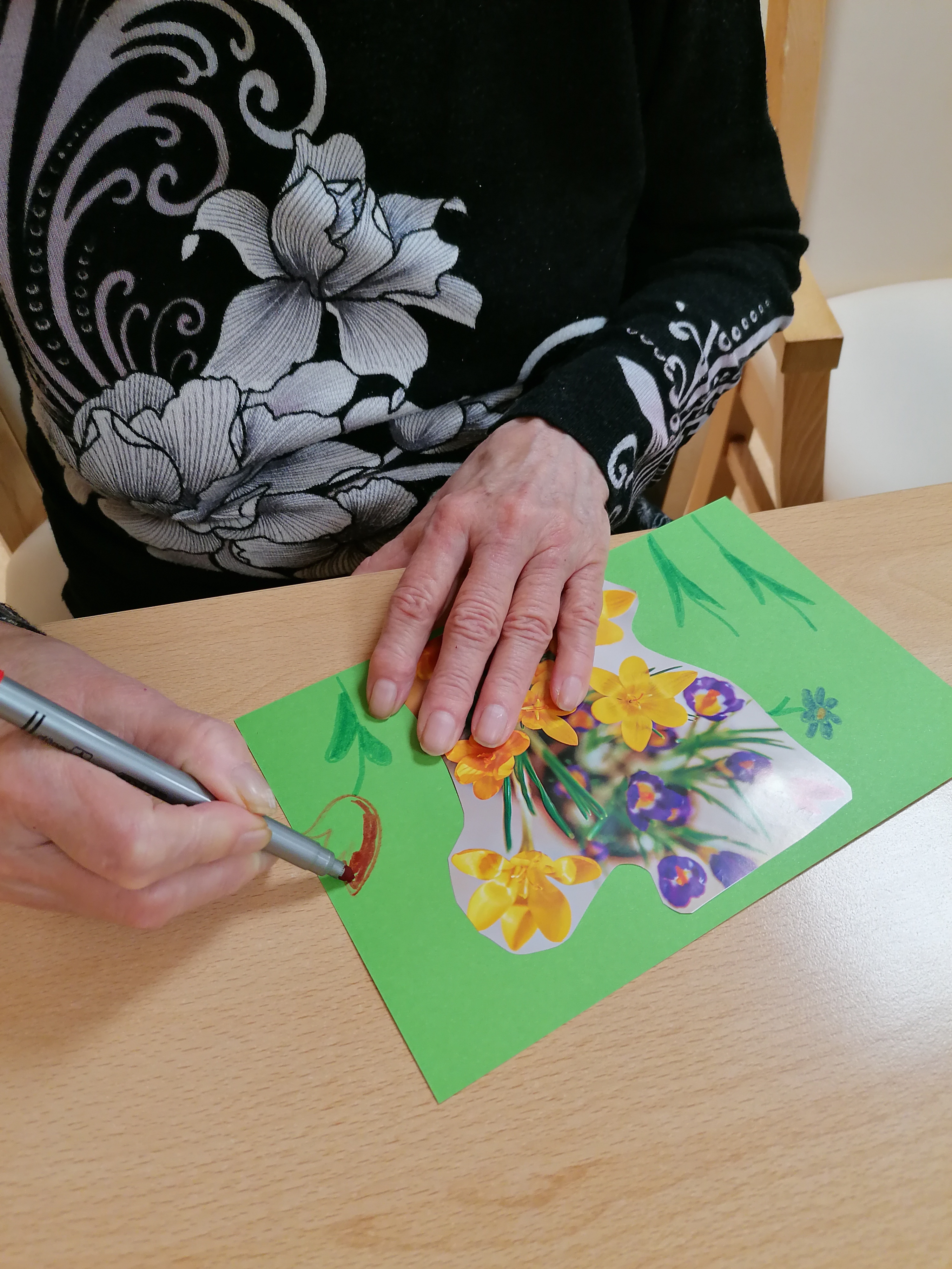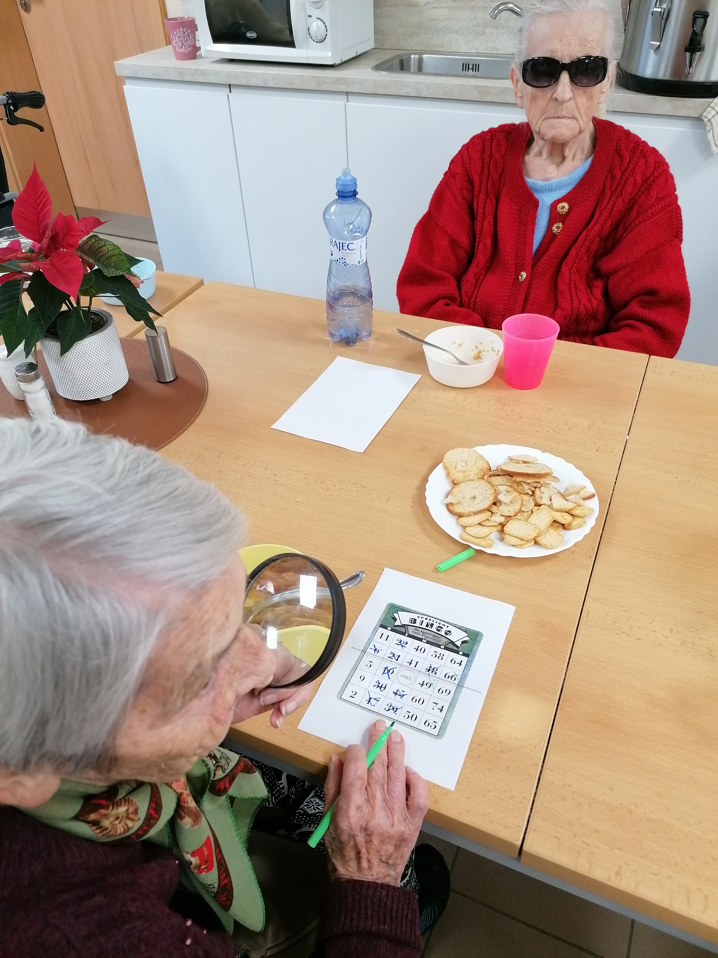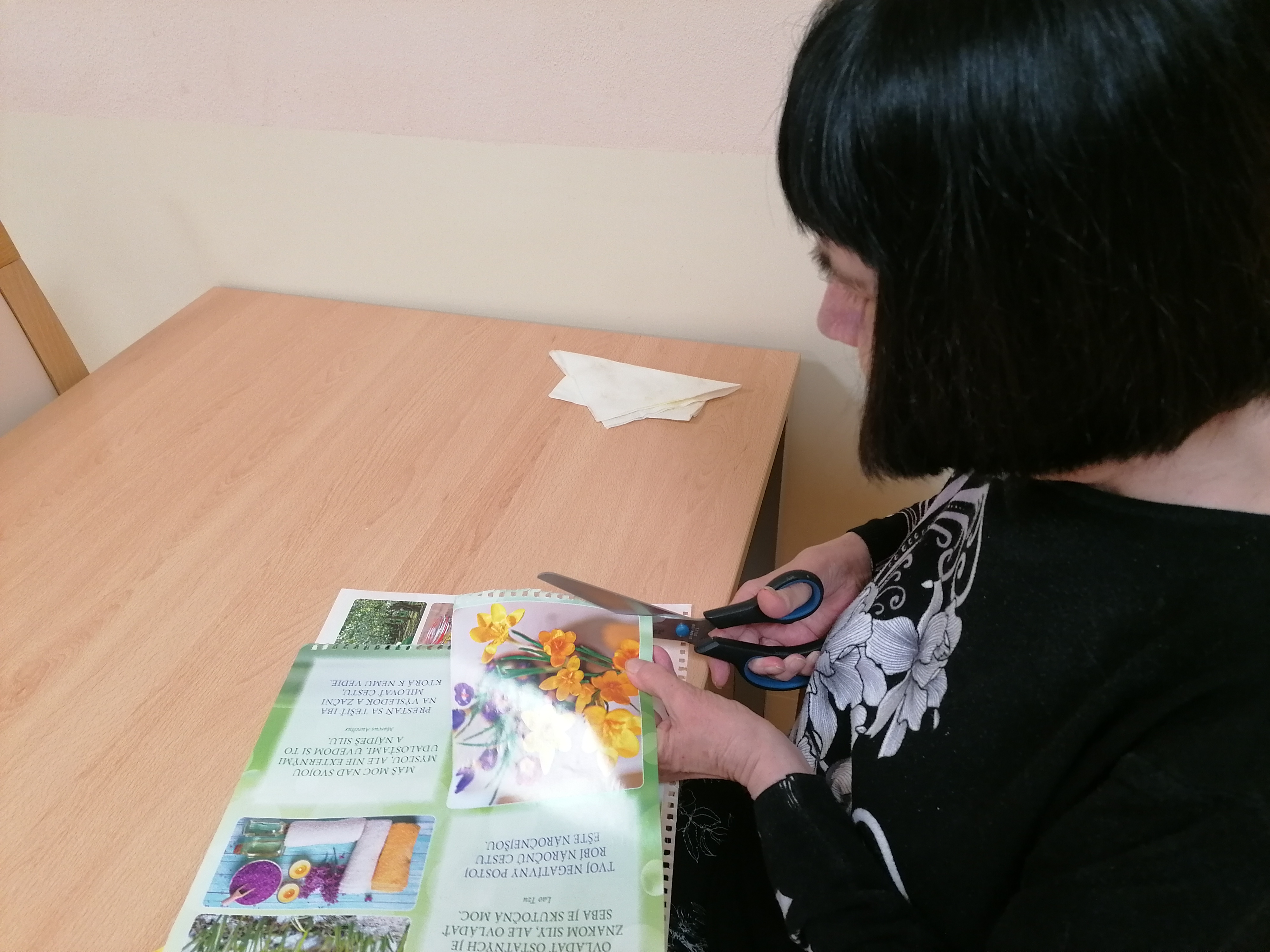Dni v našom zariadení plynú v pokojnej, priateľskej atmosfére, kde má každý svoje miesto. Tento týždeň sme si spoločný čas spríjemnili spoločenskými hrami : pexeso a bingo nám pomáhajú trénovať pamäť a zároveň prinášajú radosť z hry i malé víťazstvá, ktoré vždy potešia. Venovali sme sa aj jemnému pohybu s loptami. Jednoduché podávanie lopty v kruhu podporilo sústredenie a spoluprácu, zatiaľ čo uvoľňujúca masáž loptičkou príjemne prekrvila ruky a priniesla chvíle relaxu. Pokojné momenty sme vyplnili aj tvorbou koláží, kde mal každý priestor prejaviť svoju kreativitu vlastným tempom. Tieto spoločné stretnutia sú pre nás veľmi vzácne. Byť spolu, rozprávať sa, zdieľať úsmevy a cítiť spolupatričnosť dodáva silu do ďalších dní.