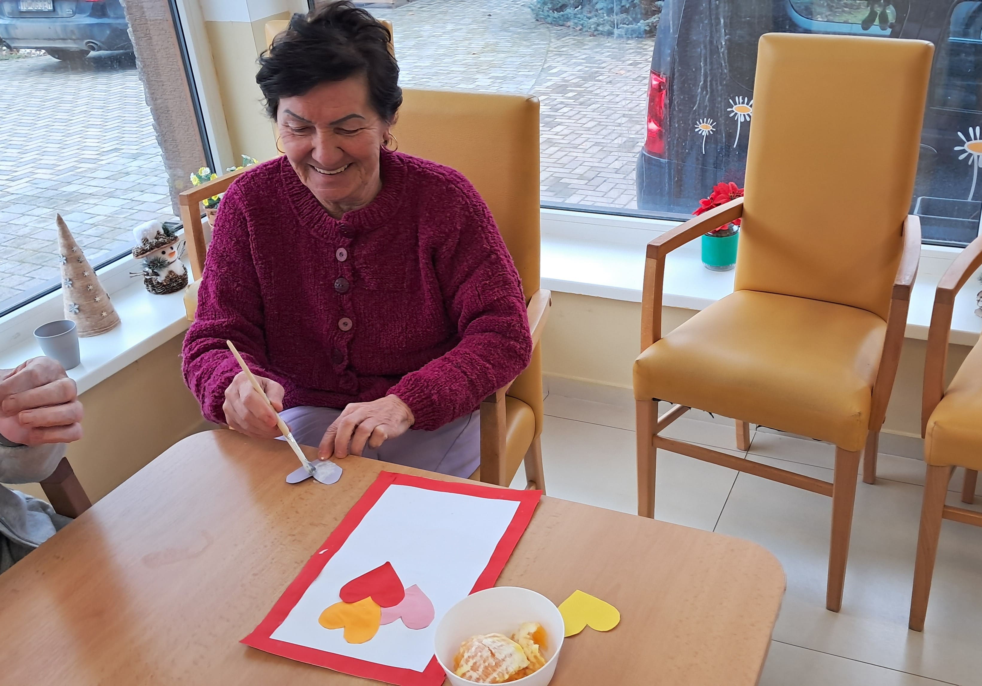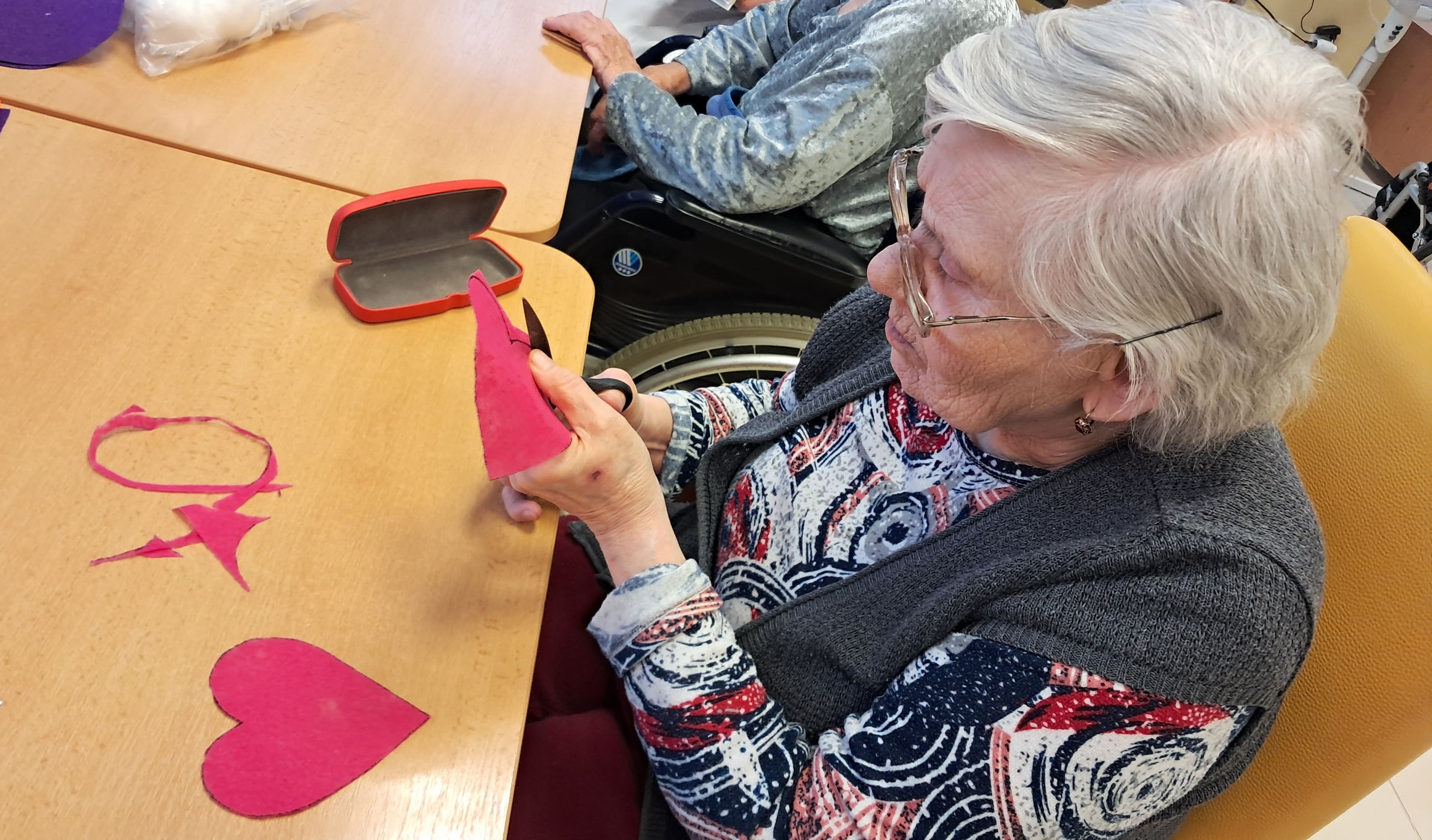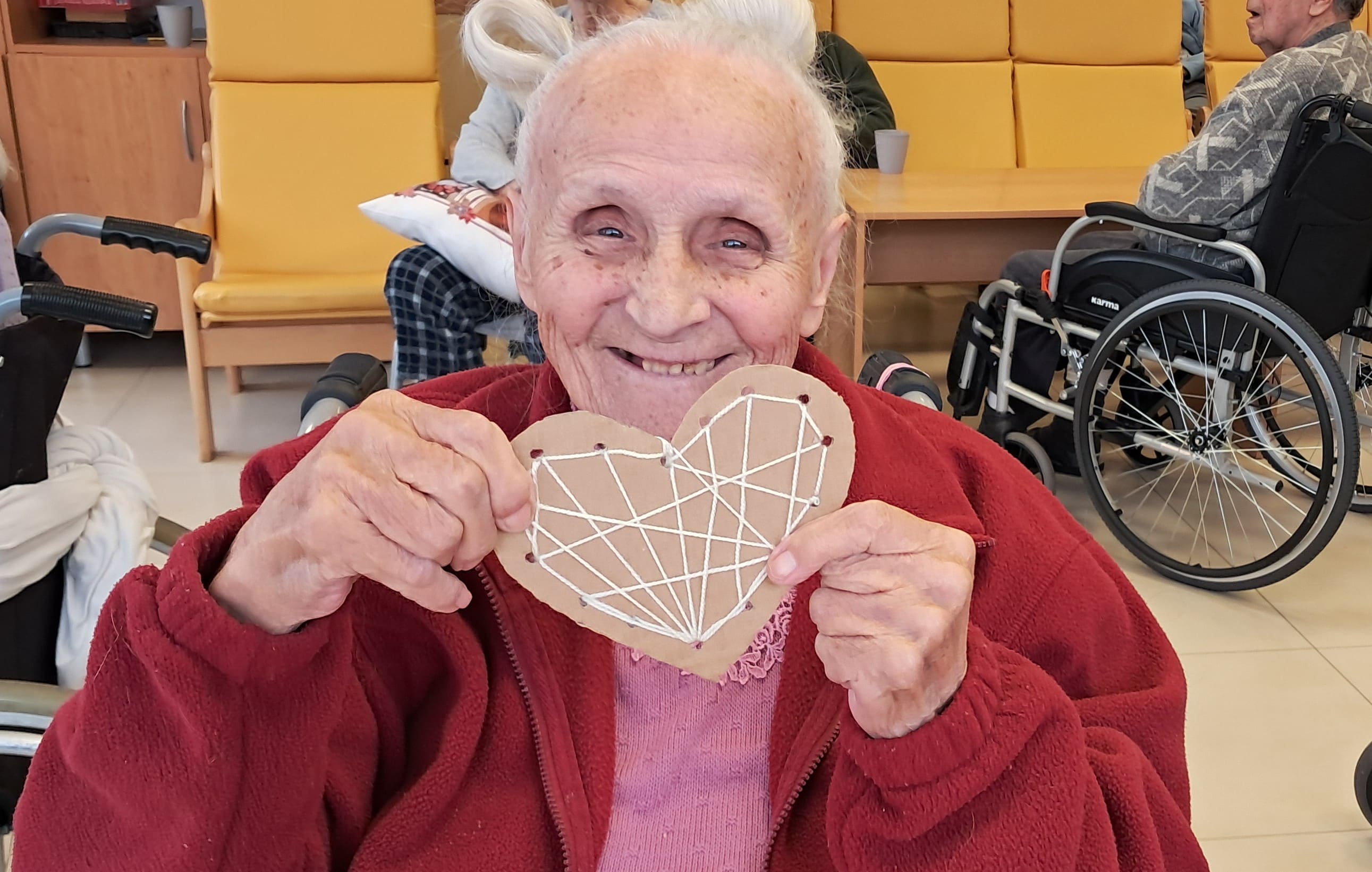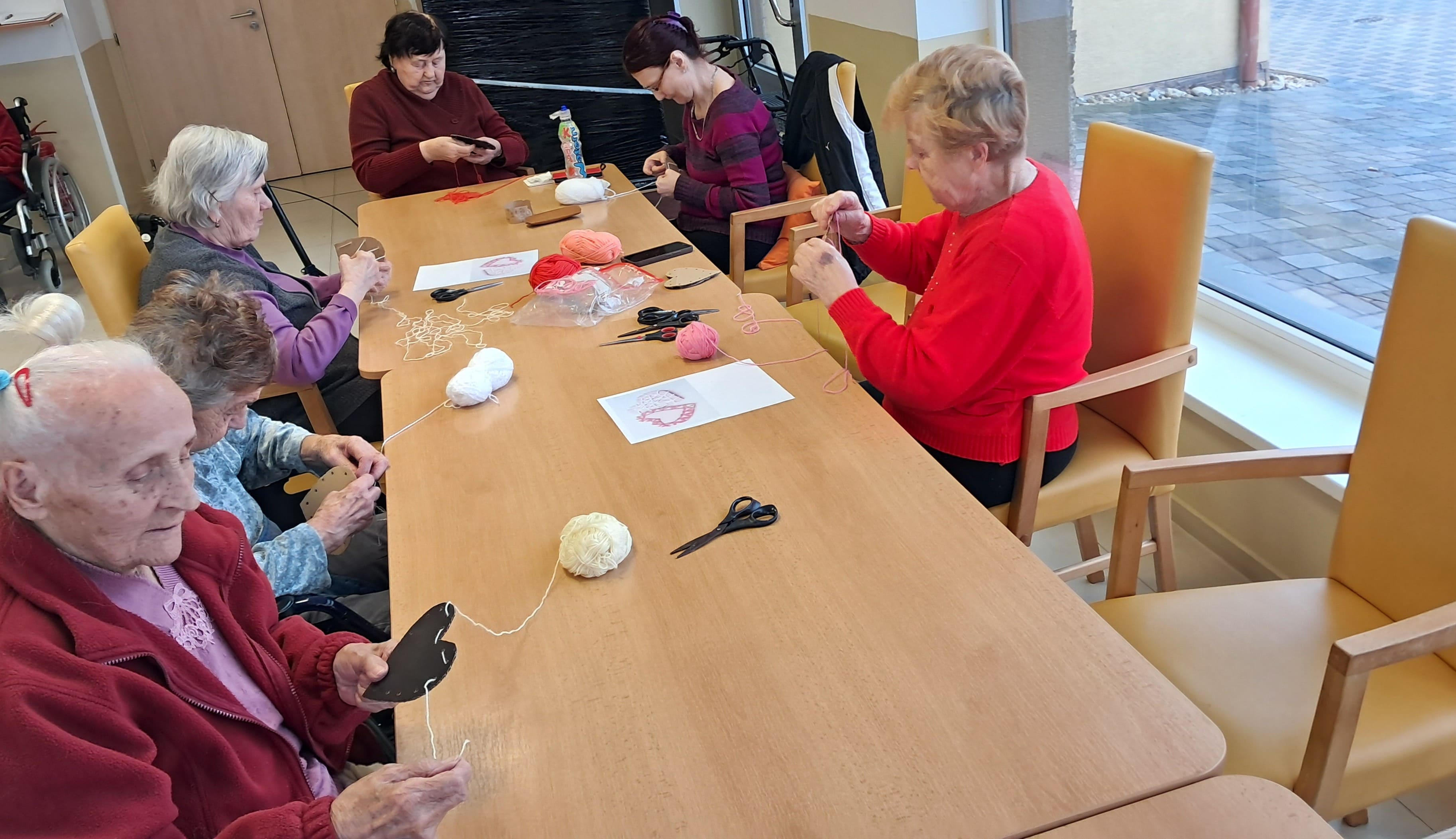 Počas týždňa sa naši prijímatelia sociálnych služieb s radosťou pripravovali na blížiaci sa Valentín. Tvorivá nálada a láskavá atmosféra sprevádzali každú aktivitu. Z farebného papiera vznikali veselé kytice zo srdiečok a nechýbalo ani šitie látkových srdiečok, ktoré si účastníci s veľkou trpezlivosťou a kreativitou zdobili podľa vlastných predstáv. Pri tvorbe kartónových srdiečok si zároveň precvičovali jemnú motoriku, keď ich vyplietali farebnými nitkami. Veľký úspech mali aj srdiečka z krepového papiera na paličke, ktoré rozžiarili naše priestory. Každý výrobok bol jedinečný – presne tak, ako ľudia, ktorí ho vytvorili. Tieto chvíle neboli len o tvorení, ale najmä o radosti, spolupatričnosti a zdieľaní pekných momentov. Valentínska atmosféra u nás dýcha láskou už teraz.