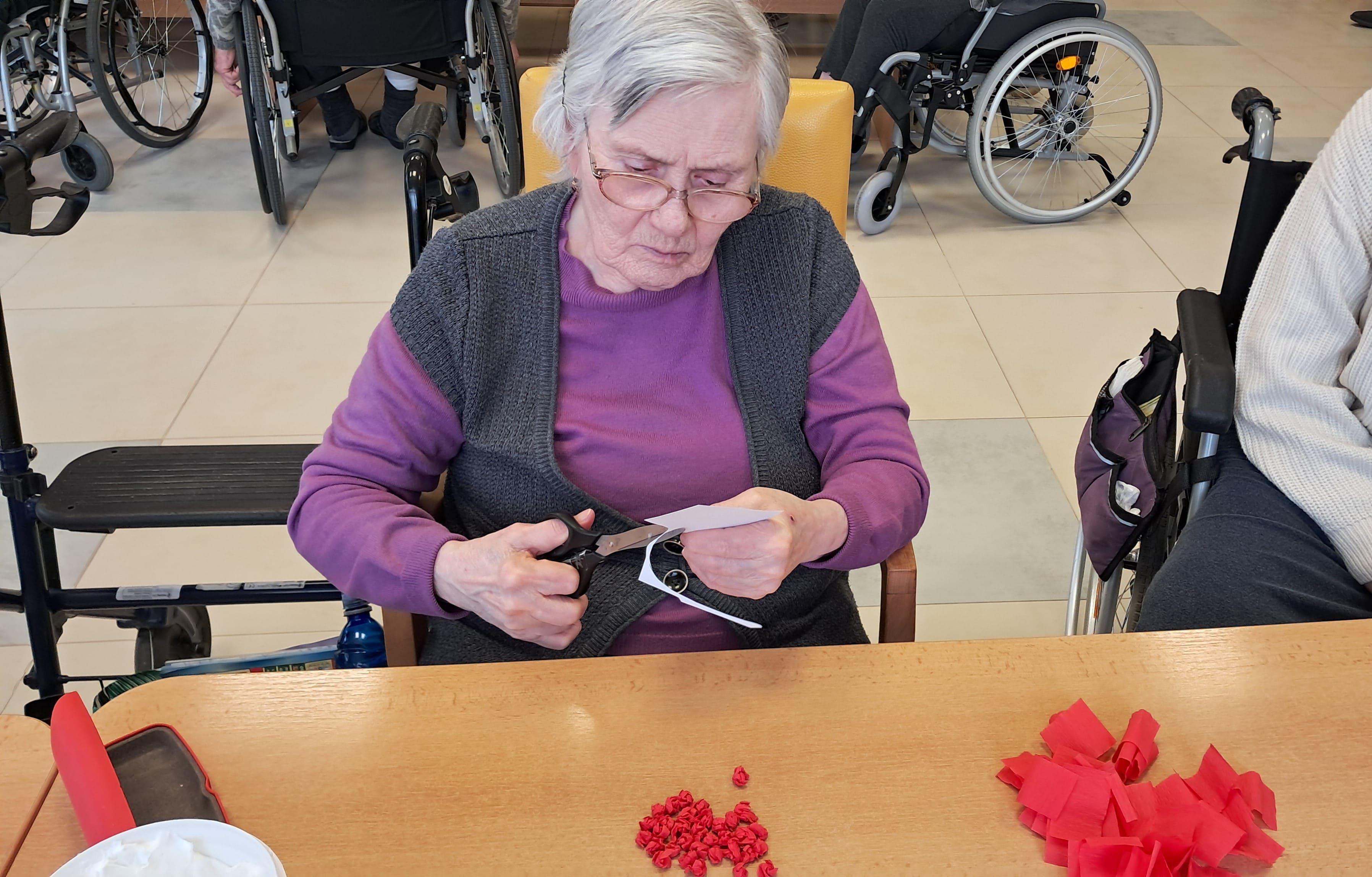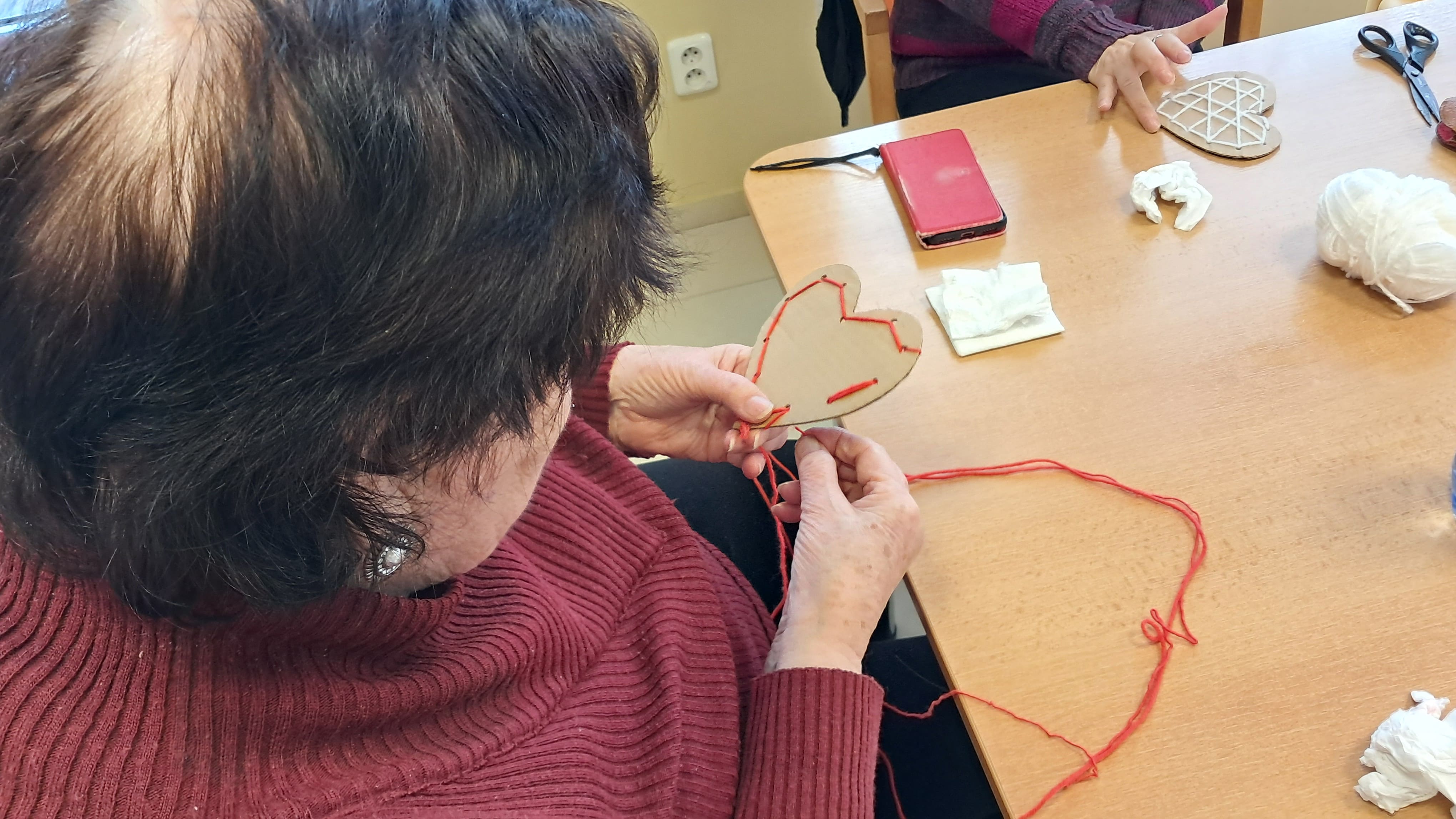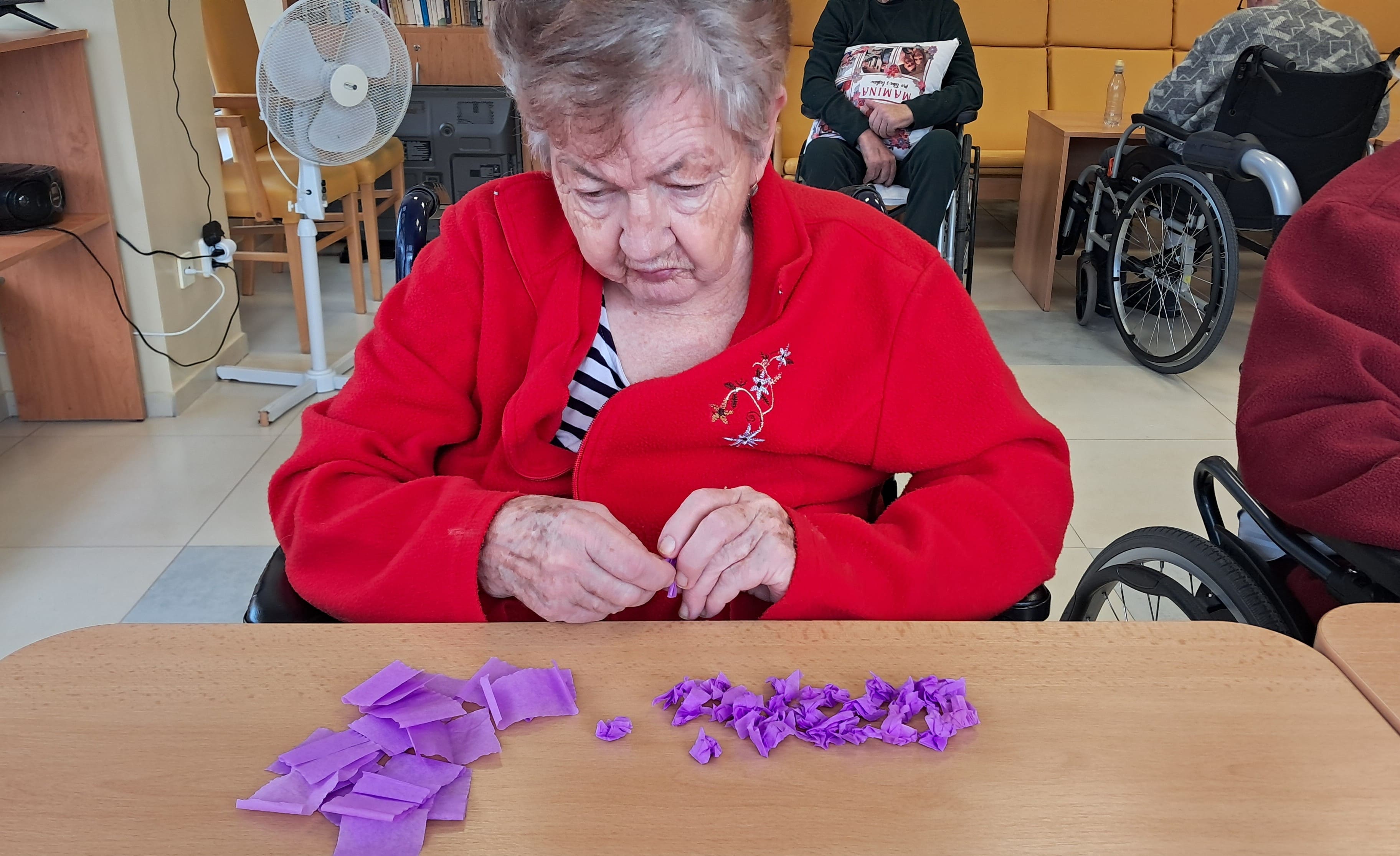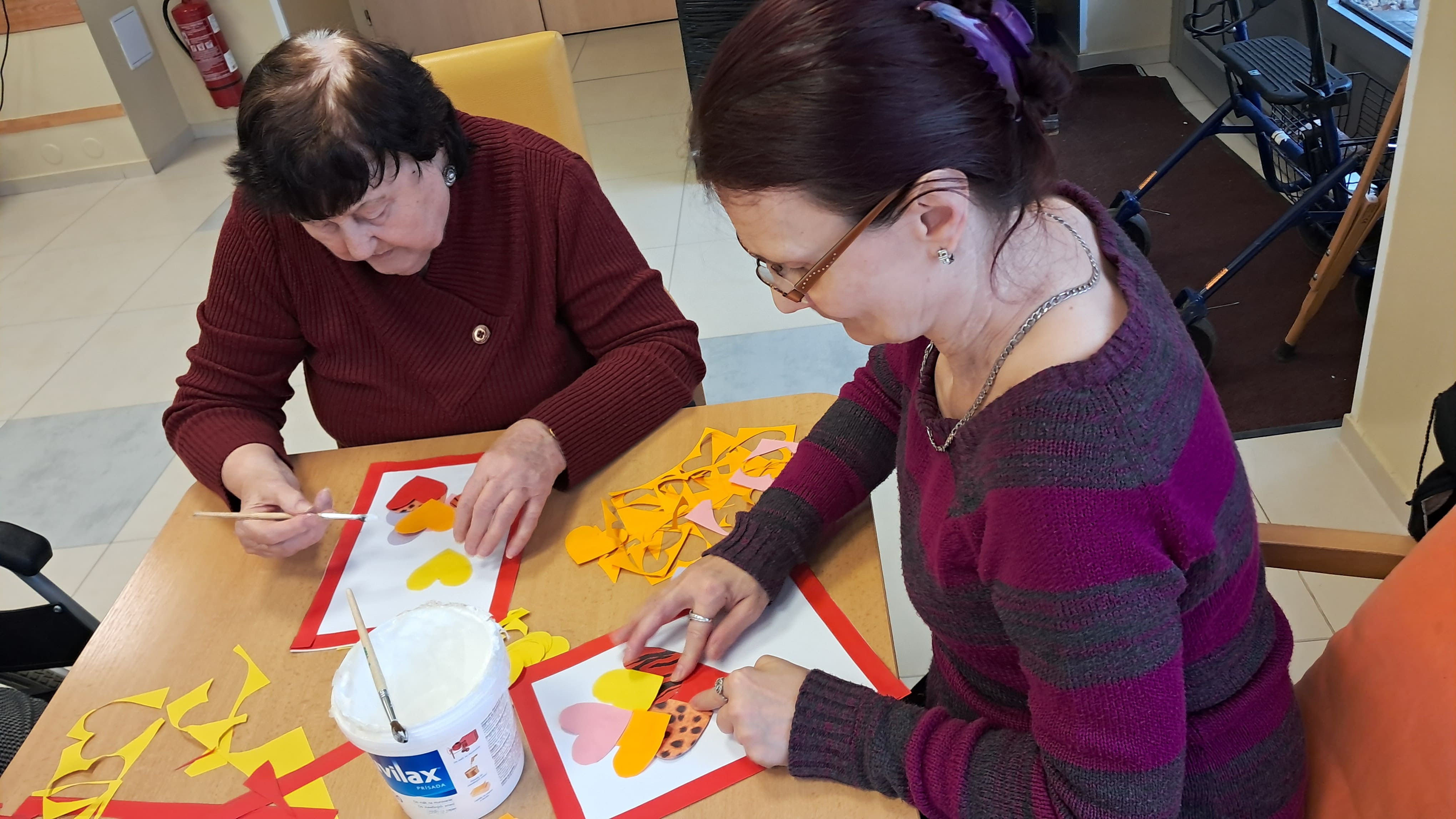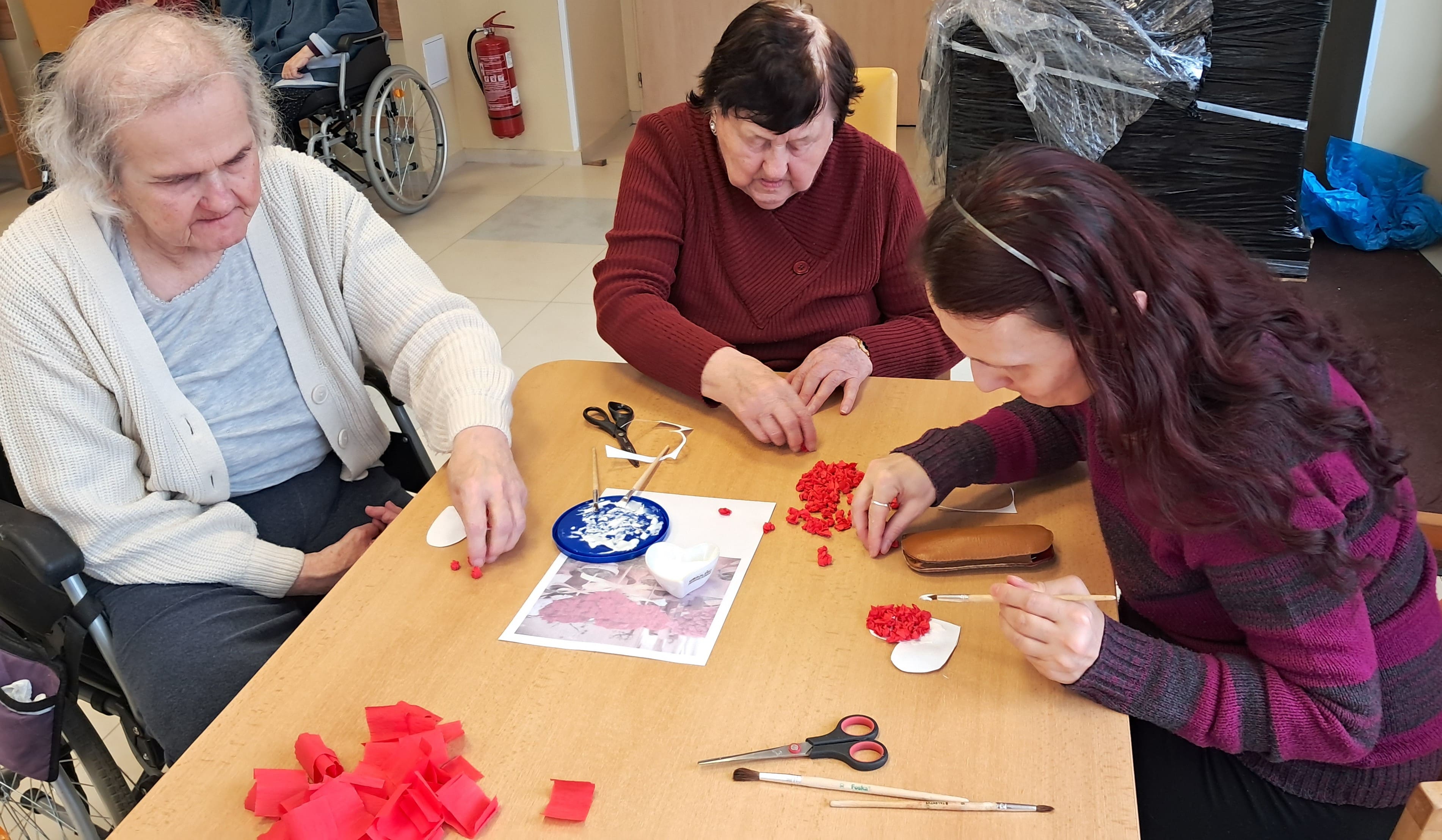 Počas týždňa sa naši prijímatelia sociálnych služieb s radosťou pripravovali na blížiaci sa Valentín. Tvorivá nálada a láskavá atmosféra sprevádzali každú aktivitu. Z farebného papiera vznikali veselé kytice zo srdiečok a nechýbalo ani šitie látkových srdiečok, ktoré si účastníci s veľkou trpezlivosťou a kreativitou zdobili podľa vlastných predstáv. Pri tvorbe kartónových srdiečok si zároveň precvičovali jemnú motoriku, keď ich vyplietali farebnými nitkami. Veľký úspech mali aj srdiečka z krepového papiera na paličke, ktoré rozžiarili naše priestory. Každý výrobok bol jedinečný – presne tak, ako ľudia, ktorí ho vytvorili. Tieto chvíle neboli len o tvorení, ale najmä o radosti, spolupatričnosti a zdieľaní pekných momentov. Valentínska atmosféra u nás dýcha láskou už teraz.