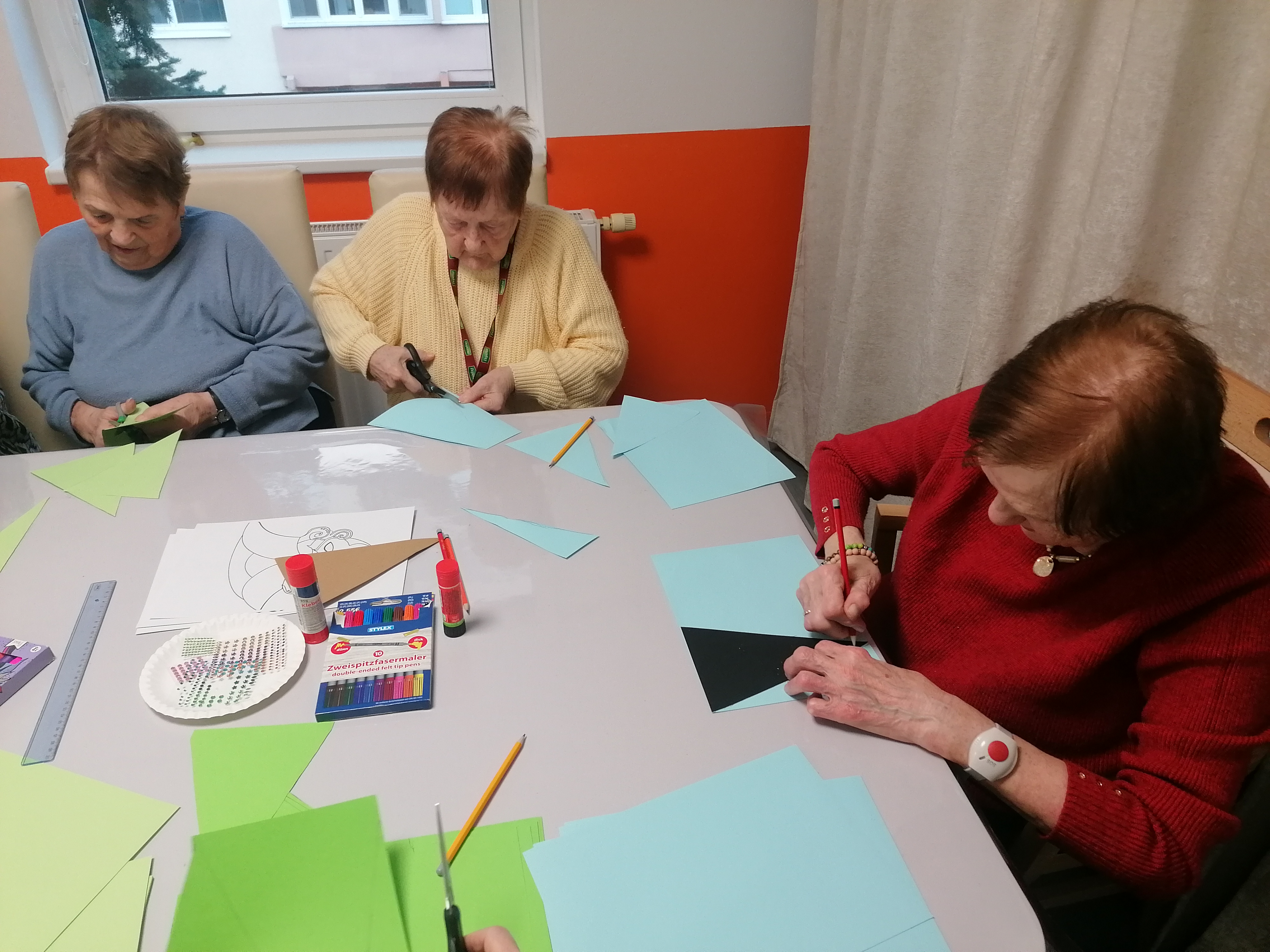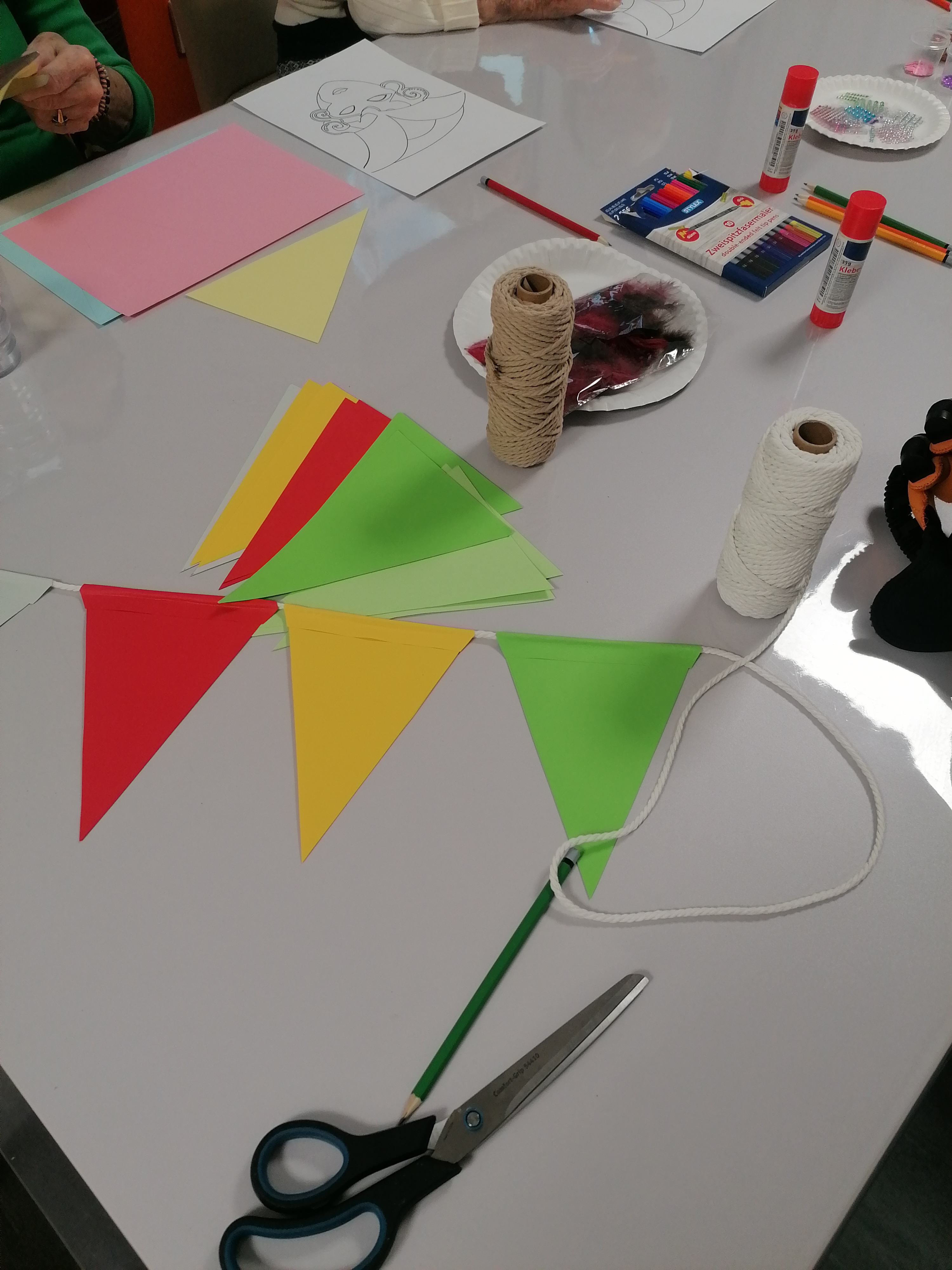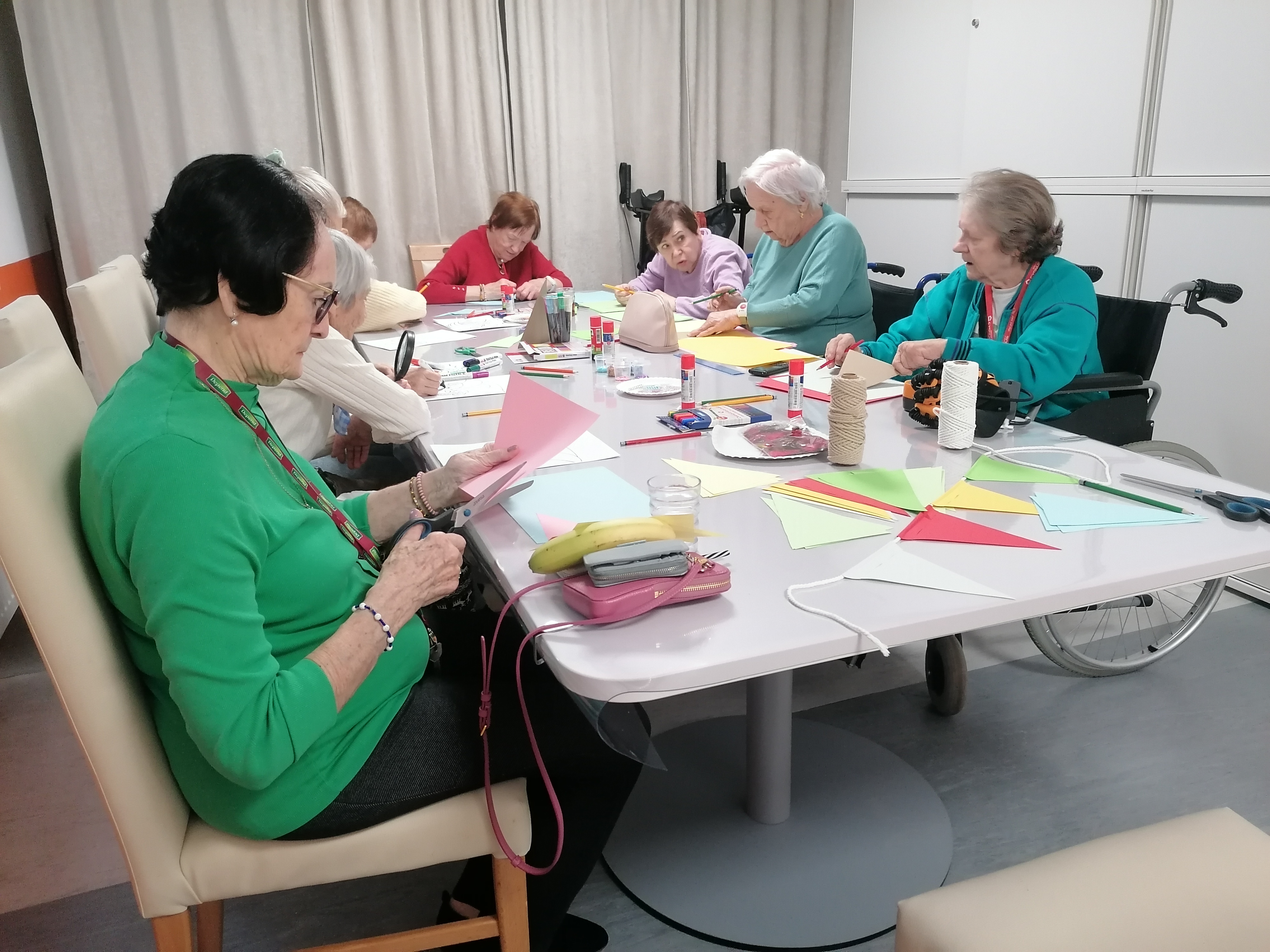 Tento týždeň sme v našom zariadení odštartovali prípravy na fašiangy kreatívnou dielňou. Seniorky sa s radosťou pustili do výroby vlajkových girland, ktoré sú ideálnou aktivitou na precvičenie jemnej motoriky, sústredenia aj estetického cítenia. Pri tvorení sme kládli dôraz na precíznosť a trpezlivosť, preto budeme v strihaní a lepení pokračovať aj v nasledujúcich dňoch. Podobné aktivity nielen skrášľujú naše priestory, ale predovšetkým posilňujú sociálne väzby, spoluprácu a prinášajú radosť zo spoločného tvorenia.