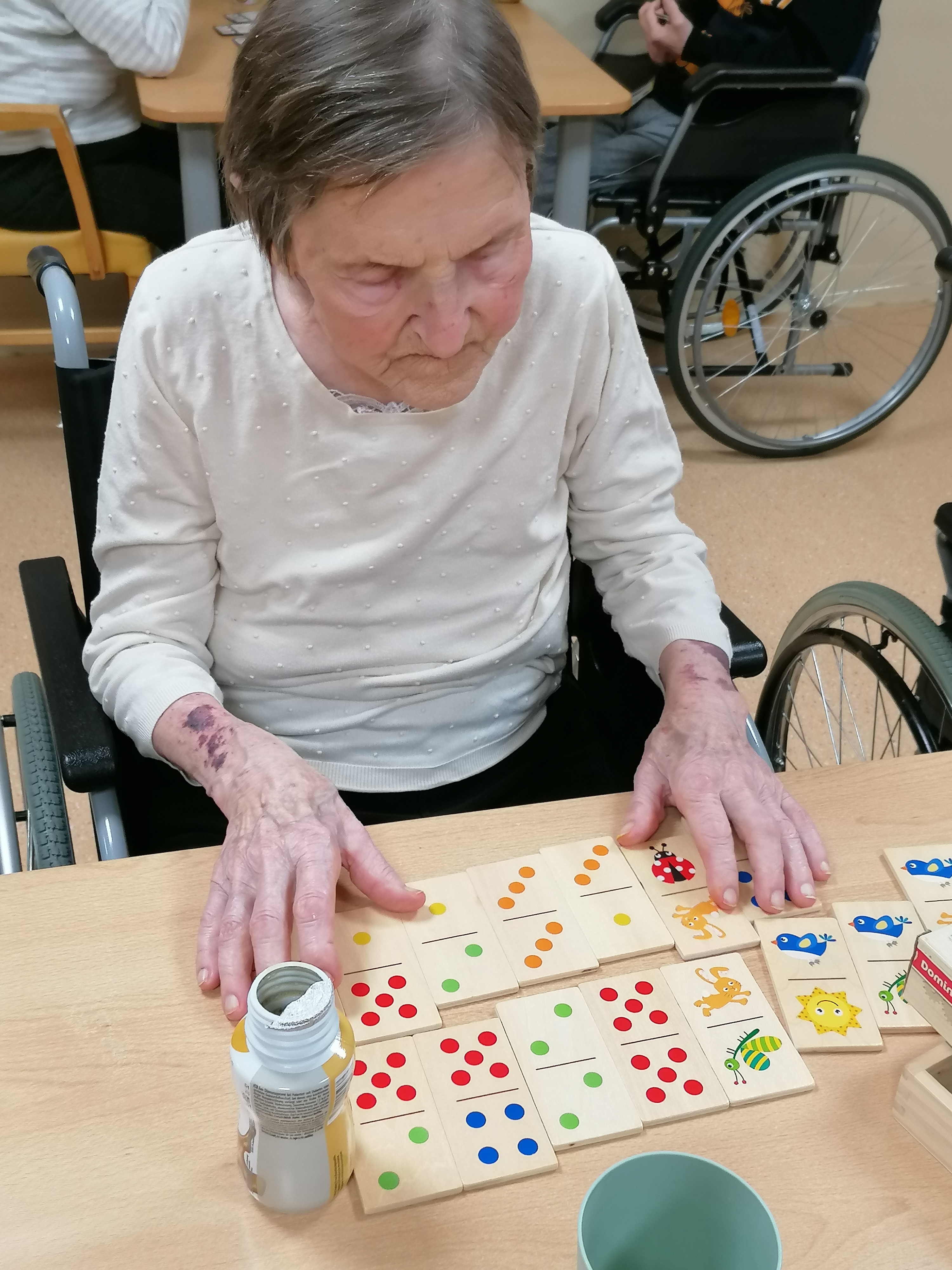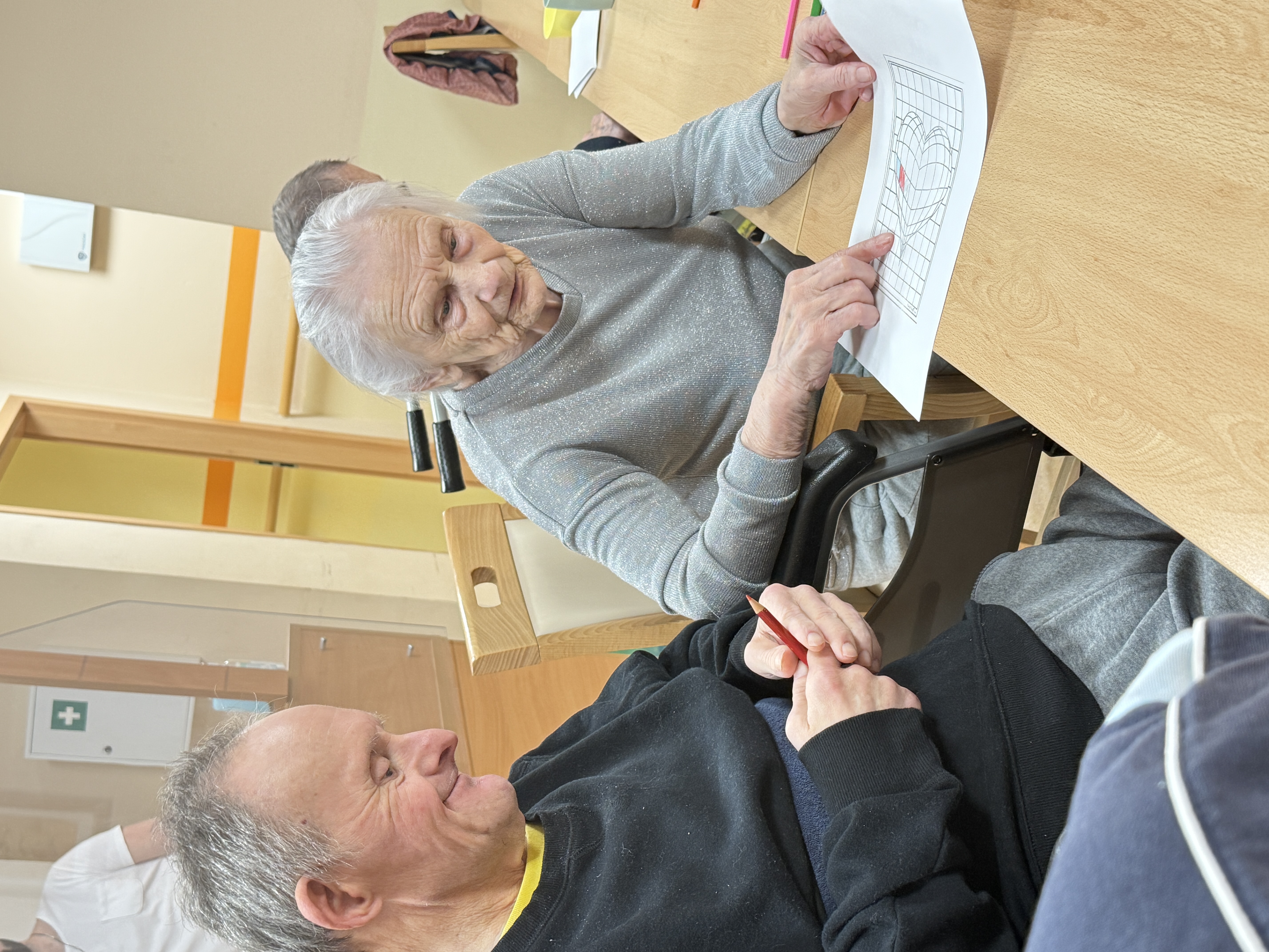 Tento týždeň sme s klientmi trénovali nielen ruky, ale aj mozog. Hra s kolkami sa stala zábavnou formou rehabilitácie – precvičovali sme koordináciu oko–ruka, stabilitu, odhad vzdialenosti aj koncentráciu. Pri tvorivých aktivitách sme podporovali jemnú motoriku, správny úchop, presnosť pohybu a trpezlivosť. Strihanie, lepenie a vyfarbovanie zároveň stimulujú pamäť a pozornosť. Pokračovali sme aj pracovnými listami zameranými na logické myslenie, rozlišovanie tvarov a farieb či orientáciu v priestore. Precvičovali sme grafomotoriku, sústredenie aj vytrvalosť pri dokončení úlohy. V skupine sme podporovali komunikáciu, vzájomnú motiváciu a radosť z pohybu – pretože aj jednoduchá aktivita s balónmi dokáže priniesť úsmev, rozhýbať telo a posilniť spoločného ducha.