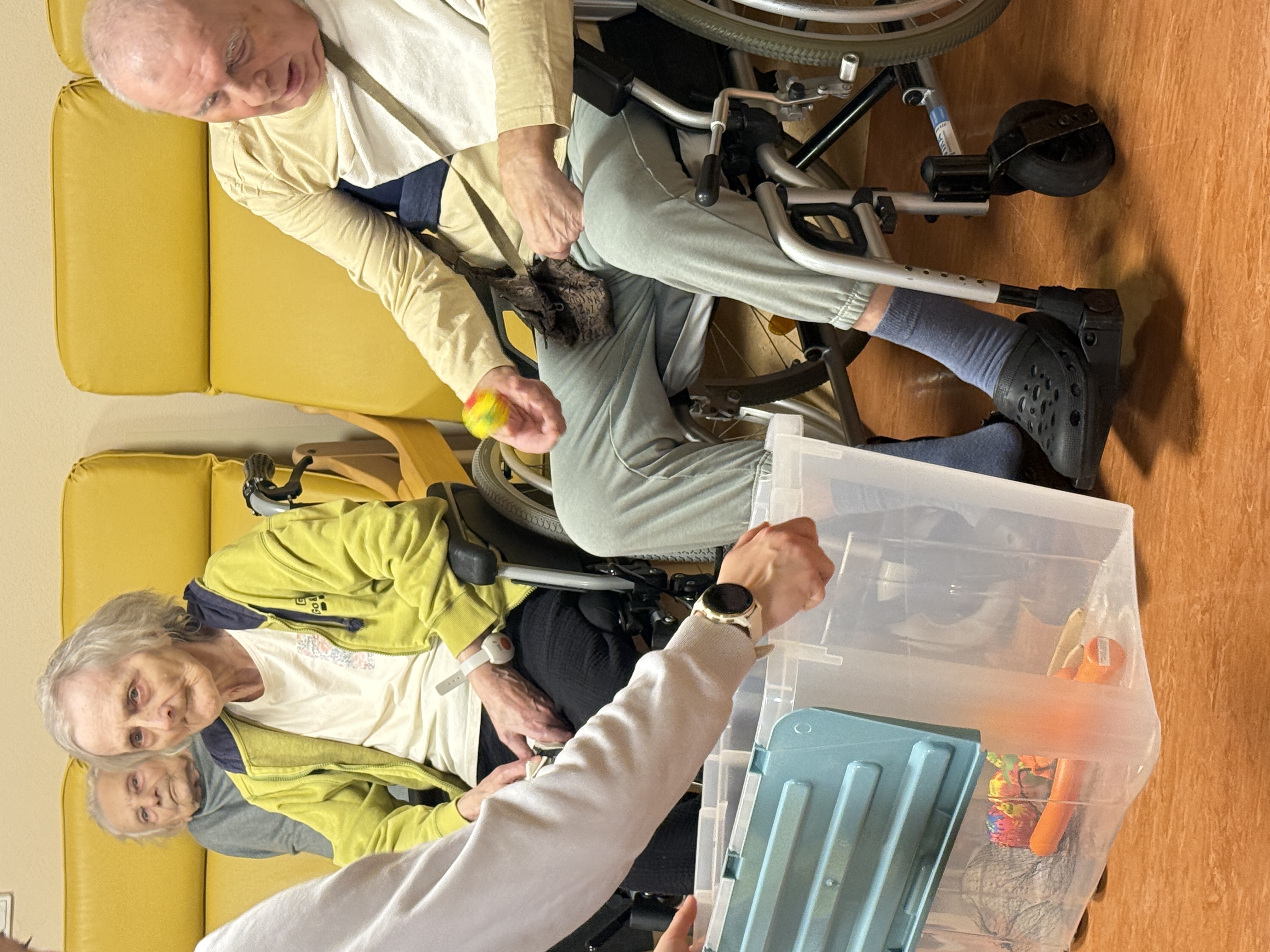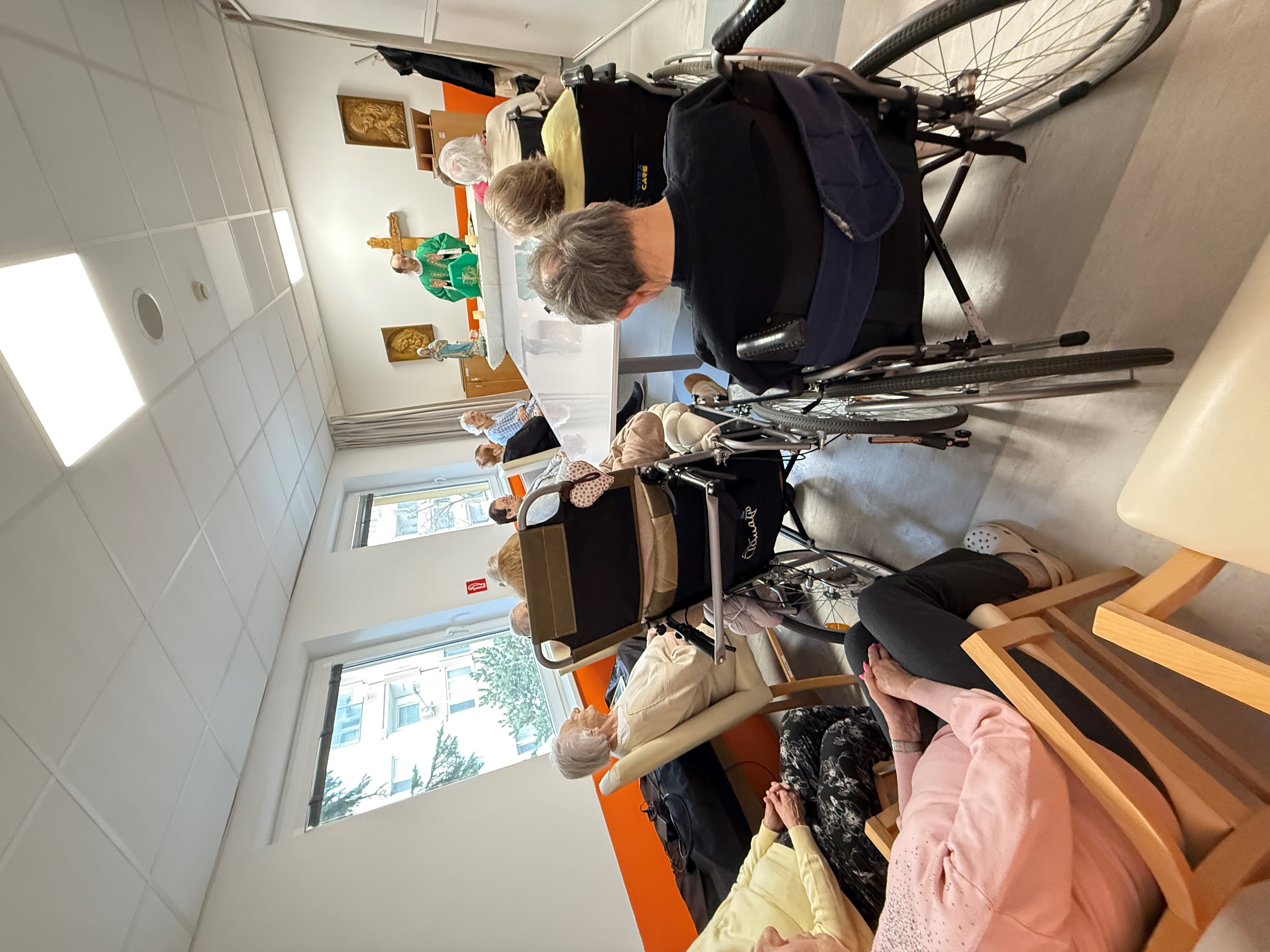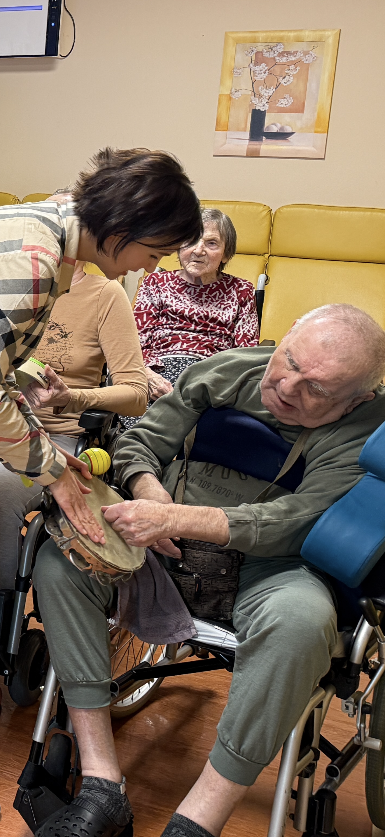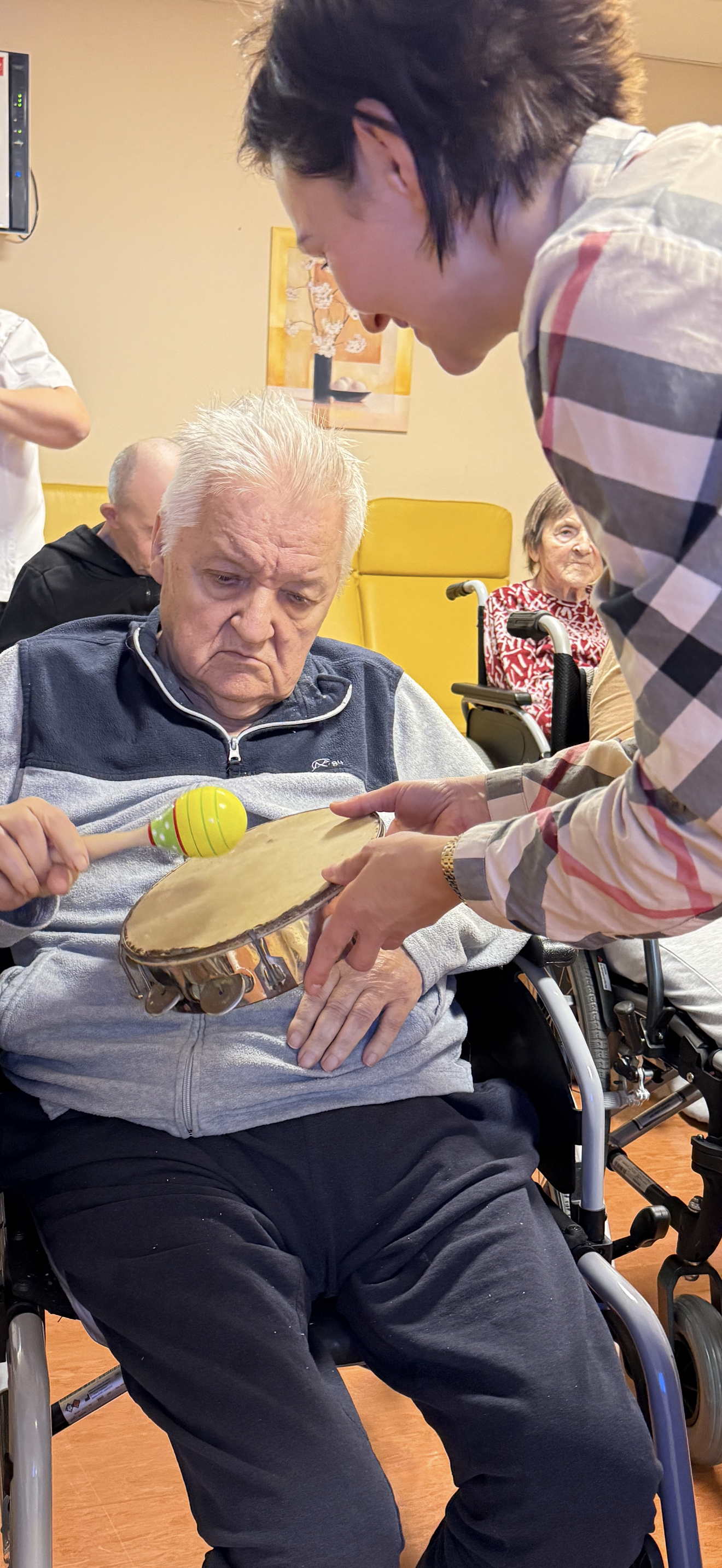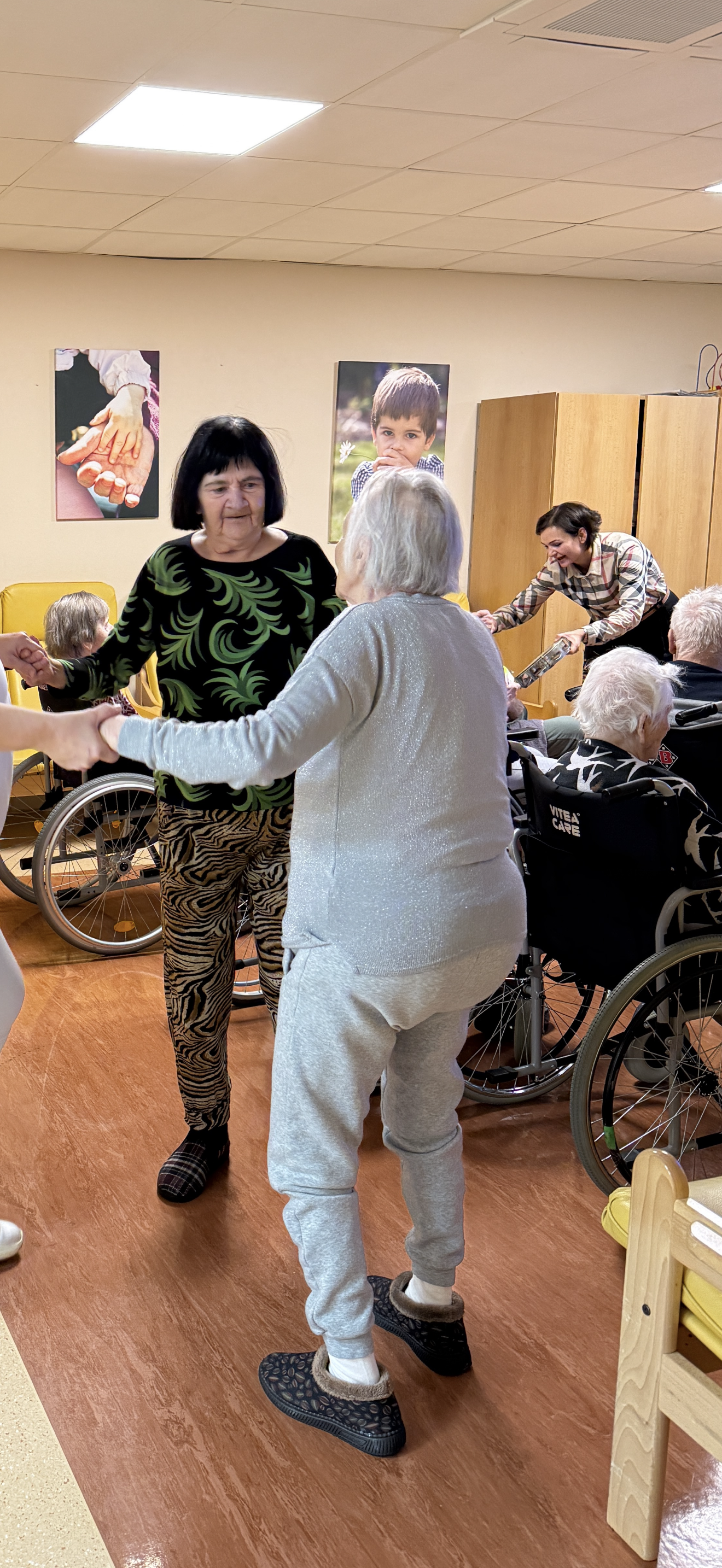 Uplynulý týždeň bol v našom zariadení naplnený rôznorodými aktivizačnými činnosťami, zameranými na podporu psychickej pohody, emocionálneho prežívania a sociálnej interakcie prijímateľov sociálnej služby. Canisterapia priniesla seniorom množstvo pozitívnych emócií, radosti a láskavého kontaktu, ktorý prirodzene prispieva k znižovaniu napätia a podpore emocionálnej stability. V rámci tanečno-muzikoterapie mali možnosť zapojiť sa do spevu, pohybového prejavu a hry na rytmických nástrojoch. Aktivita podporila ich aktivizáciu, sebavyjadrenie a pozitívne prežívanie v skupine. Prostredníctvom prvkov bábikoterapie bol vytvorený bezpečný priestor na vyjadrenie potrieb nehy a starostlivosti, ako aj na vybavovanie spomienok. Táto forma práce podporuje emocionálne prežívanie a pocit istoty. Súčasťou týždňa bola aj arteterapia realizovaná formou výtvarnej činnosti. Pri vyfarbovaní tematických obrazov seniorky rozvíjali jemnú motoriku, koncentráciu a tvorivosť a zároveň mali možnosť neverbálne vyjadriť svoje emócie a vnútorné prežívanie. Aktivita prispela k uvoľneniu napätia a celkovej psychickej pohode. Týždeň sme zakončili spoločnou účasťou na svätej omši, ktorá poskytla priestor na stíšenie, rozjímanie a naplnenie duchovných potrieb. Prispela k posilneniu vnútornej rovnováhy, pocitu pokoja a duchovnej podpory. Teší nás, že prostredníctvom týchto aktivít môžeme komplexne podporovať kvalitu života prijímateľov sociálnej služby, ich psychickú pohodu a zmysluplné trávenie voľného času.