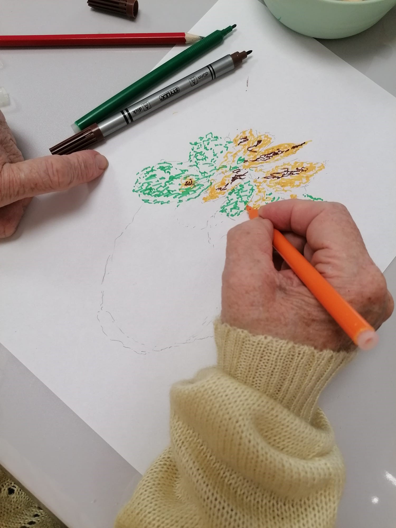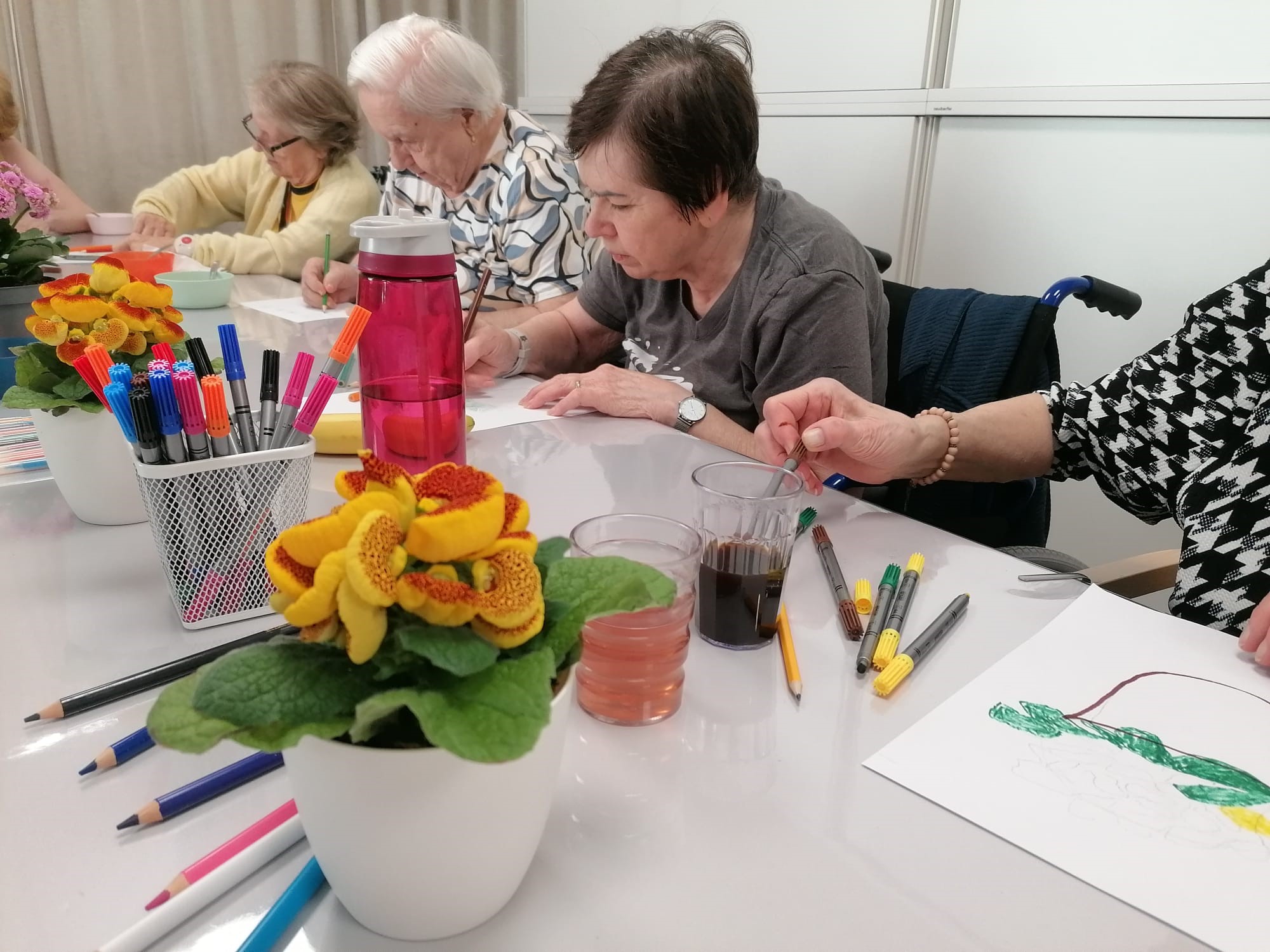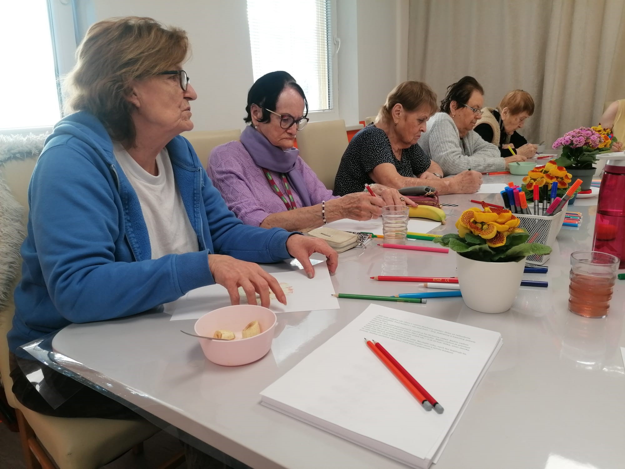 V našej dnešnej tvorivej dielničke sa na chvíľu zastavil čas. Atmosféra bola tak pokojná a tvorivá, že sme si ju symbolicky premenovali na náš vlastný ateliér. Bez zhonu a bez snahy o dokonalosť – len s čistou radosťou z tvorenia. Dnes sme nekreslili len kvety, učili sme sa ich naozaj vidieť. Každý lístok, smer stonky či lúč svetla si našiel svoje jedinečné miesto na papieri. Vznikali tak krásne obrázky plné farieb, fantázie a osobného vnímania. Boli to vzácne chvíle, keď ruka len pokojne nasleduje to, čo vidia oči, a papier sa postupne mení na malé umelecké dielo. Pozrite sa spolu s nami, ako sme dnes vdýchli život prázdnemu papieru.
