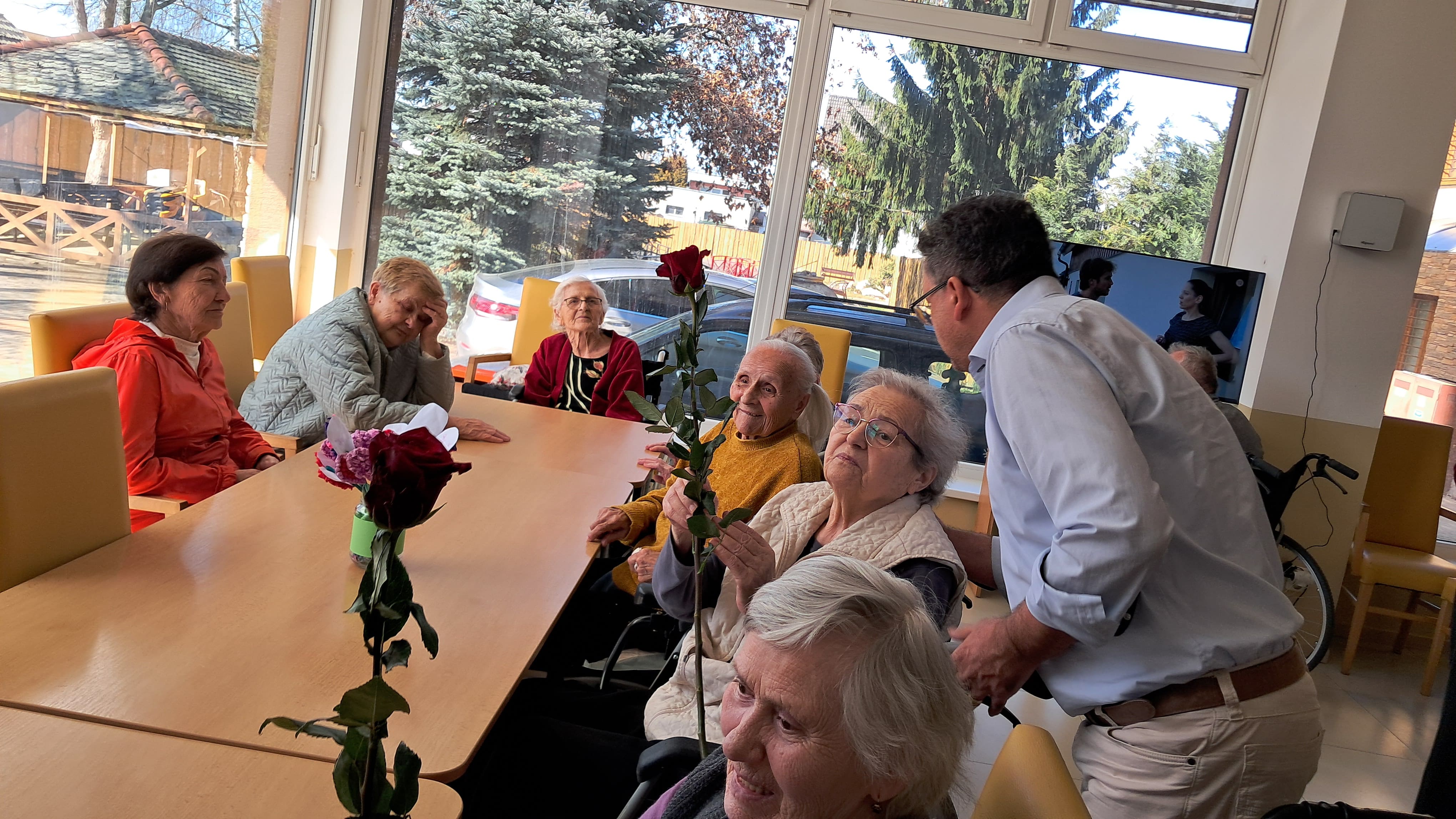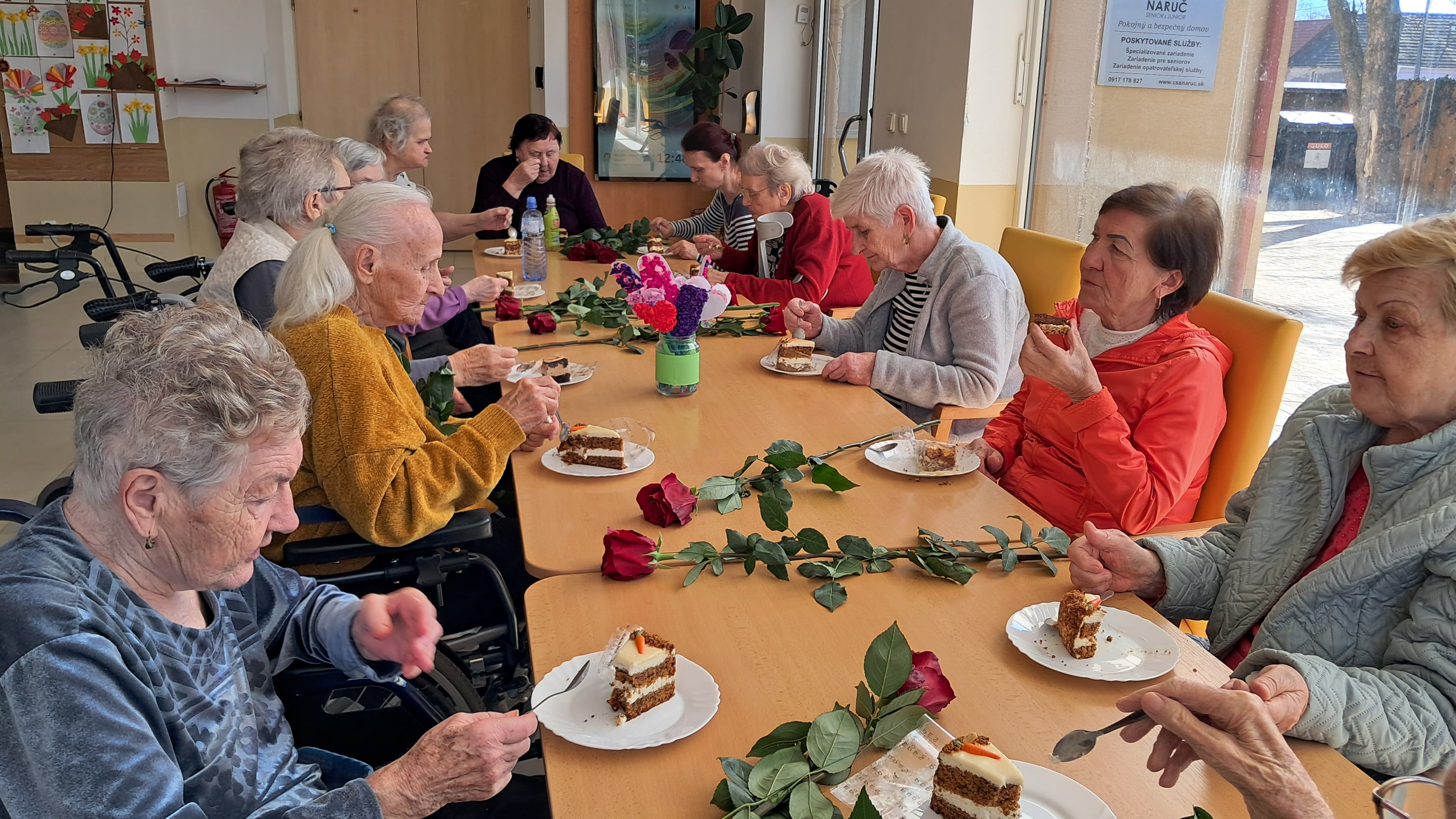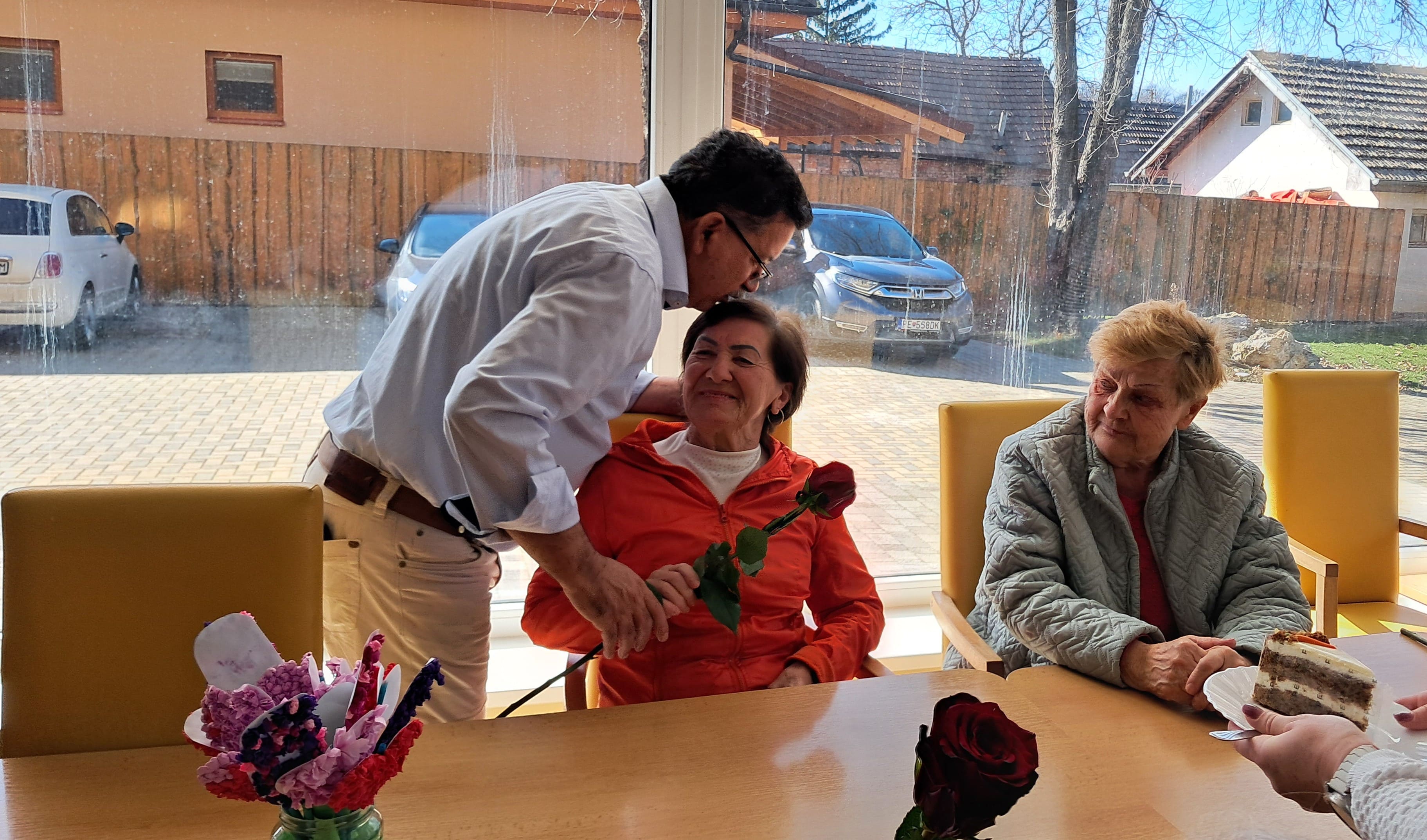 Pri príležitosti Medzinárodného dňa žien sme si dnes v našom zariadení pripomenuli tento krásny sviatok milou a srdečnou pozornosťou. Riaditeľ zariadenia potešil naše prijímateľky sociálnych služieb kvetom ruže – symbolom úcty, vďaky a obdivu ku všetkým ženám. Každá ruža vyčarila úsmev na tvári a spríjemnila spoločné chvíle plné radosti, rozhovorov a dobrej nálady. Sviatočnú atmosféru doplnil aj sladký zákusok, na ktorom si všetci s chuťou pochutili. Pri tejto príležitosti ďakujeme všetkým ženám za ich starostlivosť, trpezlivosť, obetavosť a veľké srdce. Prajeme im pevné zdravie, veľa spokojnosti, lásky a ešte mnoho krásnych dní naplnených pokojom a radosťou.