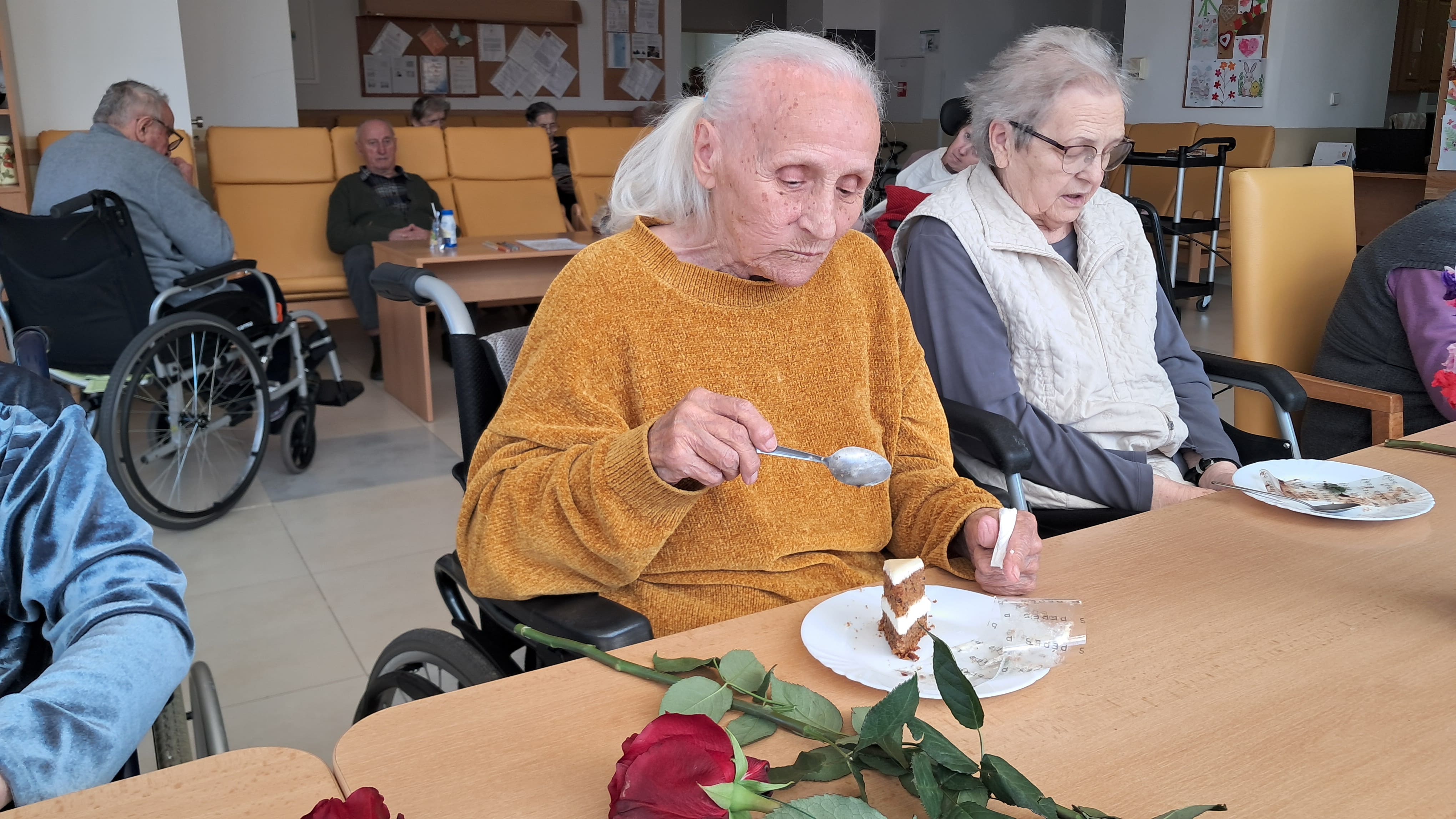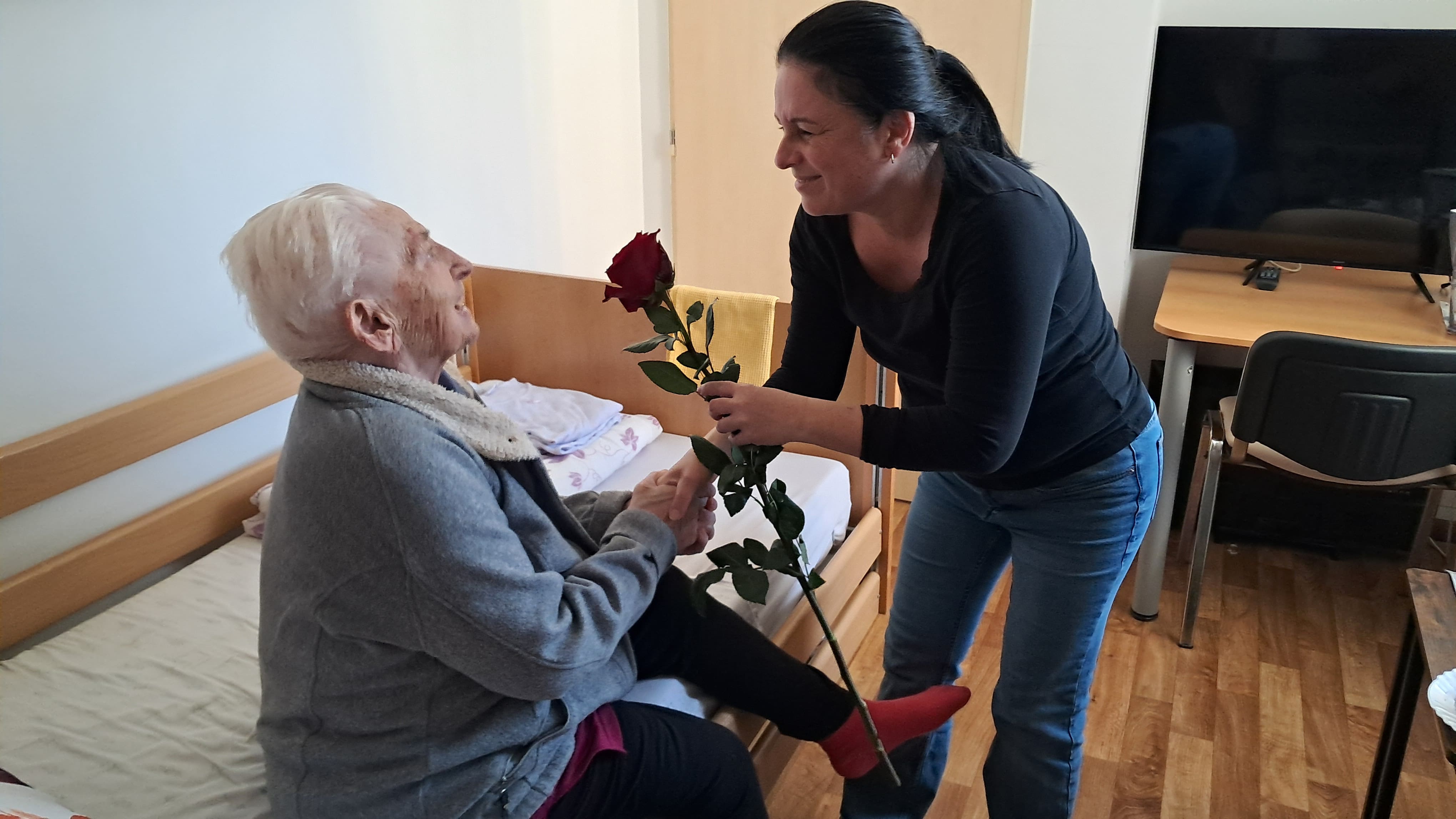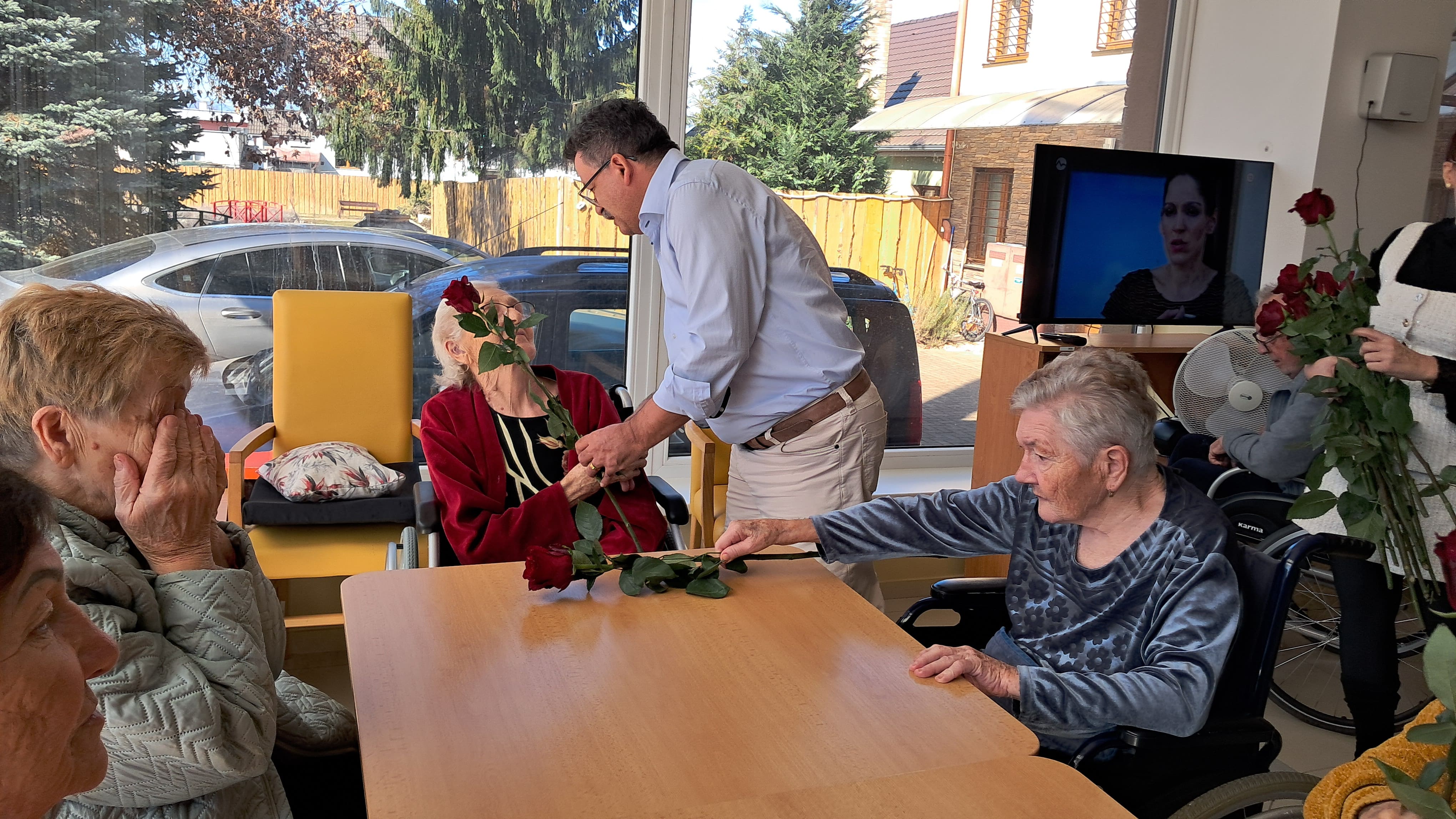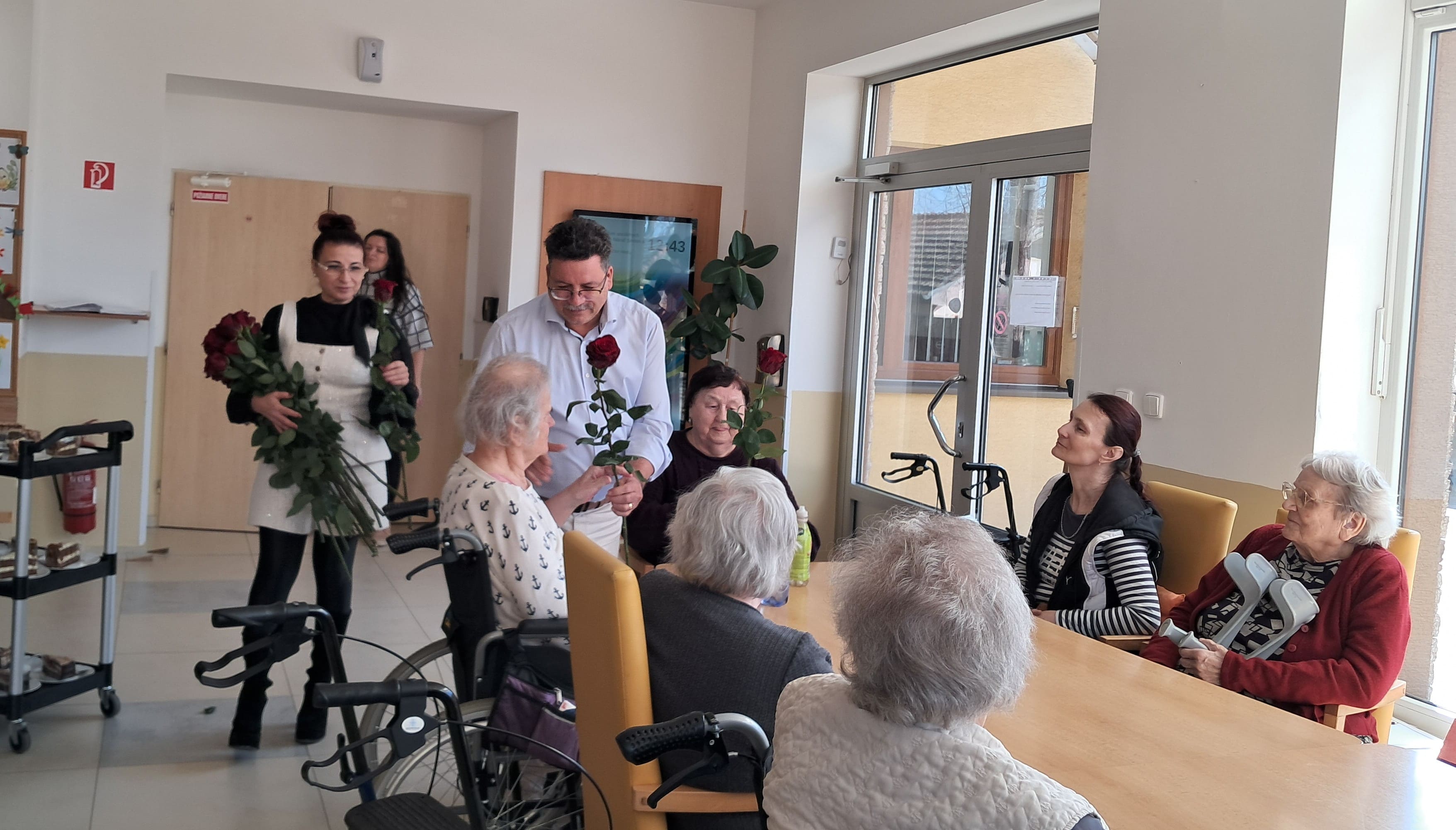 Pri príležitosti Medzinárodného dňa žien sme si dnes v našom zariadení pripomenuli tento krásny sviatok milou a srdečnou pozornosťou. Riaditeľ zariadenia potešil naše prijímateľky sociálnych služieb kvetom ruže – symbolom úcty, vďaky a obdivu ku všetkým ženám. Každá ruža vyčarila úsmev na tvári a spríjemnila spoločné chvíle plné radosti, rozhovorov a dobrej nálady. Sviatočnú atmosféru doplnil aj sladký zákusok, na ktorom si všetci s chuťou pochutili. Pri tejto príležitosti ďakujeme všetkým ženám za ich starostlivosť, trpezlivosť, obetavosť a veľké srdce. Prajeme im pevné zdravie, veľa spokojnosti, lásky a ešte mnoho krásnych dní naplnených pokojom a radosťou.