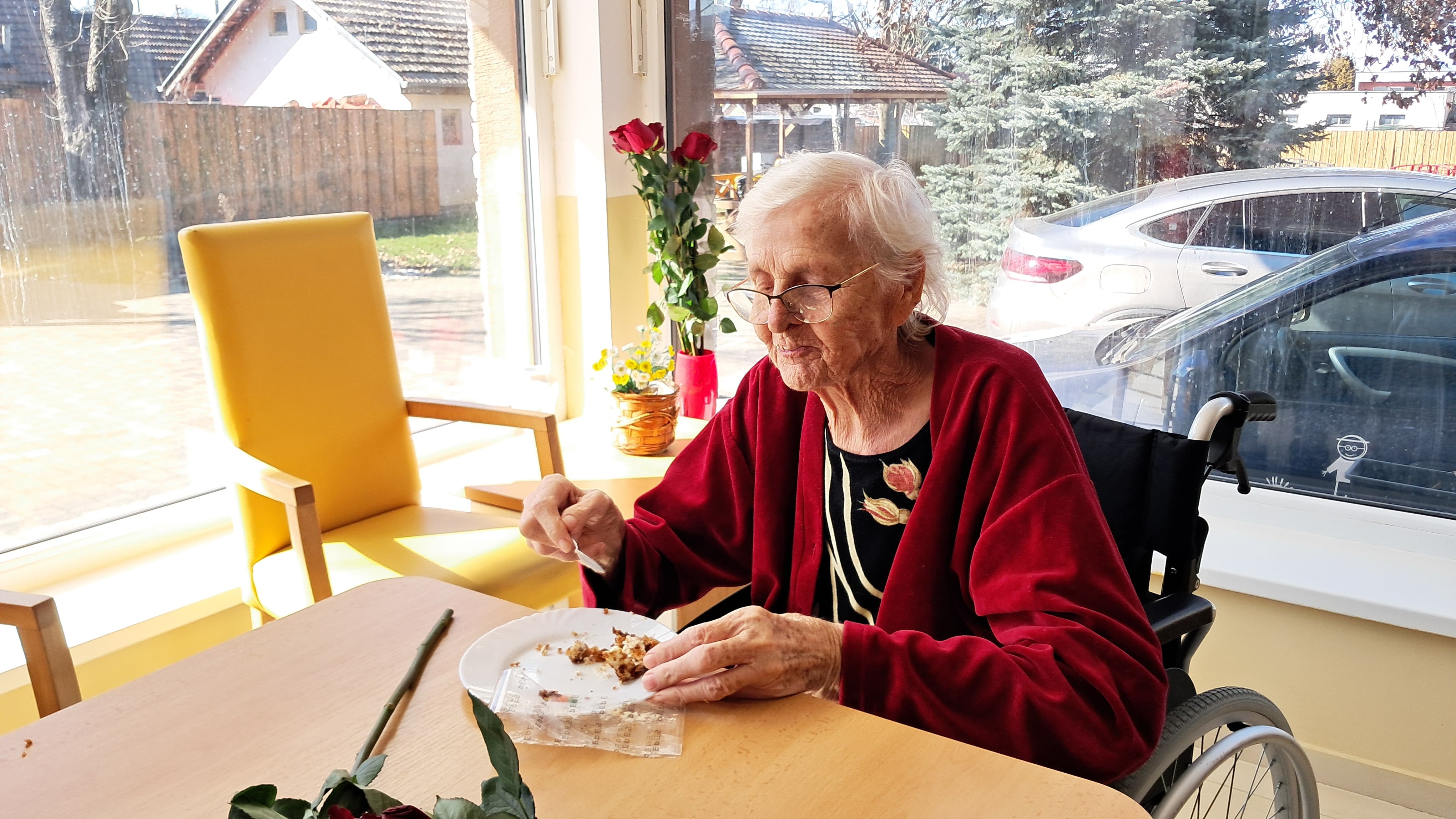 Naša najstaršia klientka, úžasná pani Frida dnes mala oslavu 101 rokov. Celý personál sa poskladal a podelil si úlohy: syrovú tortu pripravila vedúca sestra Patrícia, sladkú tortu opatrovateľka Anička, zákusky a slané lakotinky ostatné členky tímu…