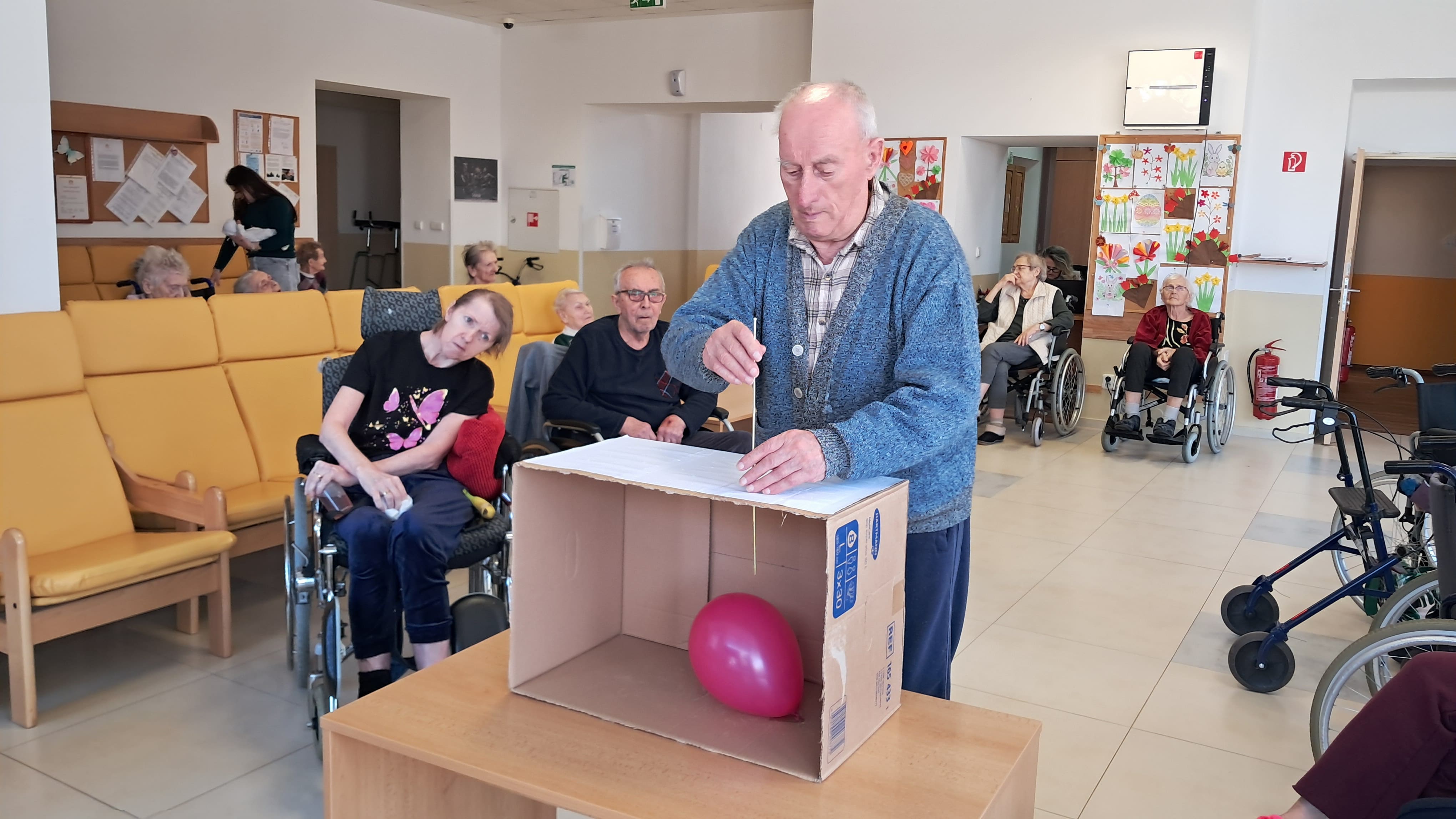 Počas uplynulého týždňa mali prijímatelia sociálnych služieb pestrý program plný aktivít a dobrej nálady. Venovali sme sa veselým balónovým hrám, ktoré priniesli radosť aj pohyb a rozprúdili príjemnú energiu.Zaujímavou súčasťou bola aj beseda o maďarskej kuchyni, počas ktorej sme spoznávali tradičné jedlá a to, čím je táto kuchyňa výnimočná. Využili sme aj interaktívne pomôcky z projektu „Koľko lásky“, ktoré podporili zmyslové vnímanie a jemnú motoriku.Nechýbali ani tvorivé dielne – vyrábali sme veľkonočné kuriatka a zdobili vajíčka, pričom každý mohol prejaviť svoju fantáziu a šikovnosť. Precvičili sme si aj pamäť a logické myslenie rôznymi aktivitami a týždeň sme si spríjemnili spoločnou prechádzkou na čerstvom vzduchu.Celý týždeň sa niesol v príjemnej atmosfére plnej radosti, spolupráce a spoločných úsmevov.