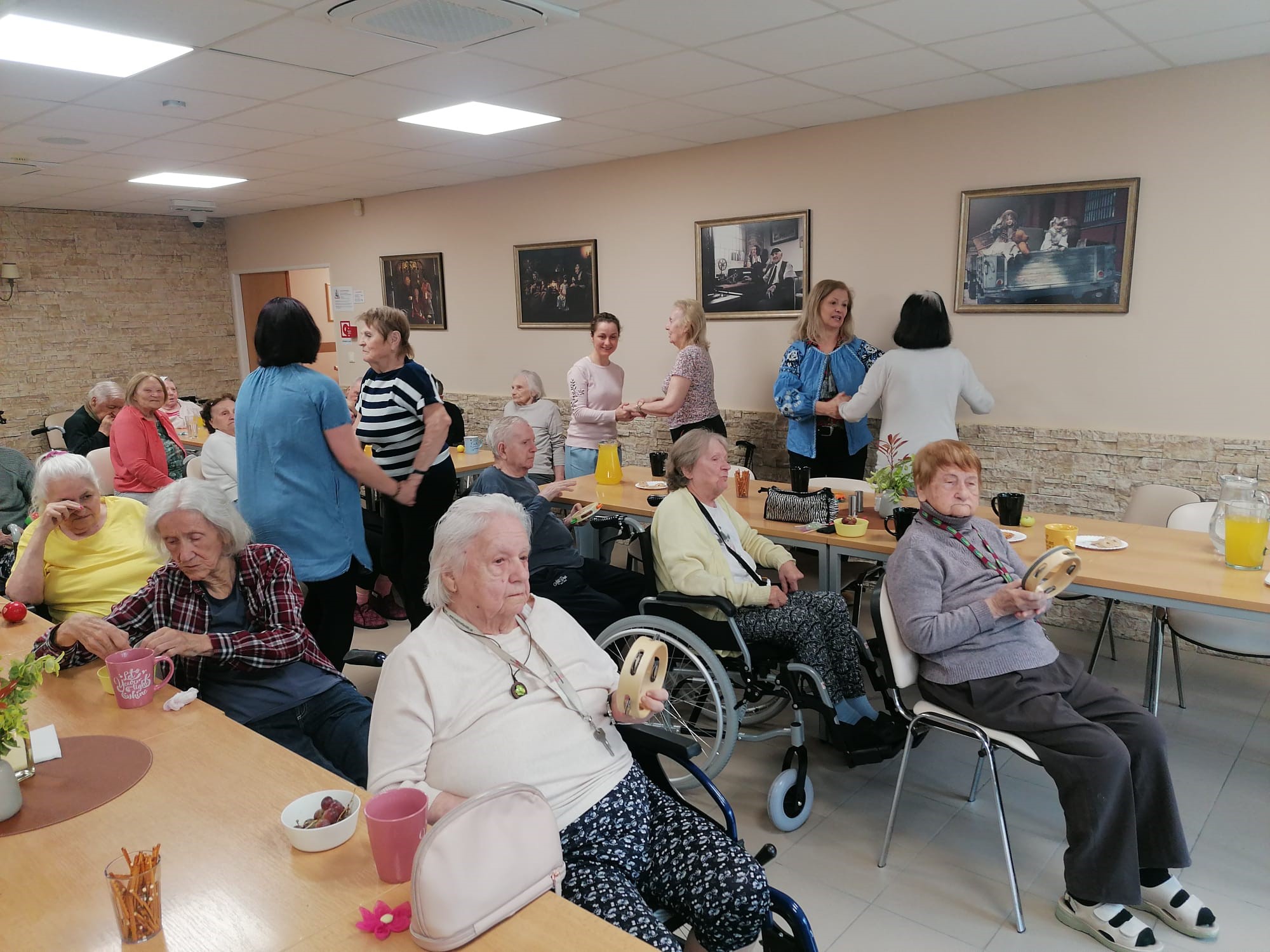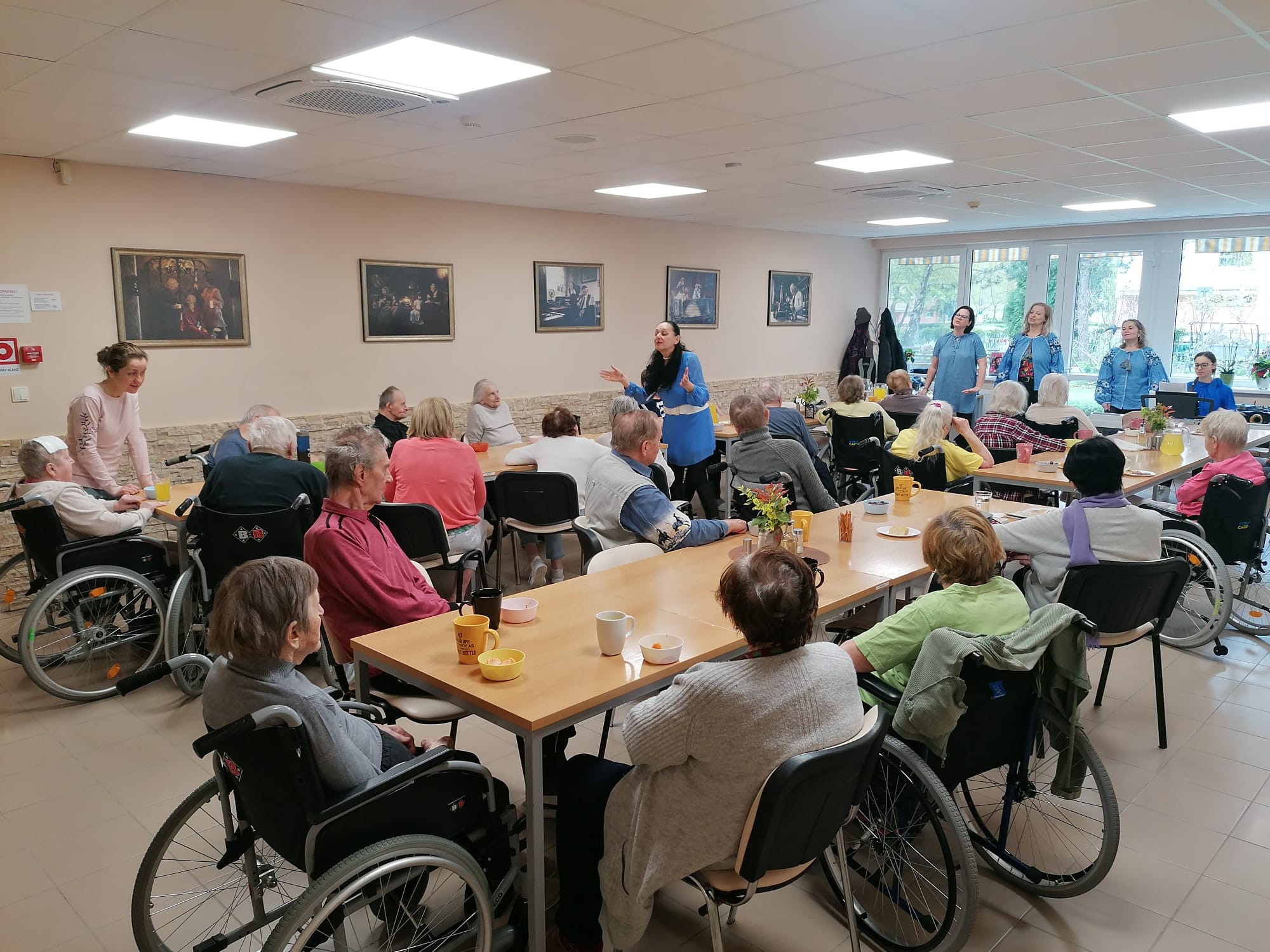 Do Náruče zavítali úžasné dámy z Centra rodiny v Dúbravke (Bazovského ulica) a priniesli so sebou množstvo skvelej energie. Pre našich seniorov si pripravili pestrý program plný hudby, spomienok a zábavy. Nechýbali hudobné ukážky ani zábavný kvíz, v ktorom seniori hádali spevákov a seriály z čias minulého režimu. Za každú správnu odpoveď ich čakala milá odmena – voňavé mydielko alebo papierová kvetinka na pamiatku. Spoločne sme si zaspievali, zatancovali a užili si chvíle plné radosti, smiechu a príjemnej atmosféry. Bolo nádherné vidieť toľko úsmevov na jednom mieste. ĎAKUJEME dobrovoľníčkam z Centra rodiny Dúbravka za krásny program a čas, ktorý nám venovali. Bolo nám s vami výborne a už teraz sa tešíme na ďalšiu spoluprácu!