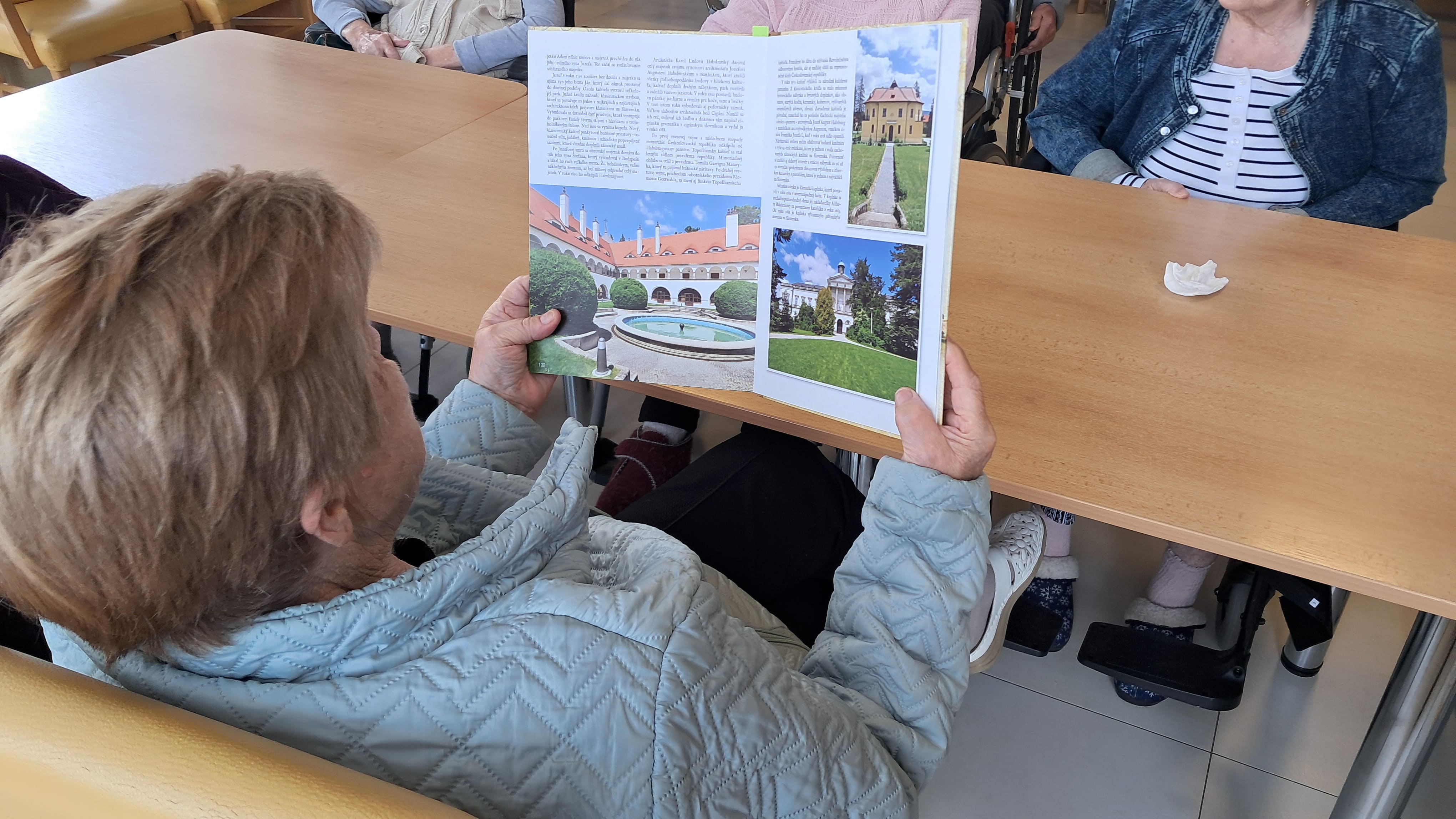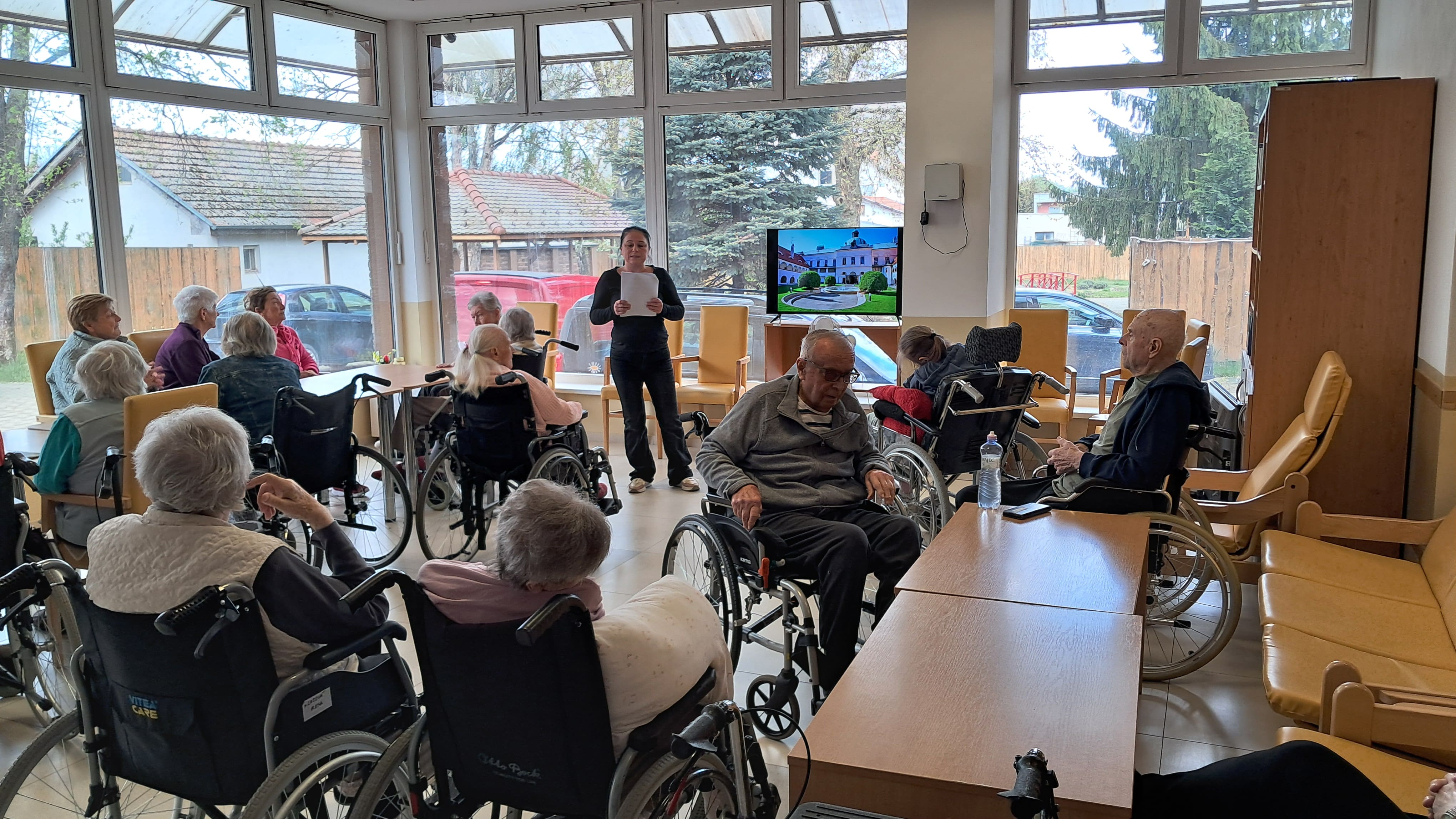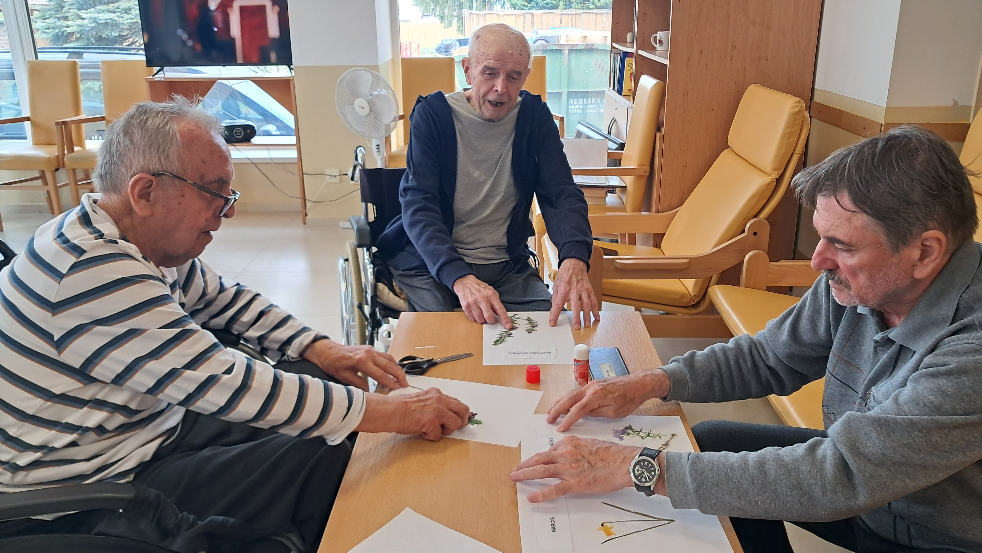 Prijímatelia sociálnych služieb sa zúčastnili zaujímavej besedy na tému hrady a zámky. Spoločne sme sa rozprávali o ich význame, historickom vývoji a úlohe v minulosti. Osobitnú pozornosť sme venovali kaštieľu v Topoľčiankach, pri ktorom sme si priblížili jeho históriu, vývoj aj zaujímavosti, ktoré sú s ním spojené. Po besede nasledovali oddychové a zábavné aktivity. Účastníci sa zapojili do balónových hier, ktoré priniesli veľa smiechu a dobrej nálady. Následne sme si zahrali obľúbené bingo, pri ktorom si precvičili pozornosť aj trpezlivosť. Kreatívnu časť programu tvorila výroba spoločného herbára. Počas nej sme si rozprávali o jednotlivých kvetoch, ich názvoch a zaujímavostiach. Prijímatelia sa aktívne zapájali do diskusie, spolupracovali a s nadšením lepili kvety na jednotlivé strany. Spoločne sme tak prežili deň plný nových poznatkov, radosti a tvorivej spolupráce.