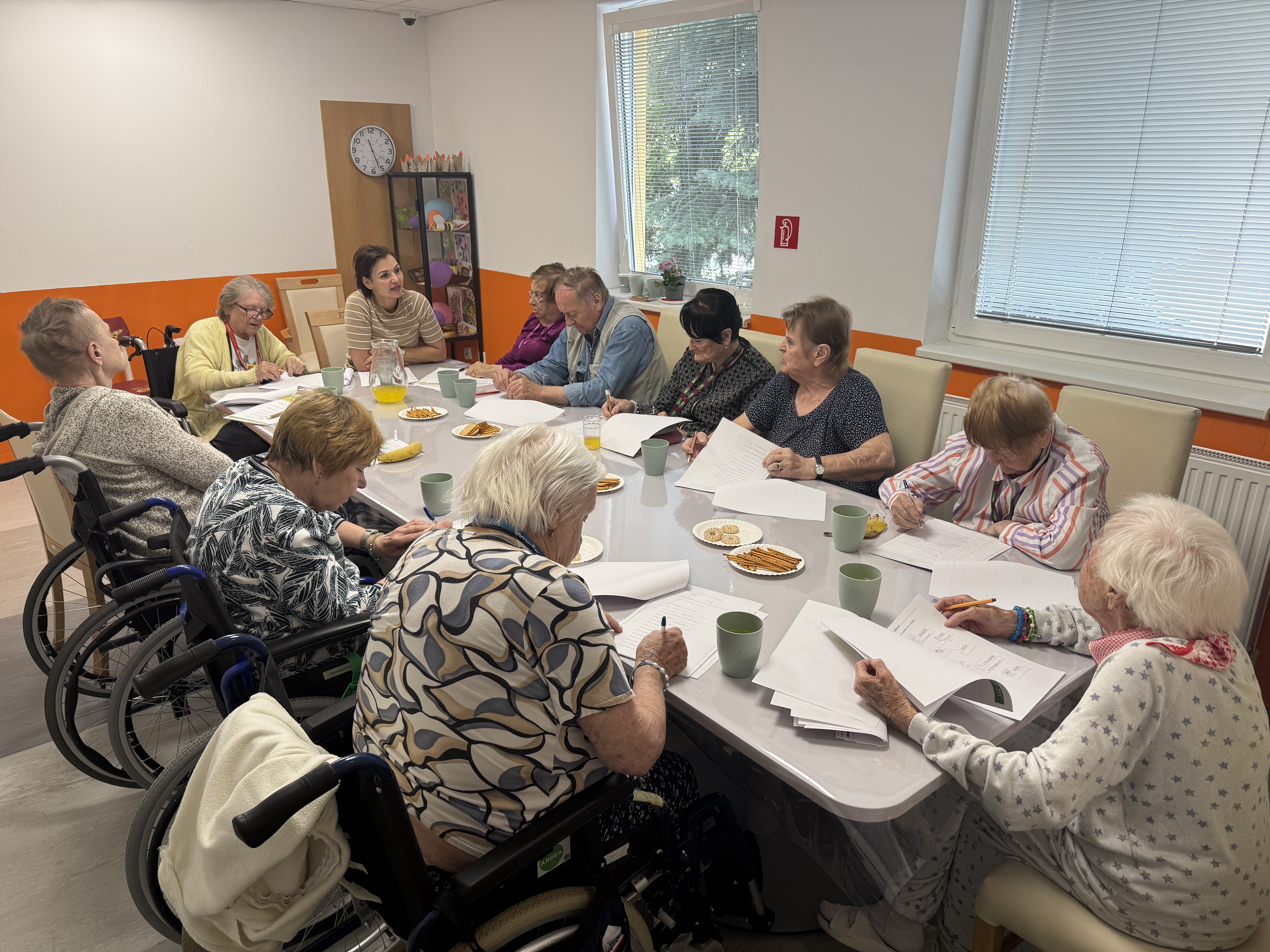 Niekedy stačí naozaj málo k dobrej nálade. Dopoludnie sme strávili pri spoločenských hrách, kde nechýbal smiech, zdravé súťaženie a najmä radosť zo spoločného času. Popri zábave sme prirodzene trénovali pozornosť, koncentráciu aj pamäť. Skladali sme kartičky do správneho poradia, lovili spomienky z dlhodobej pamäte a kto mal chuť, vyfarboval obrázky. Každý si našiel svoje tempo aj spôsob, ako sa zapojiť. A tie balóny na záver? Postreh a koordinácia dostali poriadne zabrať, no úsmevy hovorili za všetko. Prostredníctvom týchto aktivít sme podporili jemnú aj hrubú motoriku, stimuláciu mozgu a rozvoj predstavivosti. Presne takéto dopoludnia majú svoj zmysel.