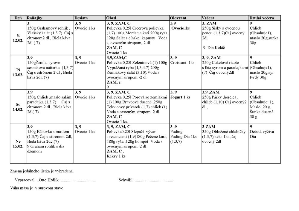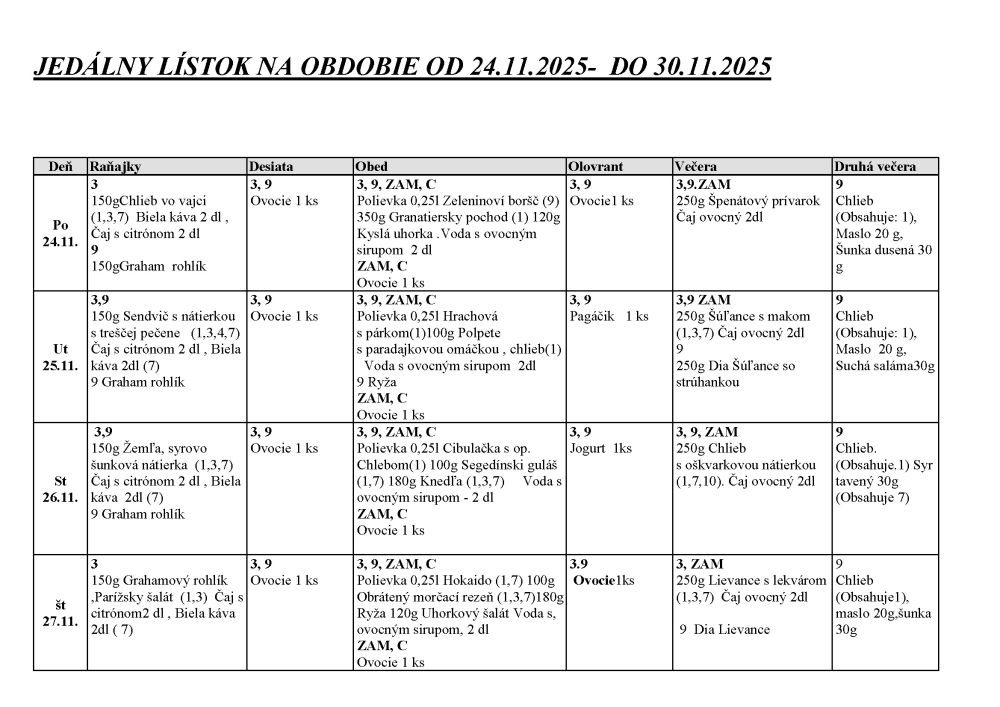JEDÁLNY LÍSTOK