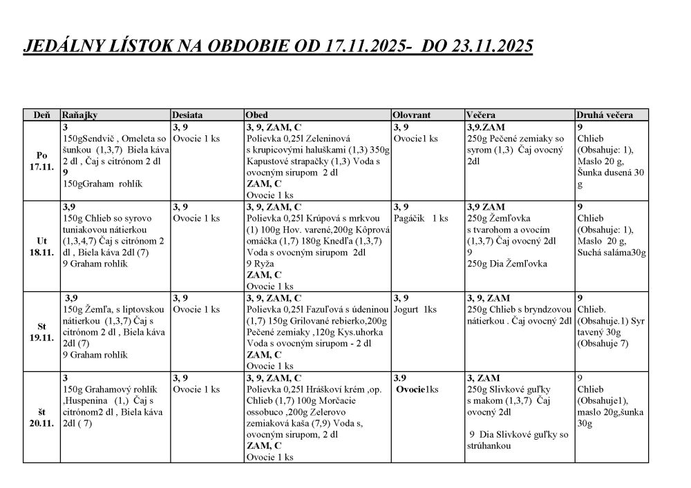 Na obdobie od 17.11. 2025 do 23.11. 2025